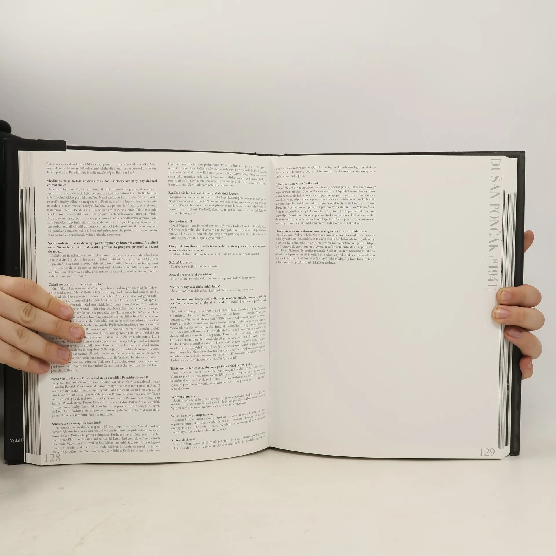 Slovenské ateliéry sú knihou rozhovorov a čiernobielych fotografií, ktoré vznikali počas takmer troch rokov v ateliéroch slovenských výtvarníkov. Viac ako tristo strán textu a portrétov zachytáva postavy súčasnej výtvarnej scény v najrôznejších, no predovšetkým v čo najprirodzenejších podobách. Štyridsaťšesť mien, od galandovcov po nedávnych absolventov Vysokej školy výtvarných umení, sprístupnilo svoje súkromie. Výtvarníci rozprávajú svoje životné príbehy, ktoré sú súčasťou „veľkých“ dejín umenia. Vyťahujú z pamäti historky a osoby, na ktoré by sa inak možno zabudlo. Fotografie a autentické výpovede zrkadlia skutočnú podobu ľudí, ktorých často poznáme iba cez ich dielo.