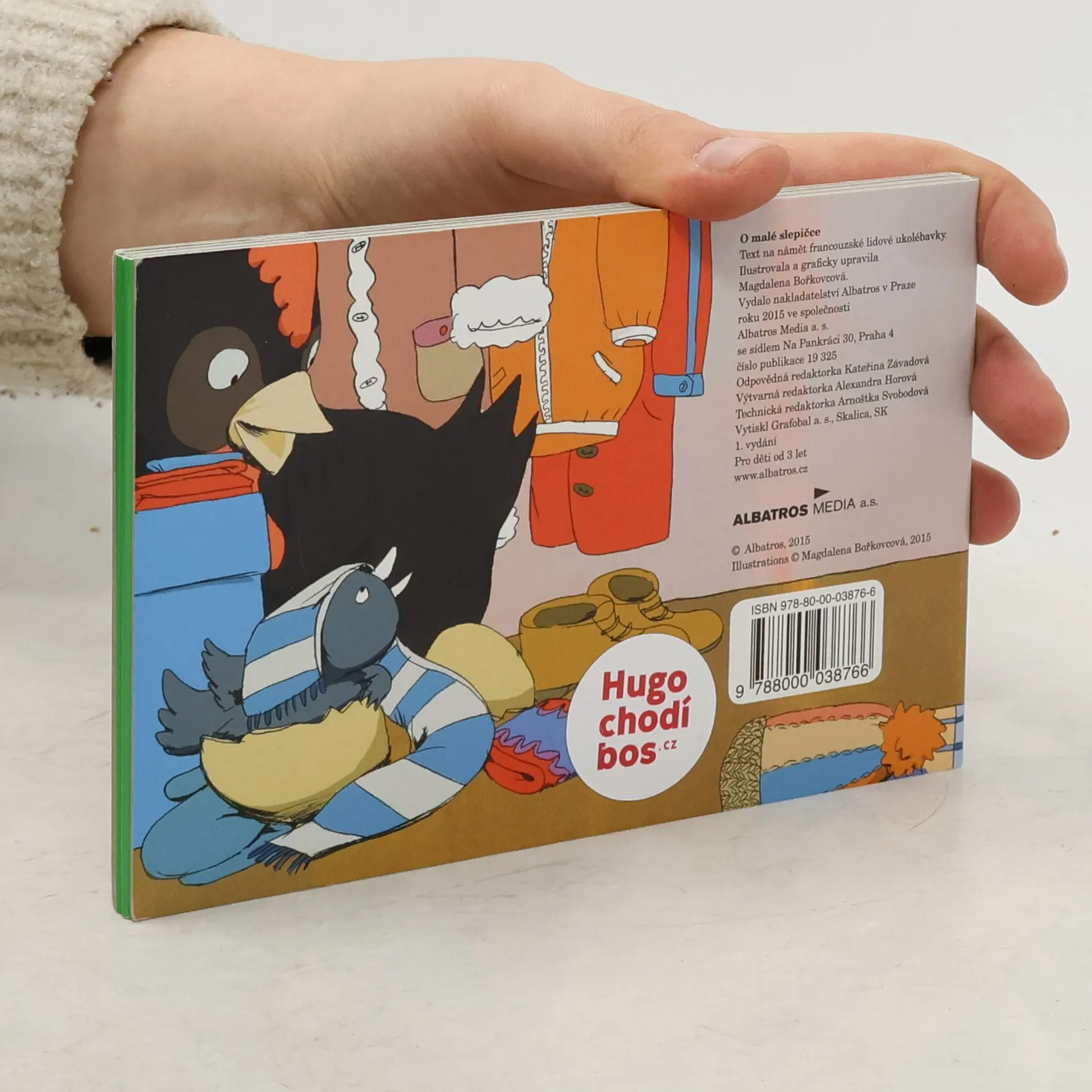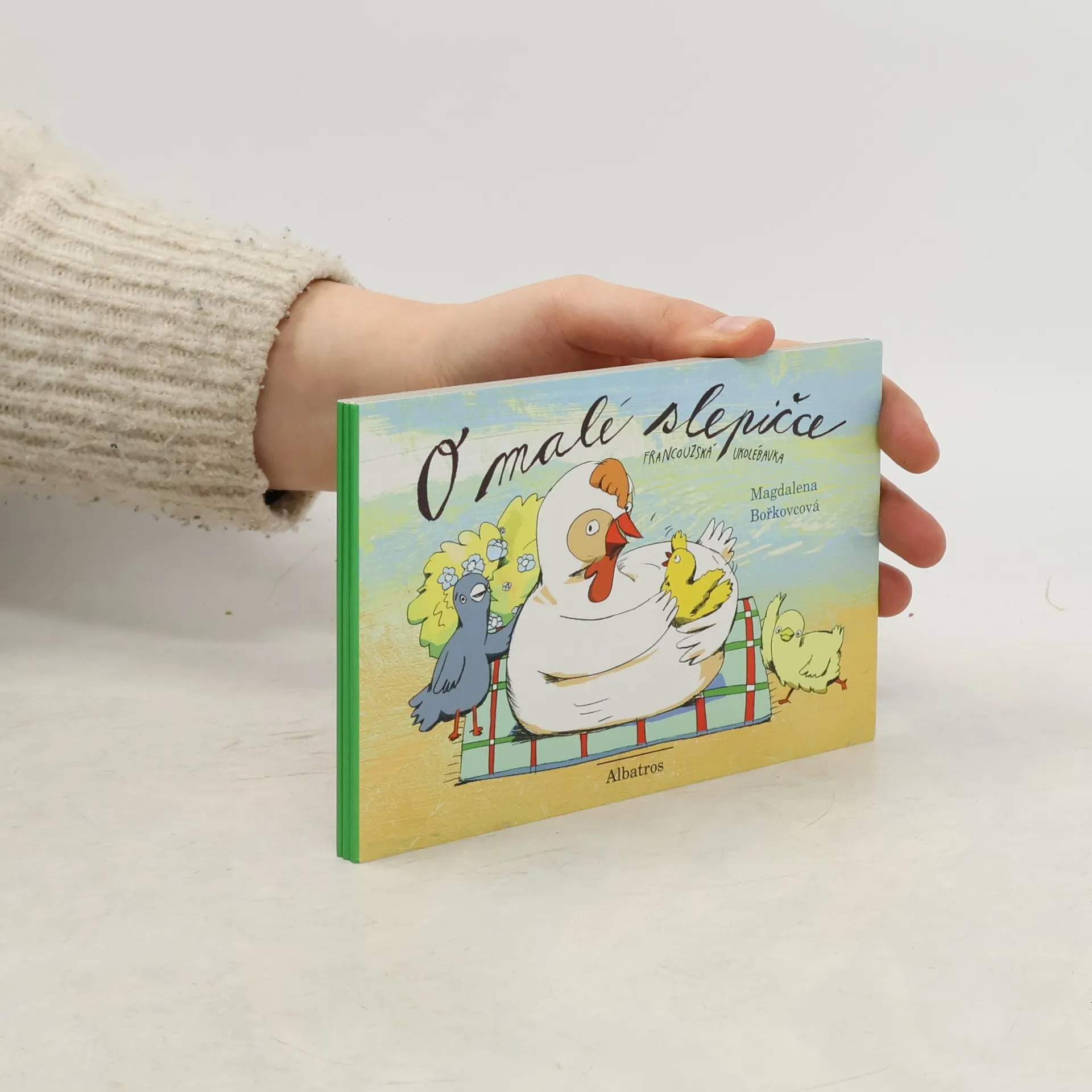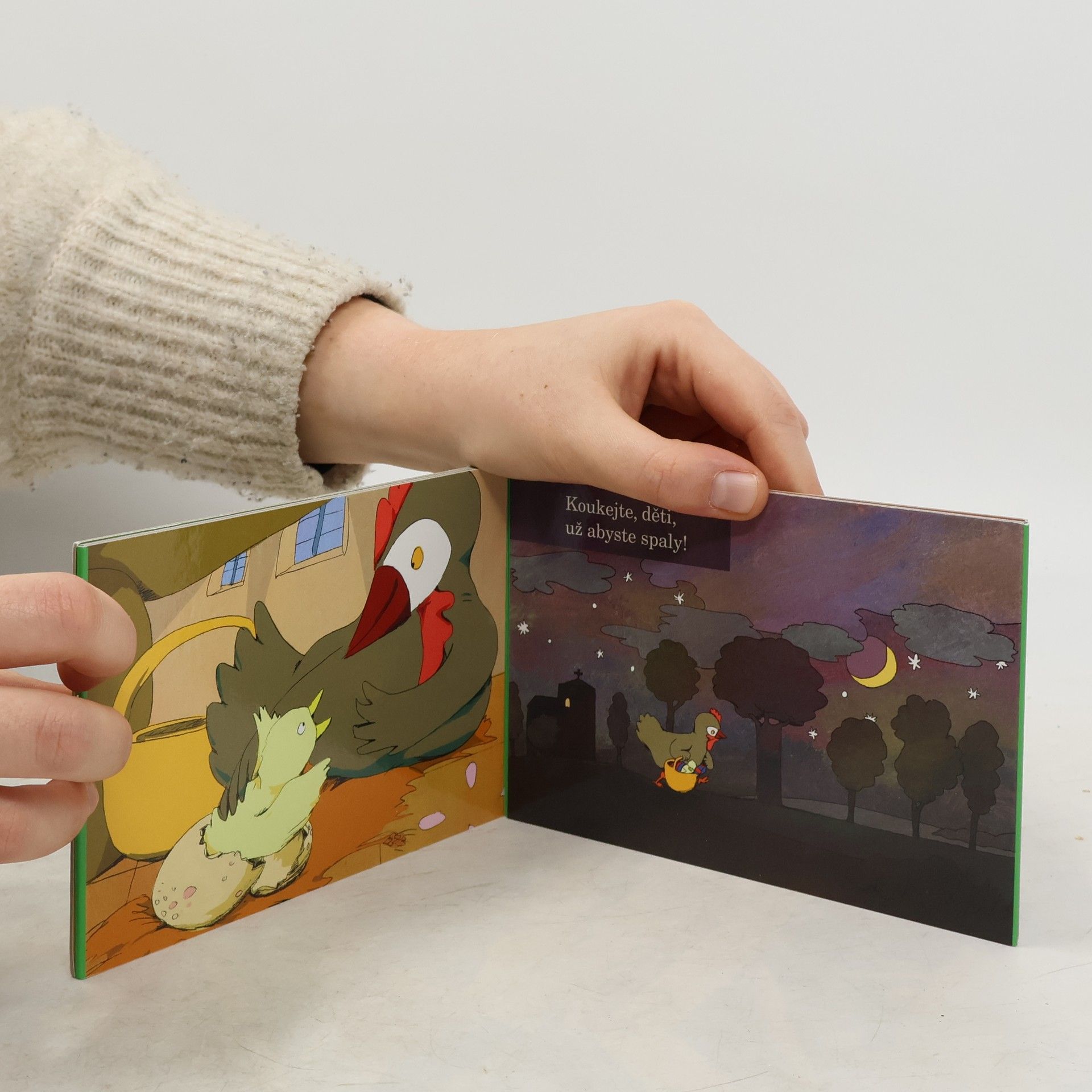 Leporelo o třech slepičkách, které snáší vajíčka na nejpodivnějších místech, a tak se kohoutek vylíhne jednou ve skříni , pak ve stodole a také v kostele. Verše na námět francouzské ukolébavky doprovodila půvabnými obrázky Magdalena Bořkovcová.