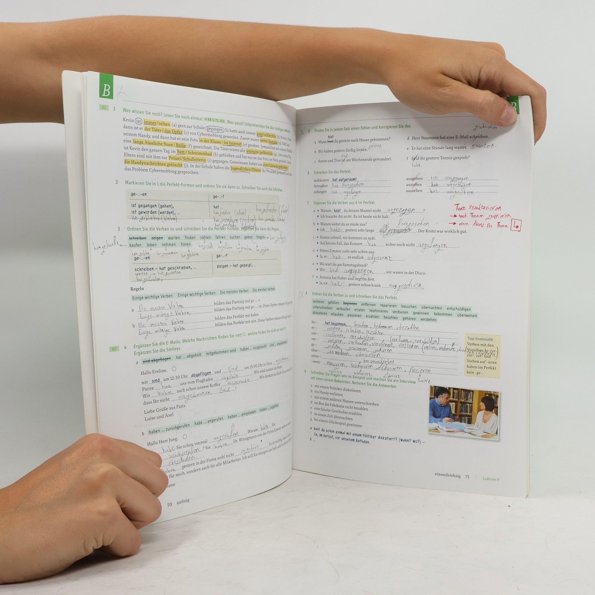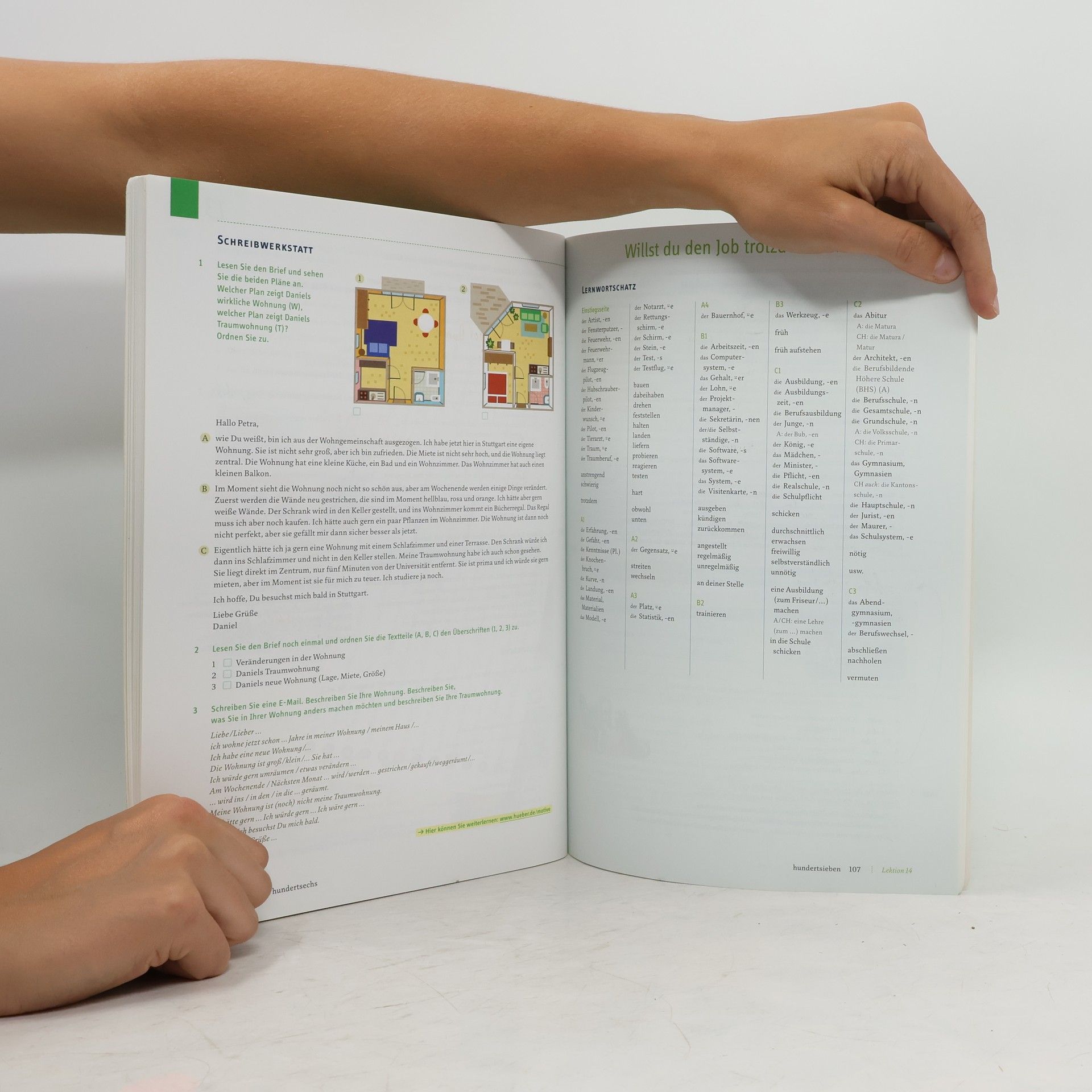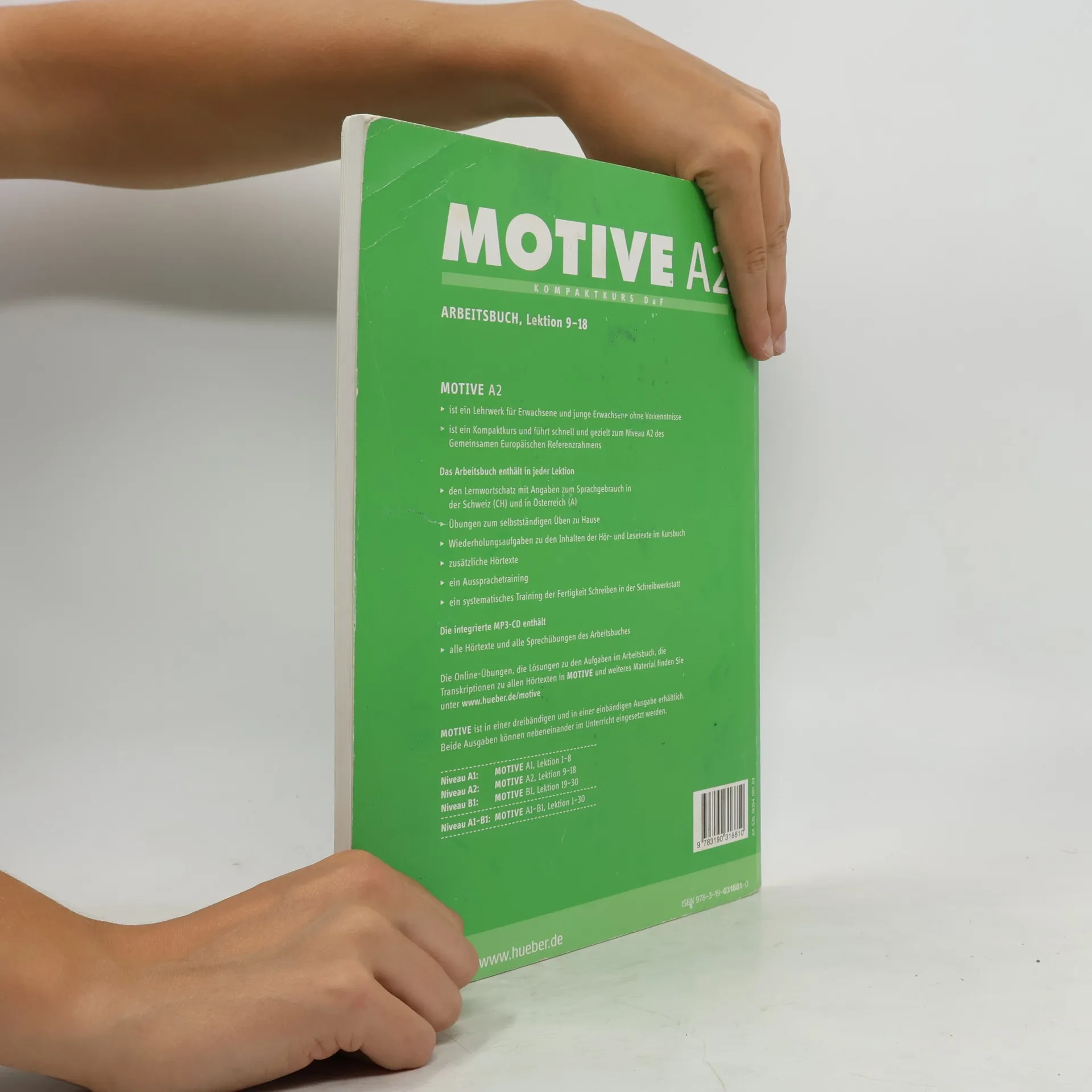 - Übungen zum selbstständigen Arbeiten zu Hause - Wiederholungsaufgaben zu den Inhalten der Hör - und Lesetexte im Kursbuch - zusätzliche Hörtexte - Aussprachetraining - systematisches Training der Fertigkeit Schreiben in der Schreibwerkstatt - Lernwortschatz jeder Lektion mit Angaben zum Sprachgebrauch in der Schweiz und in Österreich - integrierte - CD mit allen Hörtexten und allen Sprechübungen des Arbeitsbuches