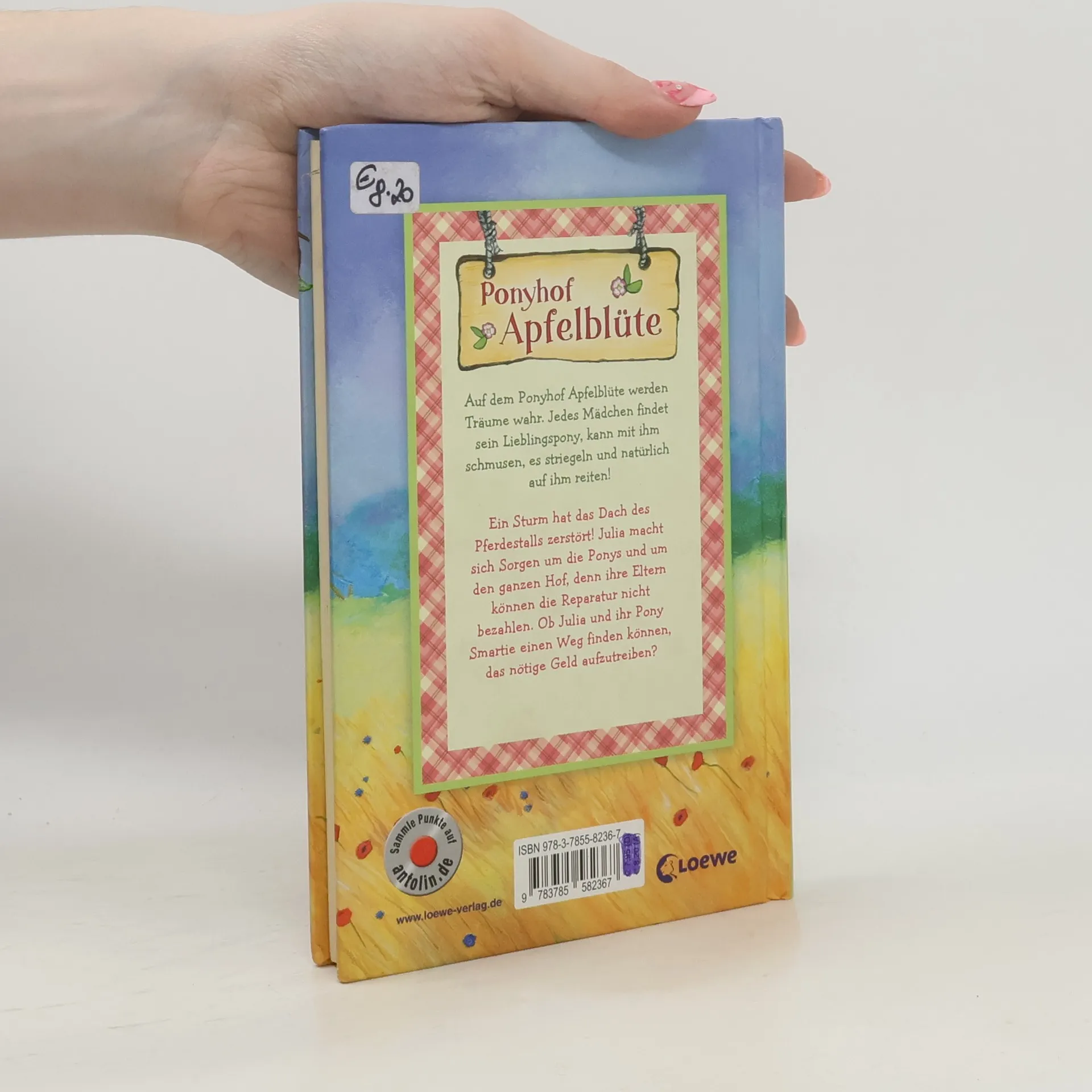 Das Buch ist bei deiner Buchhandlung vor Ort und bei vielen Online-Buchshops erhältlich! Auf dem Ponyhof Apfelblüte werden Träume wahr. Jedes Mädchen findet sein Lieblingspony , kann mit ihm schmusen, es striegeln und natürlich auf ihm reiten! Ein Sturm hat das Dach des Pferdestalls zerstört! Julia macht sich Sorgen um die Ponys und um den ganzen Hof, denn ihre Eltern können die Reparatur nicht bezahlen. Ob Julia und ihr Pony Smartie einen Weg finden können, das nötige Geld aufzutreiben? Freundschaften, süße Ponys und spannende Wettkämpfe – der Alltag auf dem Reiterhof wird einfach nie langweilig. Die Kinderbuch-Reihe mit vielen liebevollen Illustrationen vermittelt nebenbei Wissenswertes über Ponys und ist besonders für Mädchen ab 8 Jahren geeignet.