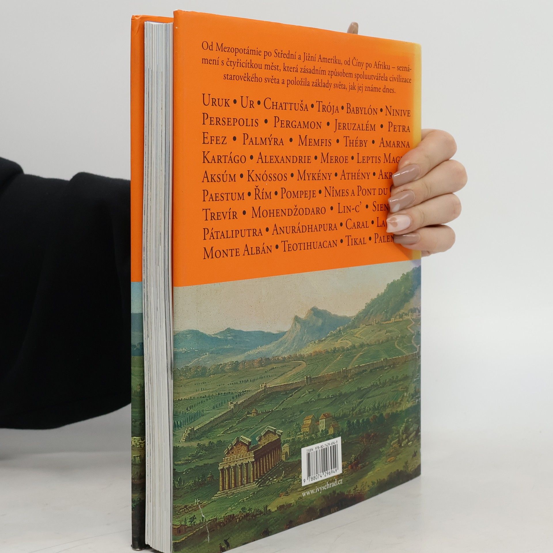 Babylón, Memfis, Trója, Jeruzalém, Atény, Pompeje, Kartágo… měst, která se nesmazatelně zapsala do dějin lidstva, je dlouhá řada, a každé z nich má svůj jedinečný příběh a charakter. V knize, ke které britský historik, spisovatel a dokumentarista John Julius Norwich přizval třicítku renomovaných archeologů a odborníků na starověké dějiny, je představeno celkem čtyřicet měst. Geografický záběr bohatě ilustrované knihy sahá od Blízkého východu – Egypta a Mezopotámie – až po Střední a Jižní Ameriku. V prvním a nejrozsáhlejším oddílu věnovaném Blízkému východu najdeme sumerská centra Uruk a Ur, chetitskou Chattušu, asyrské Ninive či perskou Persepoli. Afriku zastupují kromě měst Starého Egypta (Théby, Amarna) núbijské Meroe, etiopský Aksúm či římská Leptis Magna, Evropu Knóssos, Mykény, Pompeje či Trevír, Asii indická města jako Mohendžodaro a Pátaliputra a čínský Sien-jang. Závěrečný oddíl představí města obou Amerik, jako monumentální Teotihuacan či mayská města dlouho ukrytá v pralesech, Tikal a Palenque. Aktuálnost publikace je dnes o to větší, že v nedávné době byla některá z uvedených měst poničena vinou válečných konfliktů a náboženského extremismu, jiným podobný osud hrozí.