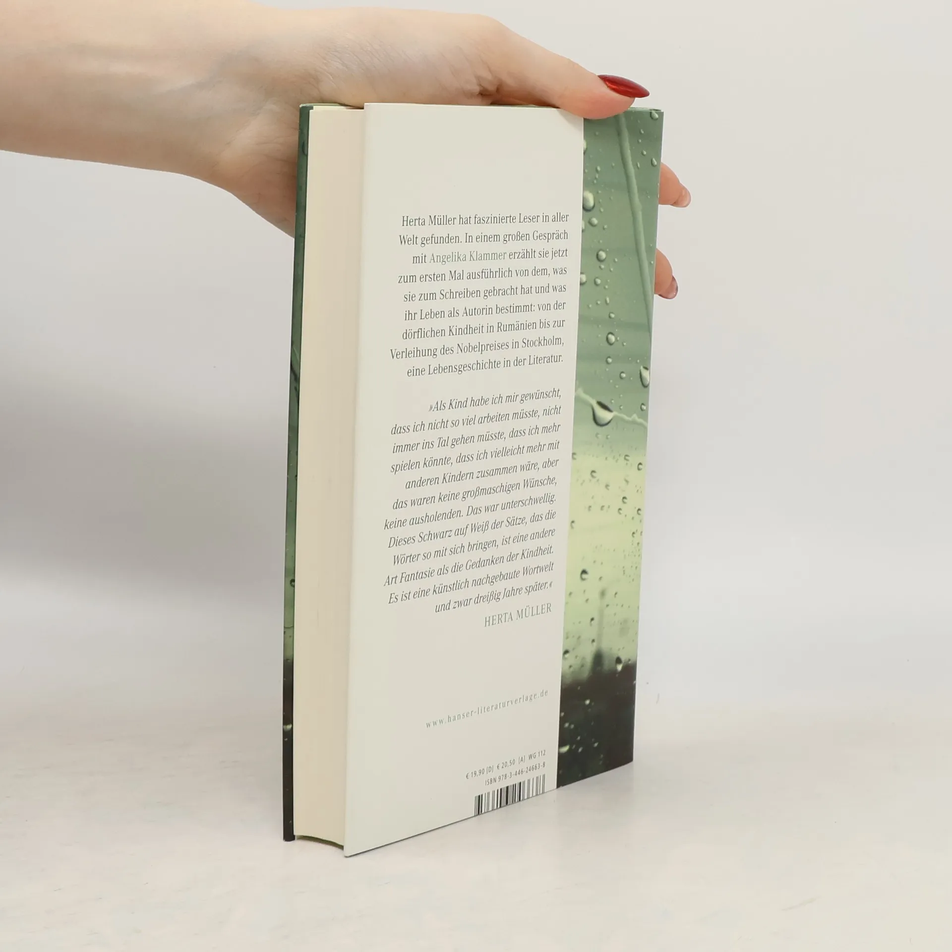 „Ich stehe (wie so oft) auch hier neben mir selbst.“ So begann Herta Müller ihre Tischrede nach der Verleihung des Nobelpreises. In einem langen Gespräch mit Angelika Klammer erzählt sie von ihrem ungewöhnlichen Lebensweg, der vom Kind, das Kühe hütet, bis zur weltweit bekannten Schriftstellerin im Stadthaus in Stockholm führt. Sie erzählt von der Kindheit in Rumänien, vom Erwachsenwerden und dem erwachenden politischen Bewusstsein, von den frühen Begegnungen mit der Literatur, den Konflikten mit der Diktatur des Kommunismus und dem eigenen Weg zum Schreiben. Mit ihrem Bericht vom Ankommen in einem neuen Land fällt auch ein ungewohnter Blick auf das Deutschland der 80er und 90er Jahre und auf die Gesellschaft, in der wir heute leben.