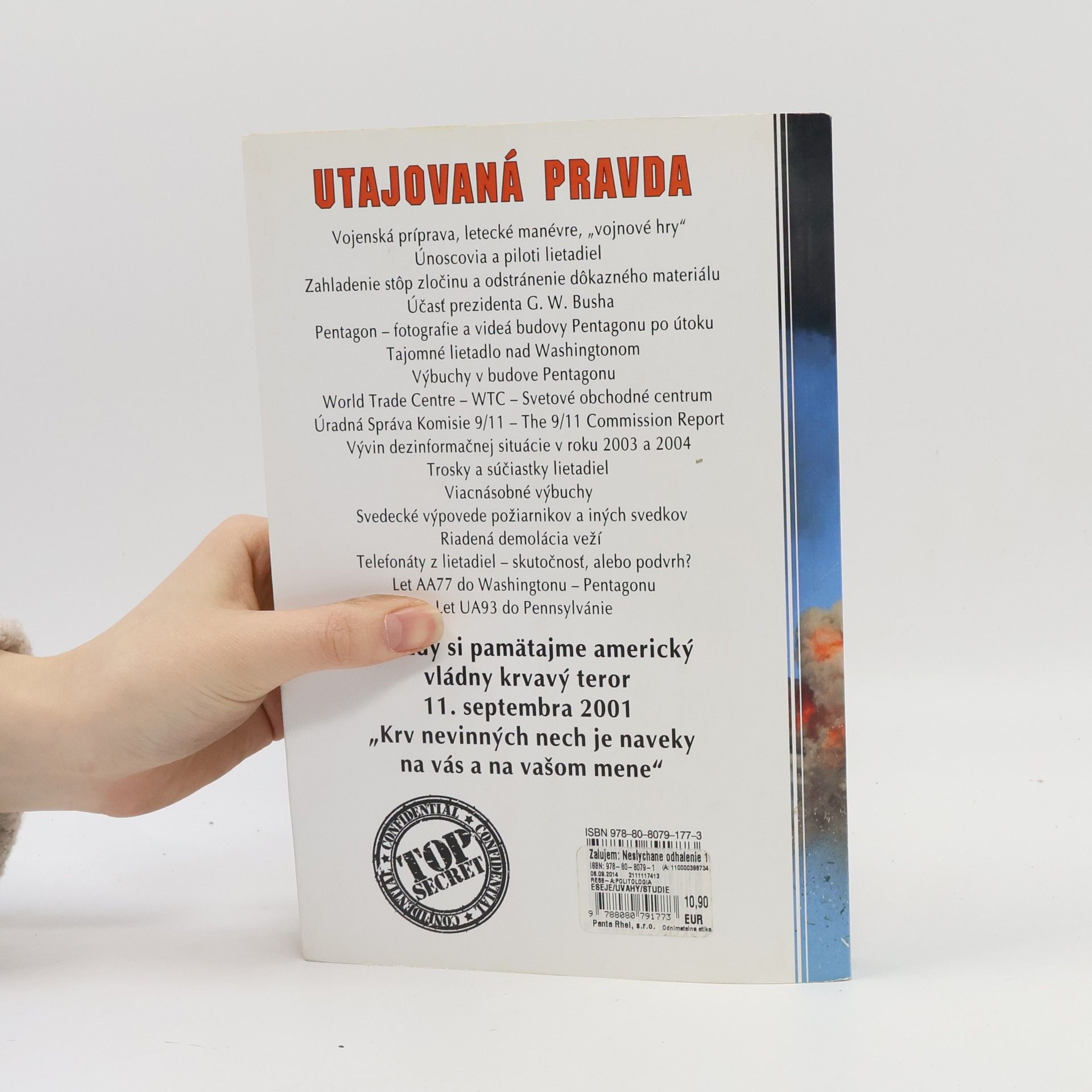 Touto knihou sa autor pokusil prispieť k nájdeniu pravdy o udalostiach tzv. 9. septembra 2001, a podnietiť slovenského čitateľa k premýšľaniu o tejto žalostnej udalosti. Tento nehorázny zločin americkej vládnucej triedy a vládnych kruhov nie je len vecou Ameriky a Američanov. Sú zločinmi proti ľudskosti, zločinom proti mieru, lebo ich následkom je nielen nevyhlasená občianska vojna vo vnutri Ameriky, ale aj vojny rozpútanej po celom svete. Navždy si pamätajme americký vládny krvavý teror 11. september 2001.