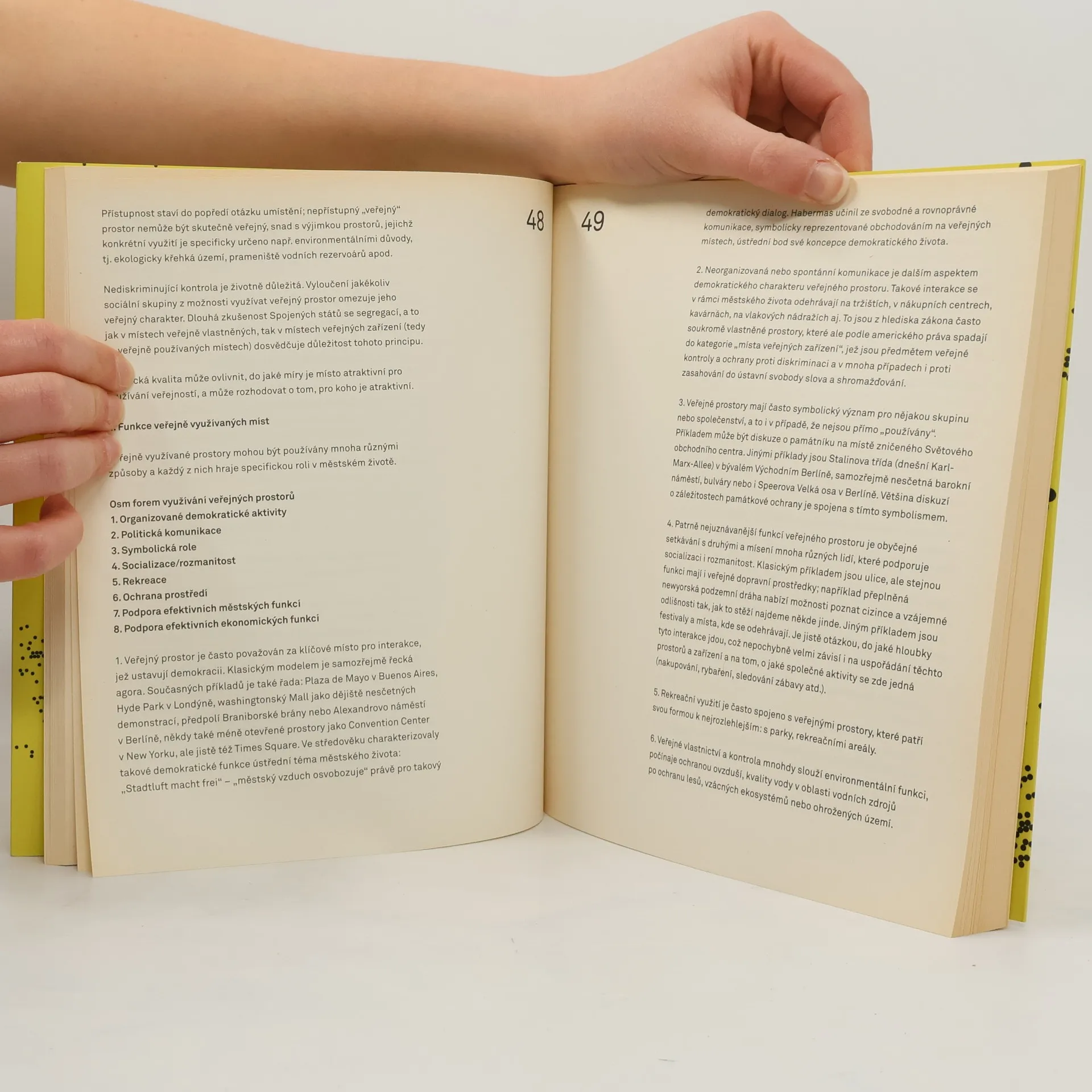 Téma veřejného prostoru patří dnes ke klíčovým tématům architektonické diskuze i k důležitým motivům městských politik a plánů. Co je však tak nového na tématu veřejného prostoru, že přitahuje pozornost tvůrců, politiků i teoretiků na architektonických výstavách, konferencích a v médiích? Možná, že je to právě novodobá nesamozřejmost veřejného prostoru: jeho zpochybnění, rozklad jeho fyzické formy i tradiční funkce a opětovné hledání jeho nových forem i nové náplně. Výběr textů předních architektů, urbanistů, sociologů i právníků se pokouší postihnout dvojznačnost veřejného prostoru jako prostoru fyzického i sociálního a zároveň poukázat na rozdílné hodnotící postoje, na rozkmit mezi ohlašováním krize a rozkladu veřejného prostoru na jedné straně a pozitivním hledáním nových forem a programů na straně druhé.