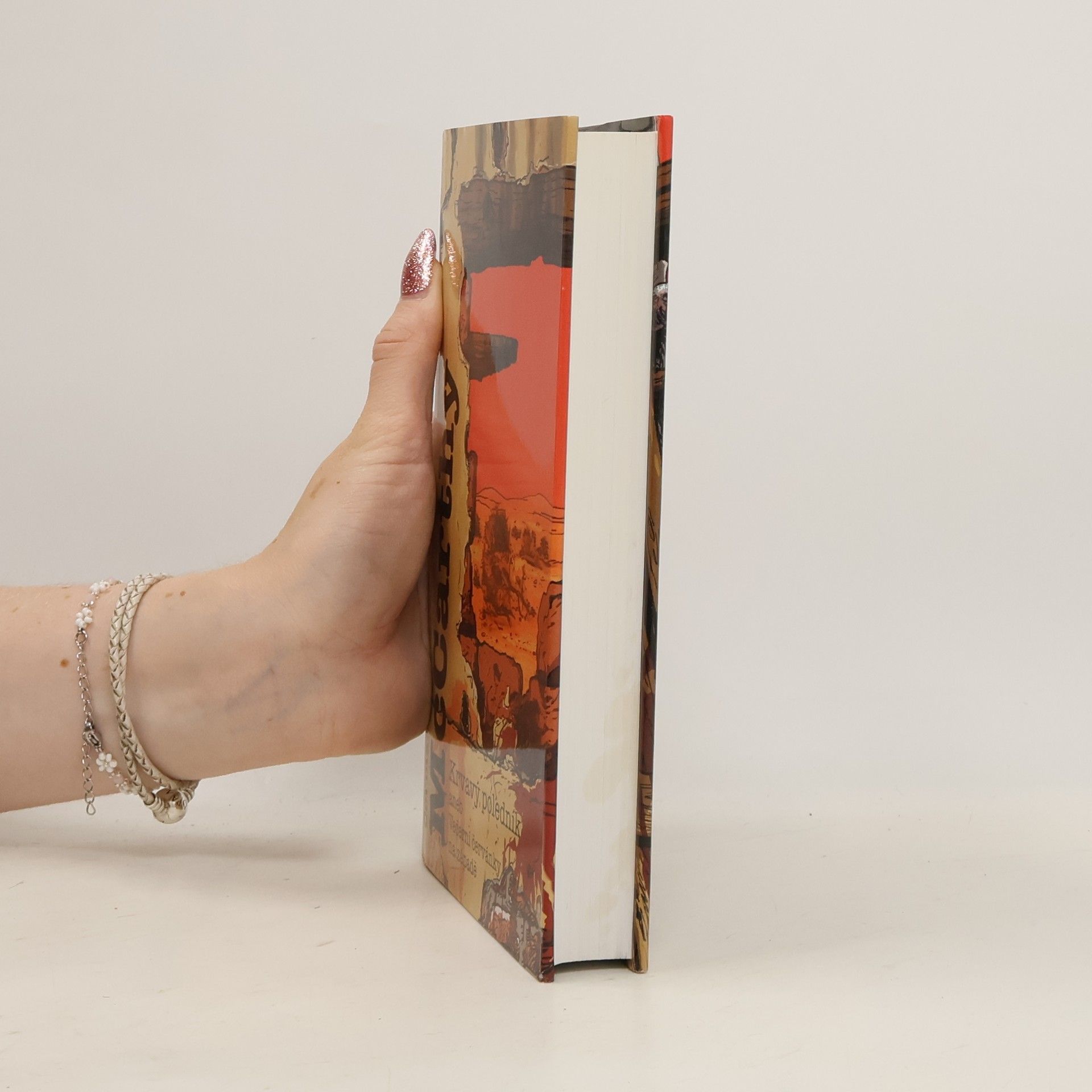 Když v roce 1985 vydal Cormac McCarthy svůj pátý román Krvavý poledník aneb Večerní červánky na západě, dočkal se pouze vlažného a rozpačitého přijetí. Postupem času však zájem čtenářstva i kritické obce narůstal a v dnešní době se kniha těší takřka kultovnímu statusu – je označována za McCarthyho vrcholné dílo a zároveň za jeden z nejdůležitějších amerických románů 20. století.Autor v tomto historickém románu popisuje řádění Glantonova gangu na texasko-mexických hranicích v letech 1849–1850. Valná většina dobových událostí a postav je skutečná, do děje jsou pak vpleteny také smyšlené osudy hlavního hrdiny, bezejmenného „kluka“. Co však Krvavý poledník od jiných historických próz zásadně odlišuje, je autorův osobitý styl a hloubka filozofické vize. Autor k popisům brutálního násilí a nelítostné pustiny používá archaizující biblicko-barokní jazyk, jenž slouží současně také jako kryptické médium odkazující na nejrůznější myšlenkové směry: mystické křesťanství Jakoba Boehma, vůli k moci Friedricha Nietzscheho, stará gnostická učení i tarotové arkány. Z uměleckých paralel pak nelze nezmínit Homérovu Ilias, Danteho Peklo, či Melvillovu Bílou velrybu, malby Hieronyma Bosche či westerny Sama Peckinpaha.Krvavý poledník přináší zážitek nejen pronikavý, zneklidňující a drásavý, ale svým způsobem také zvráceně krásný. Chyťte se hrušky sedla – vyrážíme!