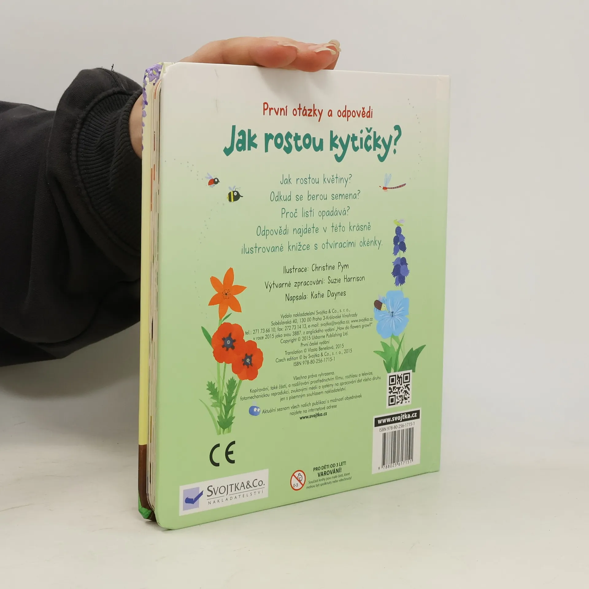 V této krásně ilustrované knížce s odklápěcími okénky najdete odpovědi na první otázky týkající se rostlin kolem nás. Potřebují rostliny nějakou potravu? Proč mají rostliny květy? Proč jsou květy barevné a hezky voní? Proč mění listy barvu a opadávají? Jaké jsou největší, nejpodivnější a nejvíce páchnoucí rostliny? Odpovědi na tyto a mnoho dalších otázek týkajících se rostlin kolem nás najdete v této krásně ilustrované knížce s odklápěcími okénky.