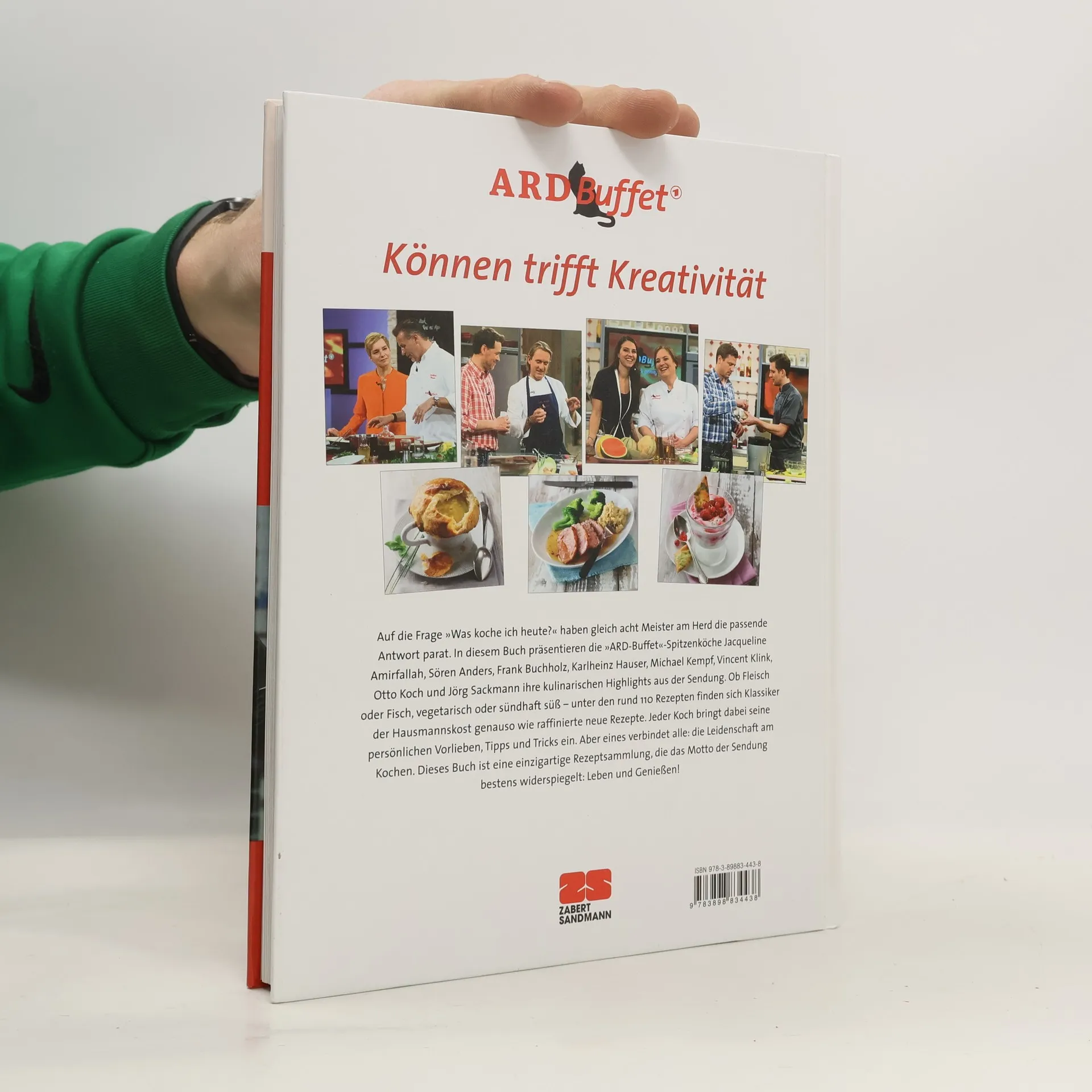 Auf die Frage 'Was koche ich heute?' haben acht Spitzenköche die passende Antwort parat. In diesem Buch präsentieren die ARD-Buffet-Köche Jacqueline Amirfallah, Sören Anders, Frank Buchholz, Karlheinz Hauser, Michael Kempf, Vincent Klink, Otto Koch und Jörg Sackmann ihre kulinarischen Highlights aus der Sendung. Ob Fleisch, Fisch, vegetarisch oder süß – unter den rund 110 Rezepten finden sich sowohl Klassiker als auch kreative Neuinterpretationen. Die Gerichte spiegeln die persönlichen Handschriften der Köche wider und sind leicht nachzukochen. Dieses reich bebilderte Kochbuch verkörpert das Motto der Sendung: Leben und Genießen! In der Servicesendung 'ARD-Buffet' zeigen die acht Spitzenköche fünfmal die Woche, wie gute Küche auch zu Hause gelingt. Mit Können und Kreativität inspirieren sie ihre Zuschauer täglich zu raffinierten Gerichten. Vielfalt, Saisonalität und Ausgewogenheit sind ihnen wichtig, und sie sind bestens mit den regionalen Küchen Deutschlands vertraut. Die Köche bereichern die Sendung nicht nur mit ihren live zubereiteten Gerichten, sondern auch mit wertvollen Tipps und Tricks zu Zubereitung und Produkten. So wird das Nachkochen zu einem Genuss für alle, die sich für gutes Essen begeistern.