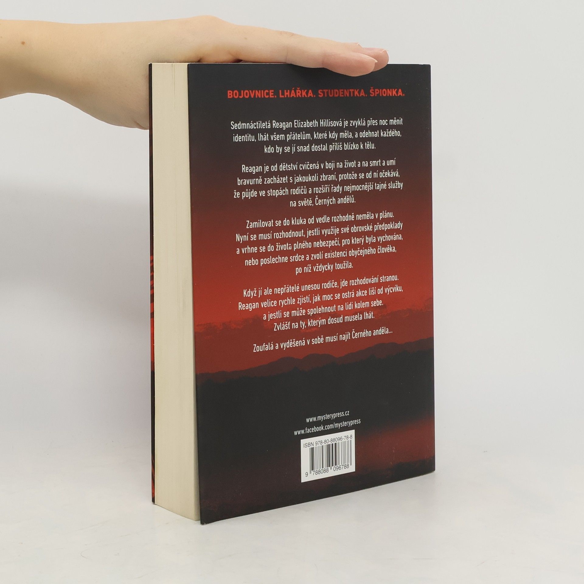 Sedmnáctiletá Reagan Elizabeth Hillisová je zvyklá přes noc měnit identitu, lhát všem přátelům, které kdy měla, a odehnat každého, kdo by se jí snad dostal příliš blízko k tělu. Reagan je od dětství cvičená v boji na život a na smrt a umí bravurně zacházet s jakoukoli zbraní, protože se od ní očekává, že půjde ve stopách rodičů a rozšíří řady nejmocnější tajné služby na světě, Černých andělů. Zamilovat se do kluka od vedle rozhodně neměla v plánu. Nyní se musí rozhodnout, jestli využije své obrovské předpoklady a vrhne se do života plného nebezpečí, pro který byla vychována, nebo poslechne srdce a zvolí existenci obyčejného člověka, po níž vždycky toužila. Když jí ale nepřátelé unesou rodiče, jde rozhodování stranou. Reagan velice rychle zjistí, jak moc se ostrá akce liší od výcviku, a jestli se může spolehnout na lidi kolem sebe. Zvlášť na ty, kterým dosud musela lhát. Zoufalá a vyděšená v sobě musí najít Černého anděla…