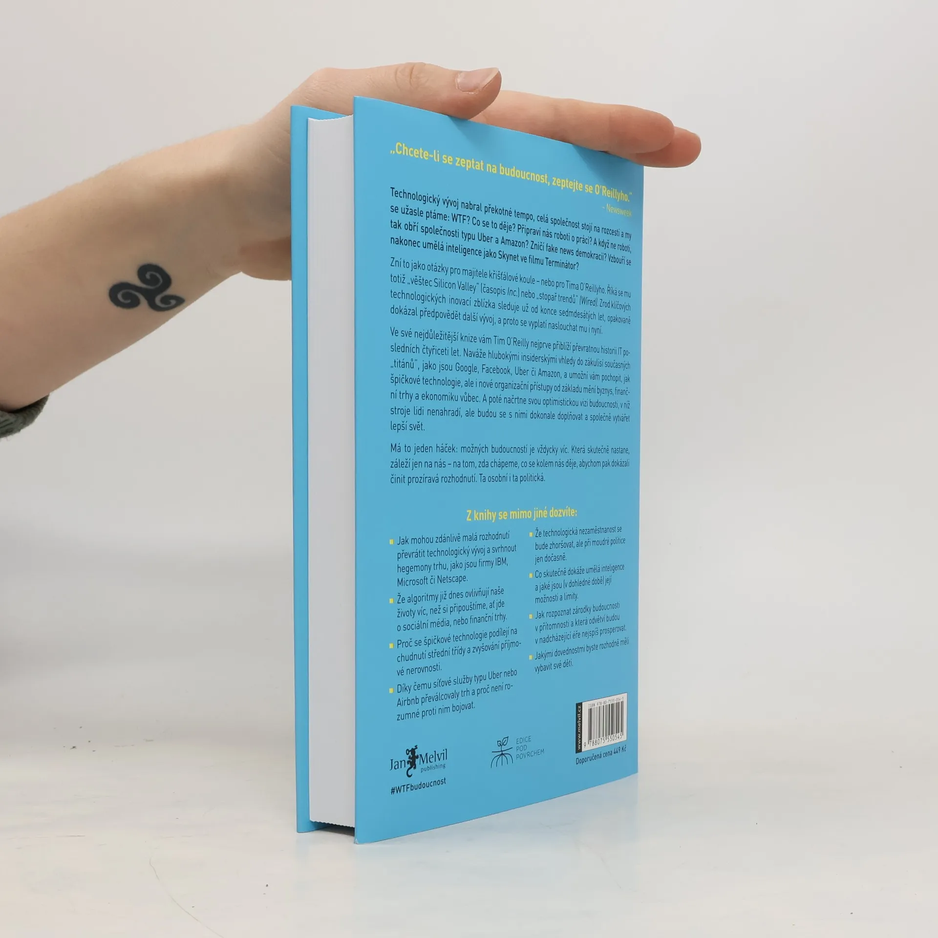 Technologický vývoj nabírá tempo, celá společnost stojí na rozcestí a my se užasle ptáme: WTF? Co se to děje? Připraví nás roboti o práci? A když ne roboti, tak obří společnosti typu Uber a Amazon? Zničí fake news demokracii? Vzbouří se nakonec umělá inteligence jako Skynet ve filmu Terminátor? Otázky jako pro majitele křišťálové koule... Ale přesně takovou pověst Tim O’Reilly má – „věštec Silicon Valley“ (časopis Inc.) nebo „stopař trendů“ (Wired). Zrod klíčových technologických inovací sleduje zblízka už od konce sedmdesátých let, opakovaně předpověděl další vývoj. Vyplatí se naslouchat mu i nyní.