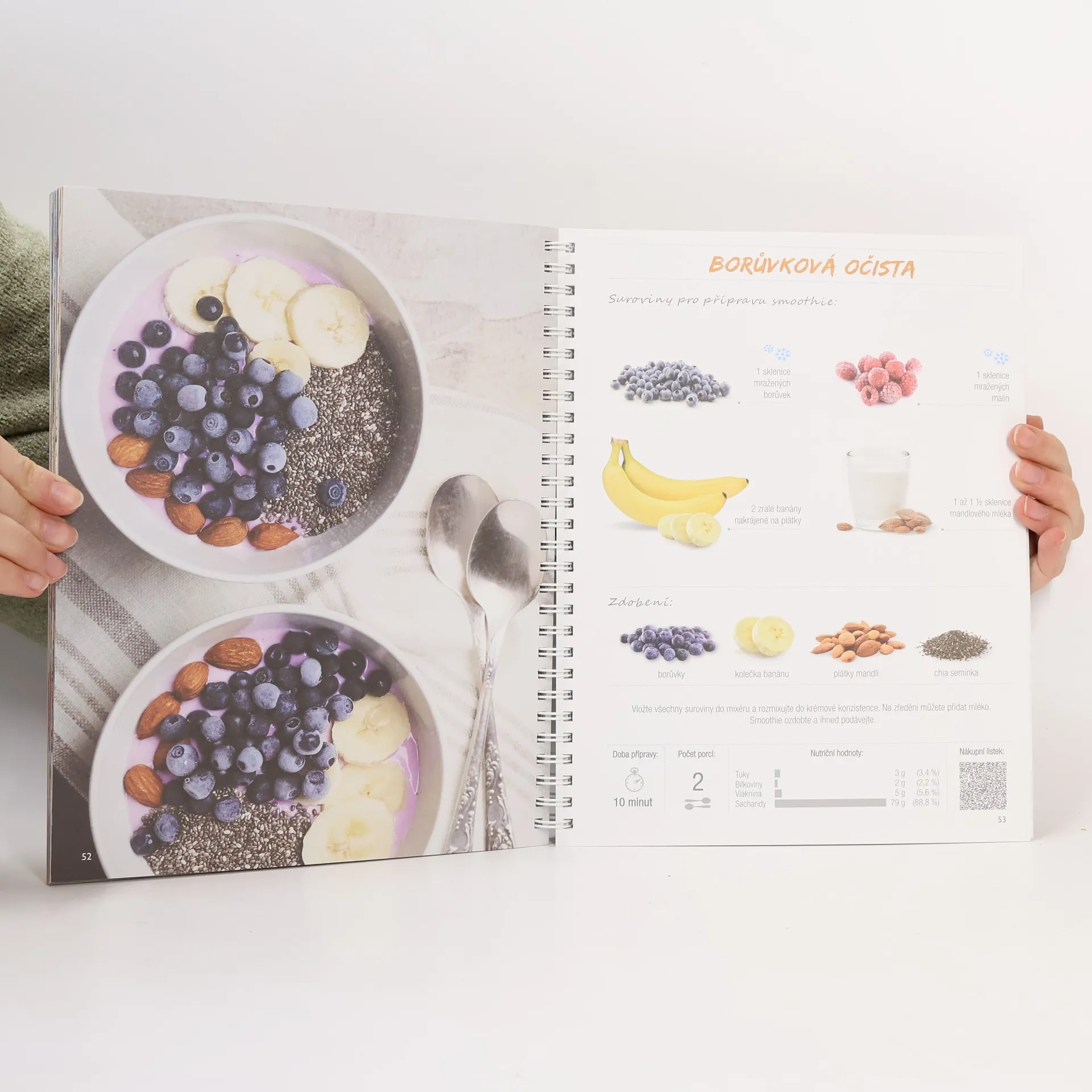 Přemýšlíte čím oživit váš jídelníček? Máte rádi ovoce, zeleninu, oříšky a semínka? Zkuste Smoothie bowls - misky plné zdraví a lahodné chuti! Kniha Smoothie bowls přinaší 40 lahodných receptů hotových do 15 minut z běžně dostupných surovin. U každého receptu najdete znázornění nutričních hodnot a QR kód, díky kterému si do mobilního telefonu můžete načíst nákupní lístek se surovinami. Díky kroužkové vazbě lze knihu pohodlně rozložit na pracovní desce kuchyňského stolu a její použití je tak velmi praktické.