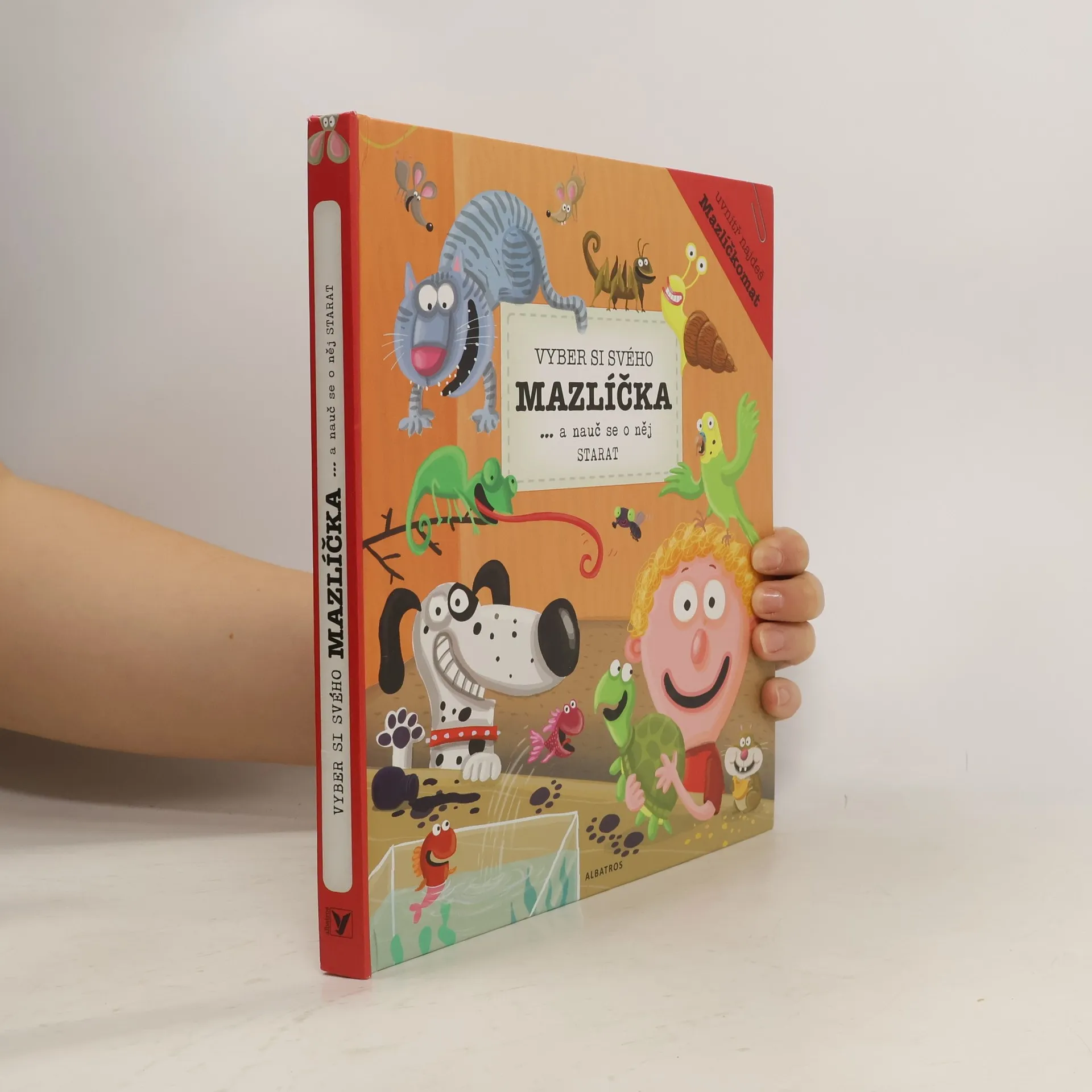 Jedno vypadá jako pochodující list, druhé jako plyšová koule. Třetí je nejšťastnější ve vodě, čtvrté na větvi a pátému je dobře v parku, kde může běhat jako o závod. Strašilka, morče, rybička, leguán a pes. Už víš, o které zvířátko se chceš starat? Pomůžeme ti to zjistit. V této knize najdeš Mazlíčkomat, což je speciální přístroj, díky kterému se dozvíš, jaké zvířátko se pro tebe hodí, čím se živí, kde bydlí, co potřebuje, aby bylo šťastné, a na co musíš dát pozor, aby si neublížilo. Zkrátka to nejdůležitější do začátku!