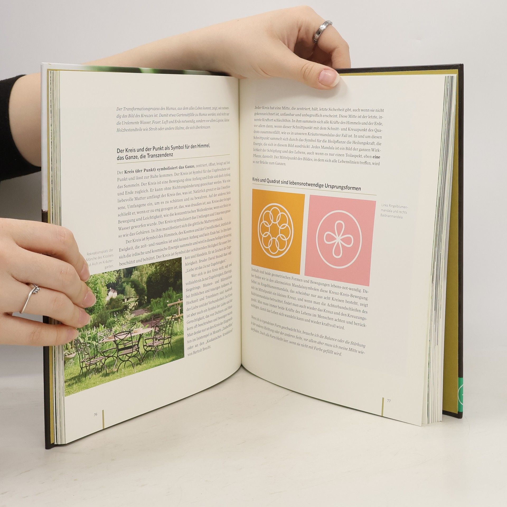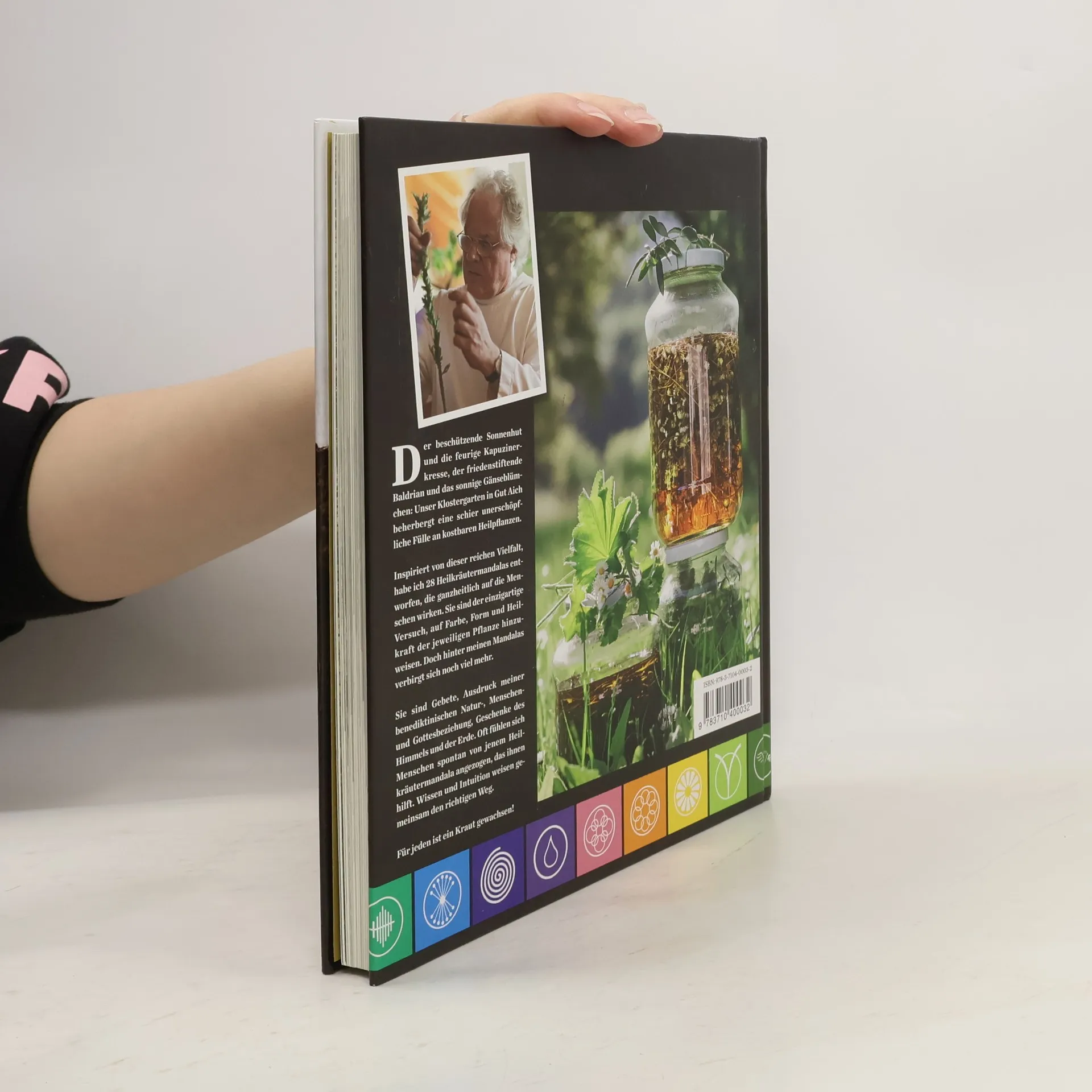 Der beschützende Sonnenhut und die feurige Kapuzinerkresse, der friedenstiftende Baldrian und das sonnige Gänseblümchen: Unser Klostergarten in Gut Aich beherbergt eine schier unerschöpfliche Fülle an kostbaren Heilpflanzen. Inspiriert von dieser reichen Vielfalt, habe ich 28 Heilkräutermandalas entworfen, die ganzheitlich auf die Menschen wirken. Sie sind der einzigartige Versuch, auf Farbe, Form und Heilkraft der jeweiligen Pflanze hinzuweisen. Doch hinter meinen Mandalas verbirgt sich noch viel mehr. Sie sind Gebete, Ausdruck meiner benediktinischen Natur-, Menschen- und Gottesbeziehung, Geschenke des Himmels und der Erde. Oft fühlen sich Menschen spontan von jenem Heilkräutermandala angezogen, das ihnen hilft. Wissen und Intuition weisen gemeinsam den richtigen Weg. Für jeden ist ein Kraut gewachsen!