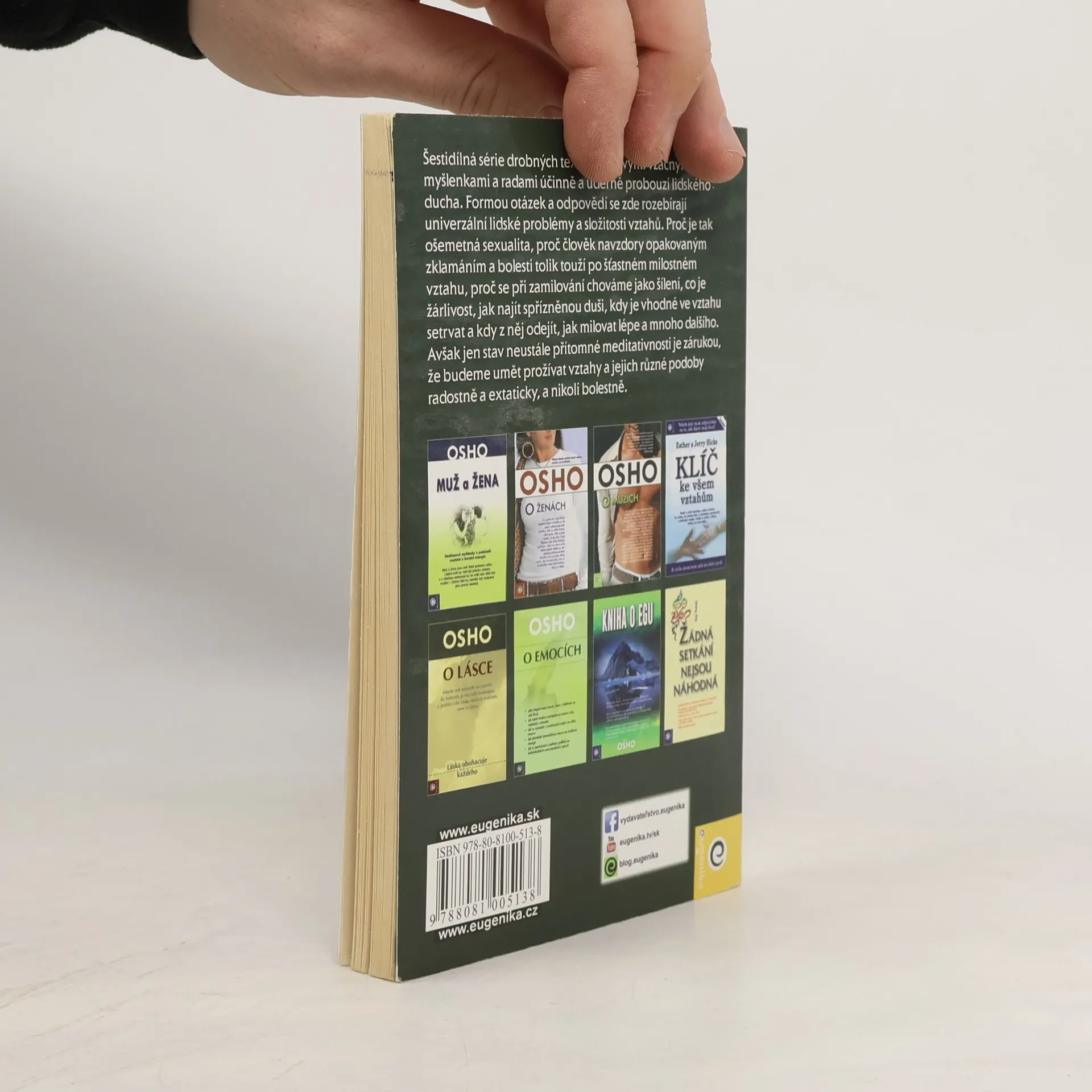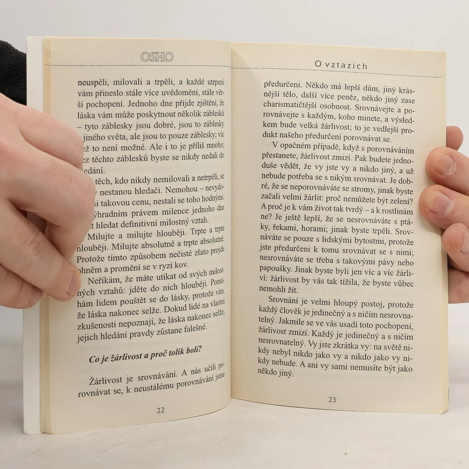 Publikace ze série šesti "Osho-miniknih". Nacházejí se v ní promluvy mistra na téma vztahů - což je téma neustále aktuální pro každého. Tak jak je pro Osha běžné, i zde se jeho názory, vysvětlení a rady linou v odpovědi na otázky, které mu položili posluchači. Tyto otázky zastupují univerzální lidské problémy a snahu pochopit všechny složitosti vztahů. Proč je tak ošemetná sexualita, proč člověk tolik touží po šťastném milostném vztahu navzdory opakovaným zklamáním a bolesti, proč se při zamilování chováme jako šílení, co je žárlivost, jak najít spřízněnou duši, kdy je vhodné ve vztahu setrvat a kdy z něj odejít, jak milovat lépe...? Osho uvádí příklady ze života lidí i zvířat, zpestřuje své vyprávění vtipy či anekdotami. Snaží se přivést čtenáře do jeho vlastního nitra, do souznění se svou podstatou, zdrojem či Bohem, do stavu hluboké a neustále přítomné meditativnosti, neboť takový stav je jedinou zárukou, že budeme umět prožívat vztahy a jejich různé podoby radostně a extaticky, ne bolestně.