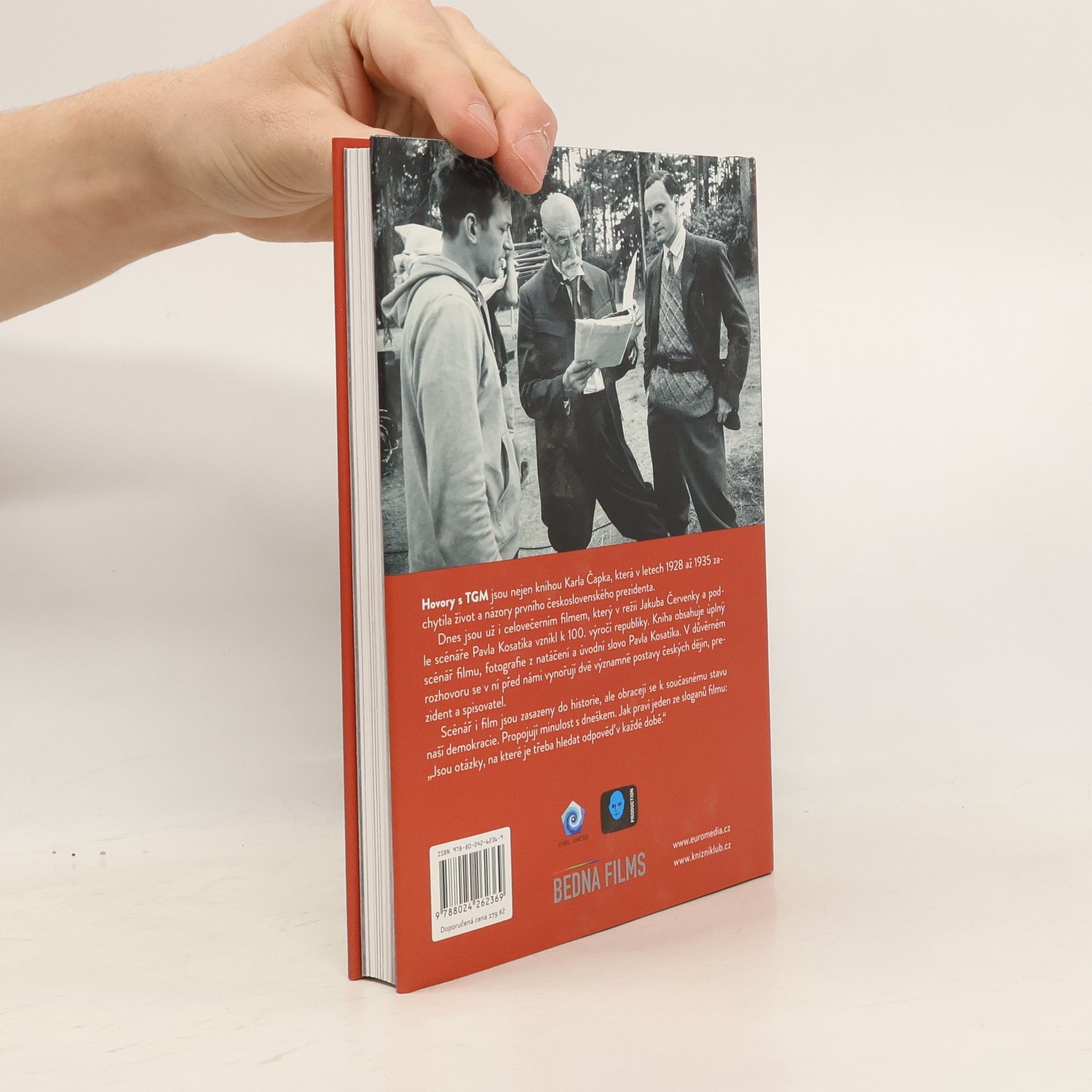 Hovory s TGM jsou nejen knihou Karla Čapka, která v letech 1928–1935 zachytila život a názory prvního čs. prezidenta. Dnes jsou už i celovečerním filmem, který v režii Jakuba Červenky a podle scénáře Pavla Kosatíka vznikl ke 100. výročí republiky. Kniha obsahuje scénář filmu, fotografie z jeho natáčení a úvodní text autora.Scénář i film jsou zasazeny do historie, ale obracejí se k současnému stavu naší demokracie. Propojují minulost s dneškem. Jak praví jeden ze sloganů filmu: "Jsou otázky, na které je třeba si odpovědět v každé době." Sdílet 0