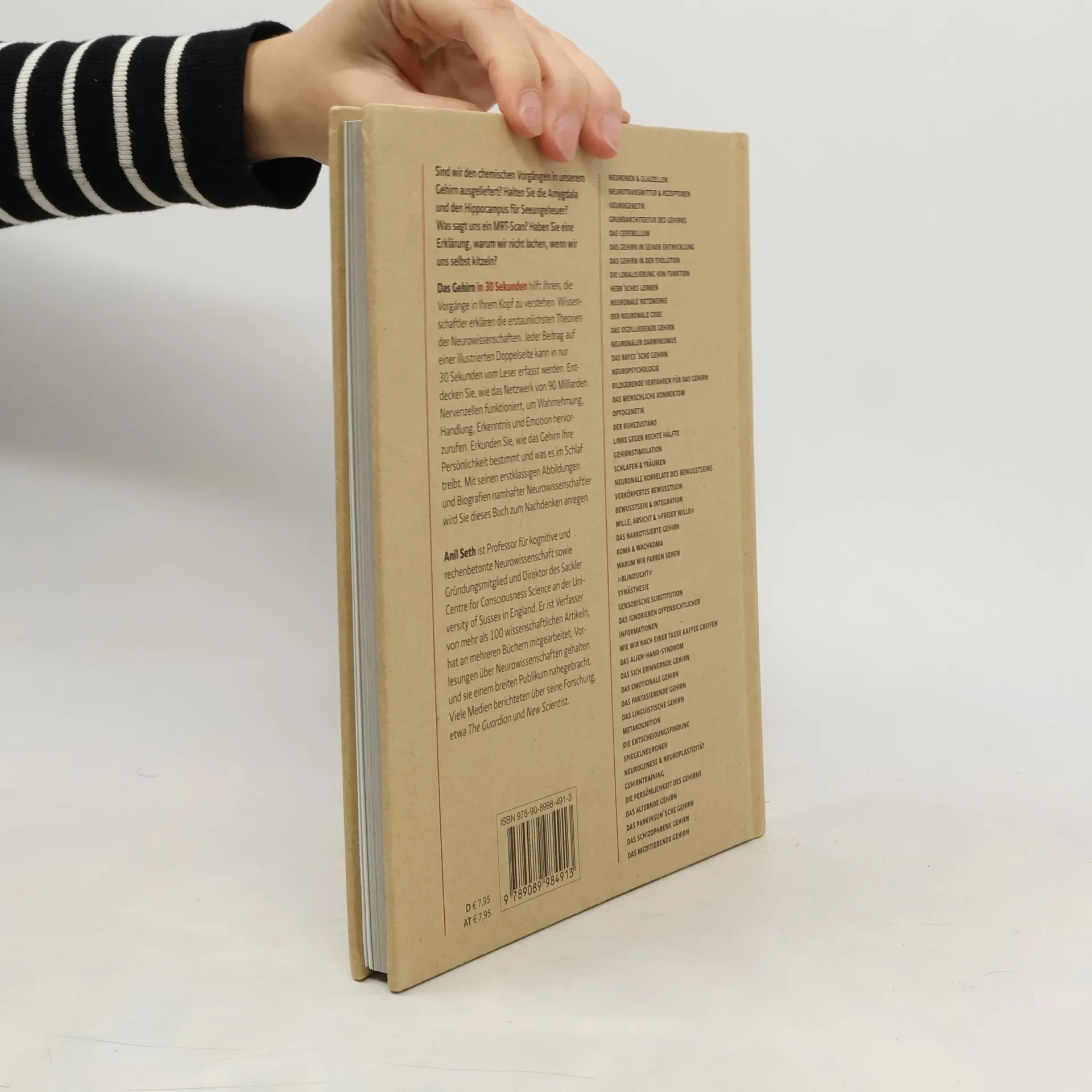 In diesem Buch erklären Wissenschaftler die erstaunlichsten Theorien der Neurowissenschaften. Jeder Beitrag kann in nur 30 Sekunden vom Leser erfasst werden. Entdecken Sie, wie das Netzwerk von 90 Milliarden Nervenzellen funktioniert, um Wahrnehmung, Handlung, Erkenntnis und Emotion hervorzurufen. Erkunden Sie, wie das Gehirn Ihre Persönlichkeit bestimmt und was es im Schlaf treibt. Mit seinen erstklassigen Abbildungen und Biografien namhafter Neurowissenschaftler wird Sie dieses Buch zum Nachdenken anregen.