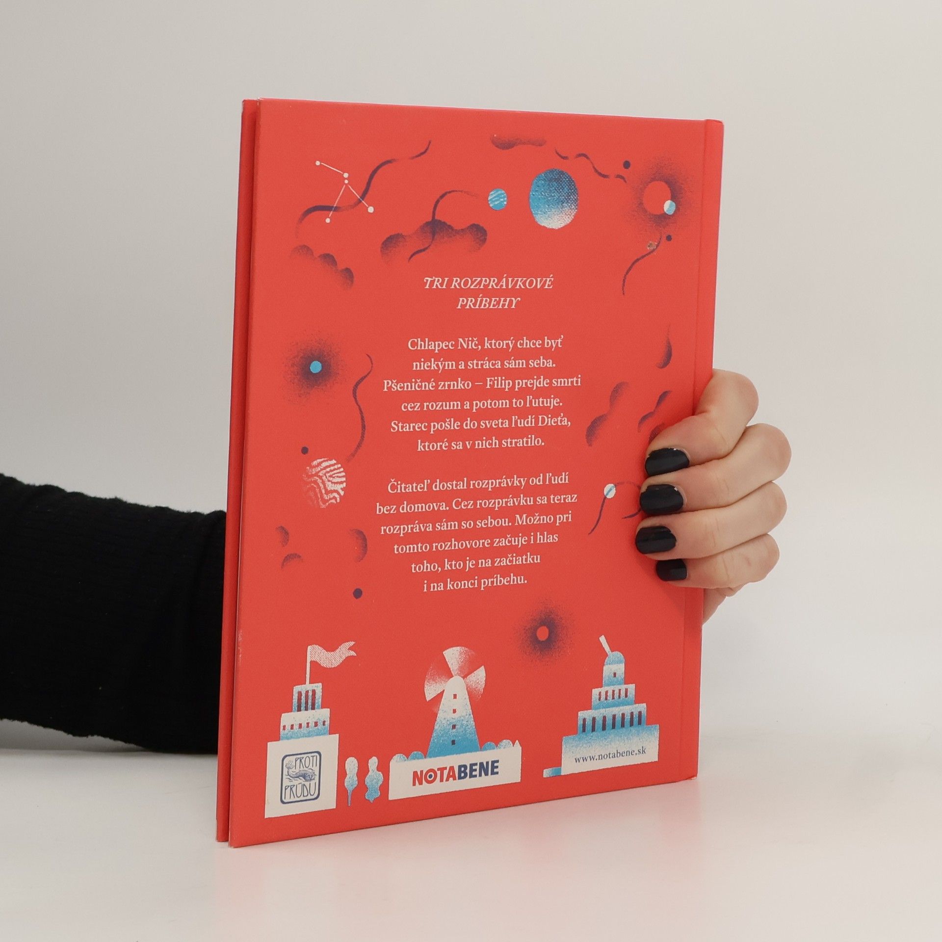 Kniha Daniela Pastirčáka a ilustrátorky Daniely Olejníkovej ponúka tri rozprávkové príbehy: Nič - Chlapec Nič, ktorý chce byť niekým a stráca sám seba. O zrnku - Pšeničné zrnko prejde smrti cez rozum a potom to ľutuje. Starec a dieťa - Starec pošle do sveta ľudí Dieťa, ktoré sa v nich stratilo.