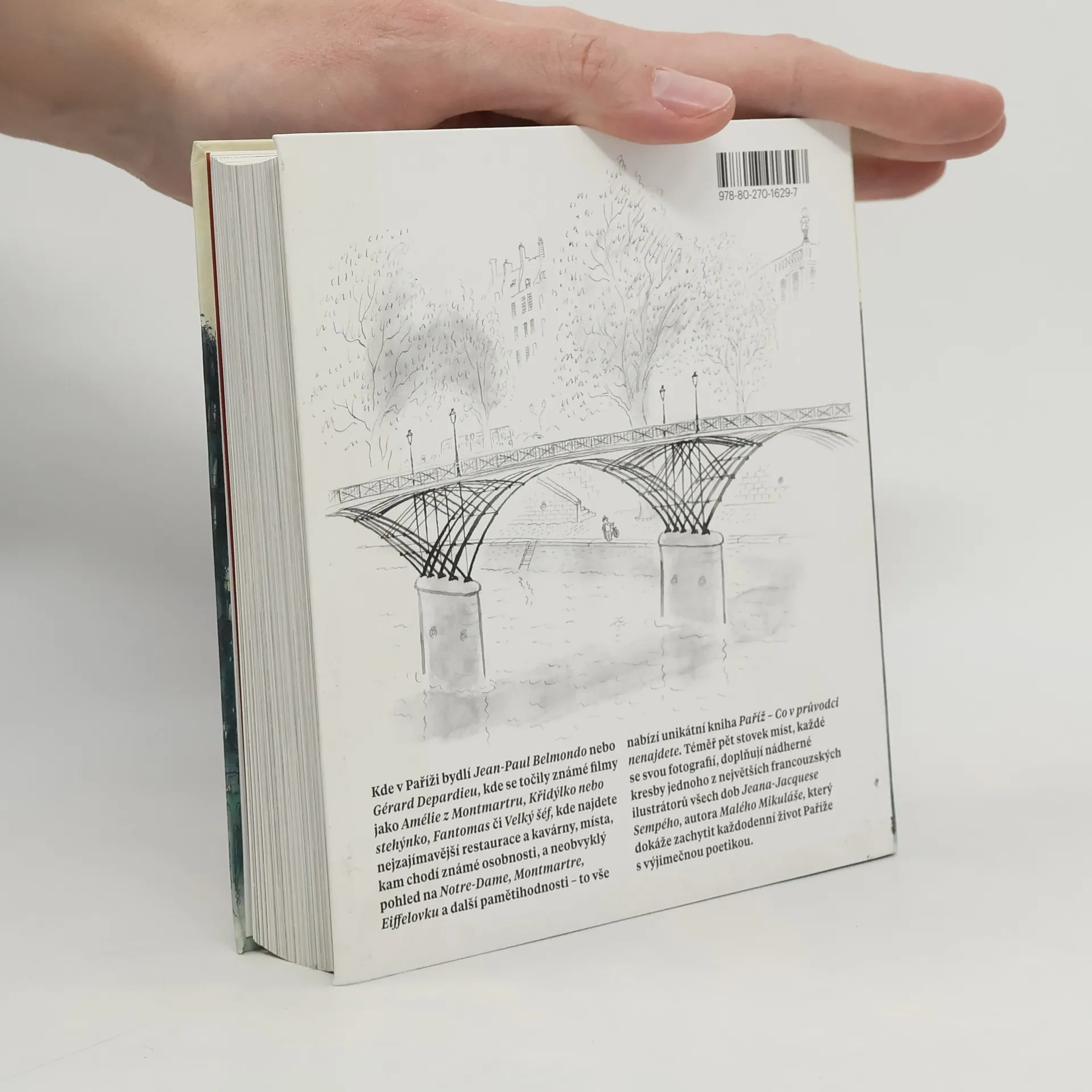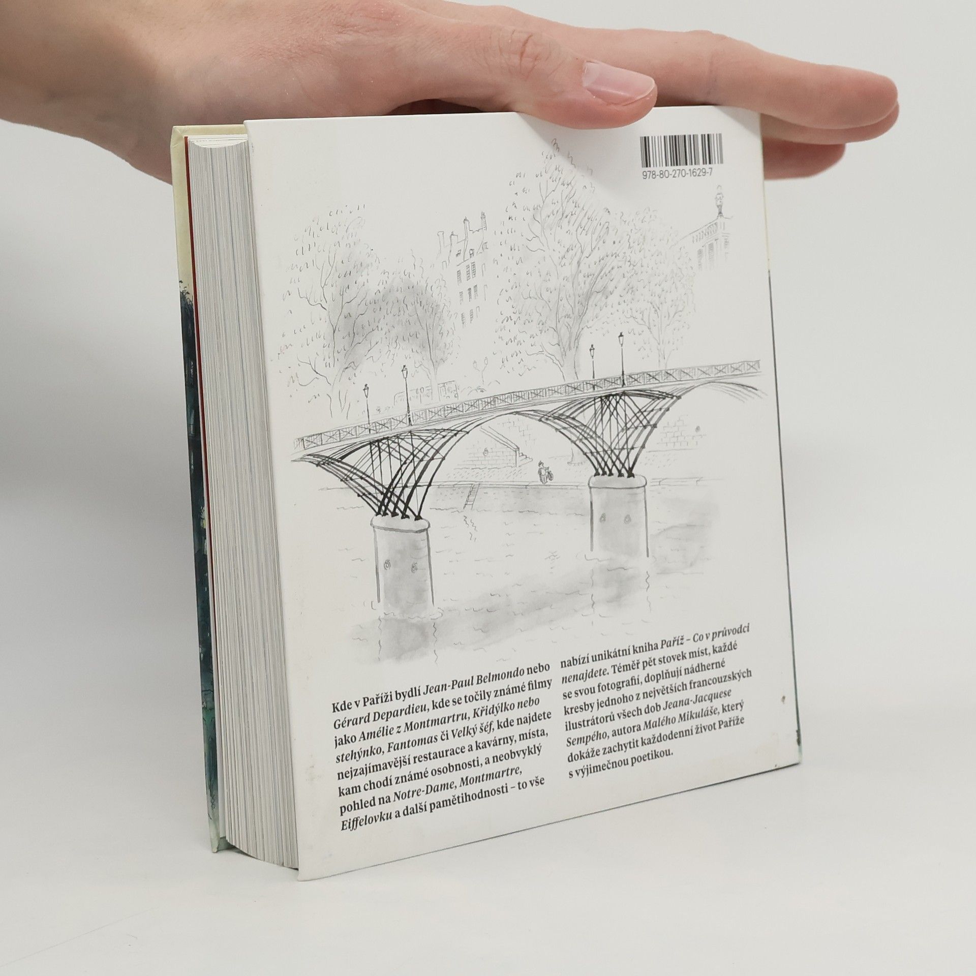Kde v Paříži bydlí Jean-Paul Belmondo nebo Gérard Depardieu, kde se točily známé filmy jako Amélie z Montmartru, Křidýlko nebo stehýnko, Fantomas či Velký šéf, kde najdete nejzajímavější restaurace a kavárny, místa, kam chodí známé osobnosti, a neobvyklý pohled na Notre-Dame, Montmartre, Eiffelovku a další pamětihodnosti – to vše nabízí unikátní kniha Paříž – Co v průvodci nenajdete. Téměř pět stovek míst, každé se svou fotografií, doplňují nádherné kresby jednoho z největších francouzských ilustrátorů všech dob Jeana-Jacquese Sempého, autora Malého Mikuláše, který dokáže zachytit každodenní život Paříže s výjimečnou poetikou.
