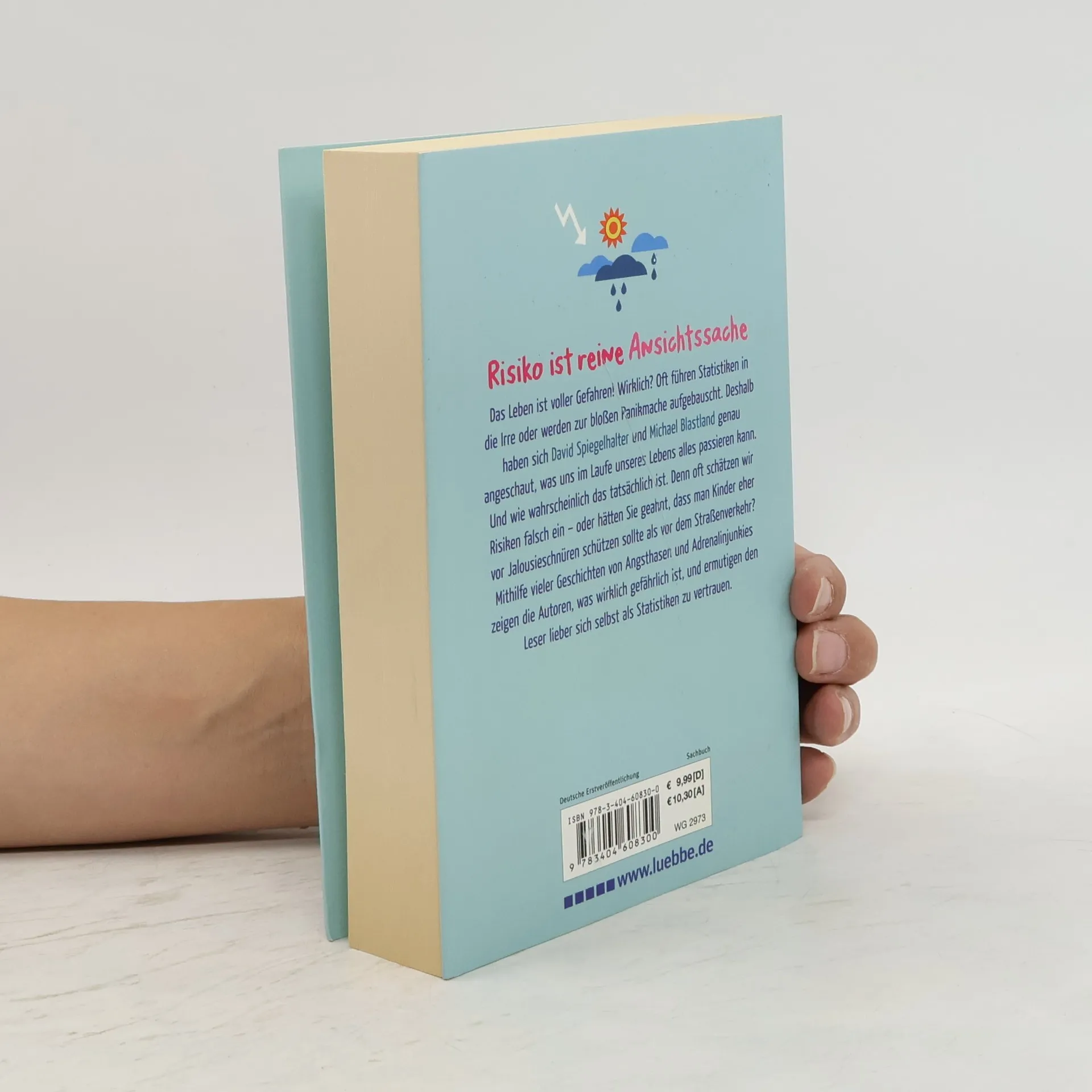 Manchmal kann man es nur falsch machen: Wer sich zu starker Sonnenstrahlung aussetzt, erhöht das Hautkrebsrisiko. Wer sich aber zu gewissenhaft vor UV-Strahlen schützt, leidet bald unter Vitamin-D-Mangel und dessen Folgeerkrankungen. Unsere Persönlichkeit, individuelle Disposition und unser Verhalten haben viel größeren Einfluss auf unser jeweiliges Lebensrisiko, als Statistiken es erfassen können. Und genau diesen „menschlichen Faktor“ beziehen Michael Blastland und David Spiegelhalter in ihre Analyse der Gefahren, die das ganze Leben über auf uns Menschen lauern, ein. So erzählen sie anschauliche Geschichten über die verschiedenen Seiten der Gefahr und ermutigen den Leser, lieber sich selbst als Statistiken zu vertrauen.