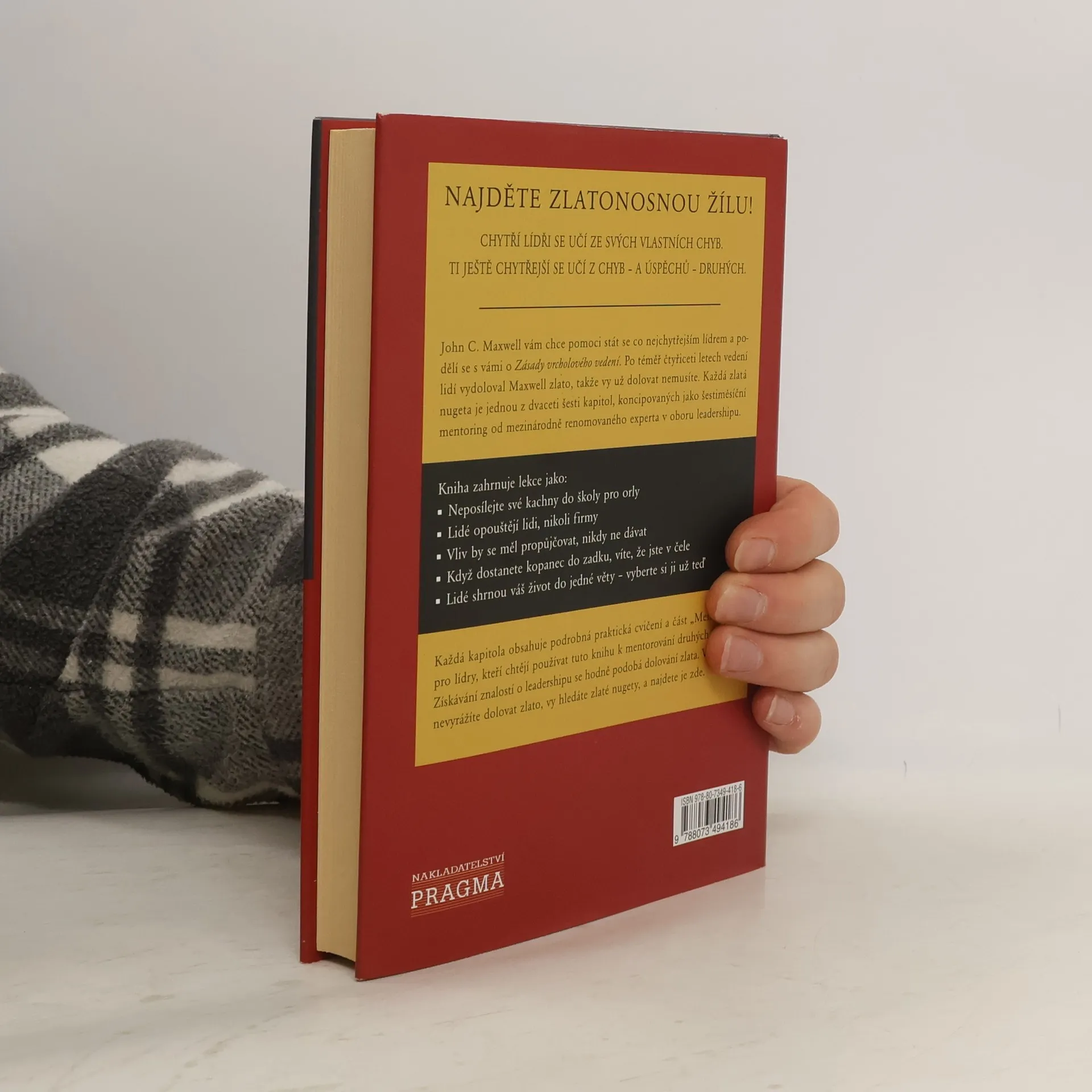 Podtitul: Získejte praxi, kterou jsem se učil celý život. Zásady vrcholového vedení jsou knihou vydanou u příležitosti životního jubilea významného lídra, mentora, učitele a spisovatele Johna Maxwella. Jeho zásadou je předávat dál své poznatky, které získal během čtyřiceti let vedení několika společností i tisíců dobrovolníků. Kniha je určena všem, kteří se věnují vedení, rozvíjení a motivování druhých. Maxwell předává své osobní zkušenosti a doplňuje je příběhy z praxe či výroky jiných velkých lídrů. Chcete-li získat moudrost jednoho z největších amerických lídrů, držíte v rukou správnou knihu.
