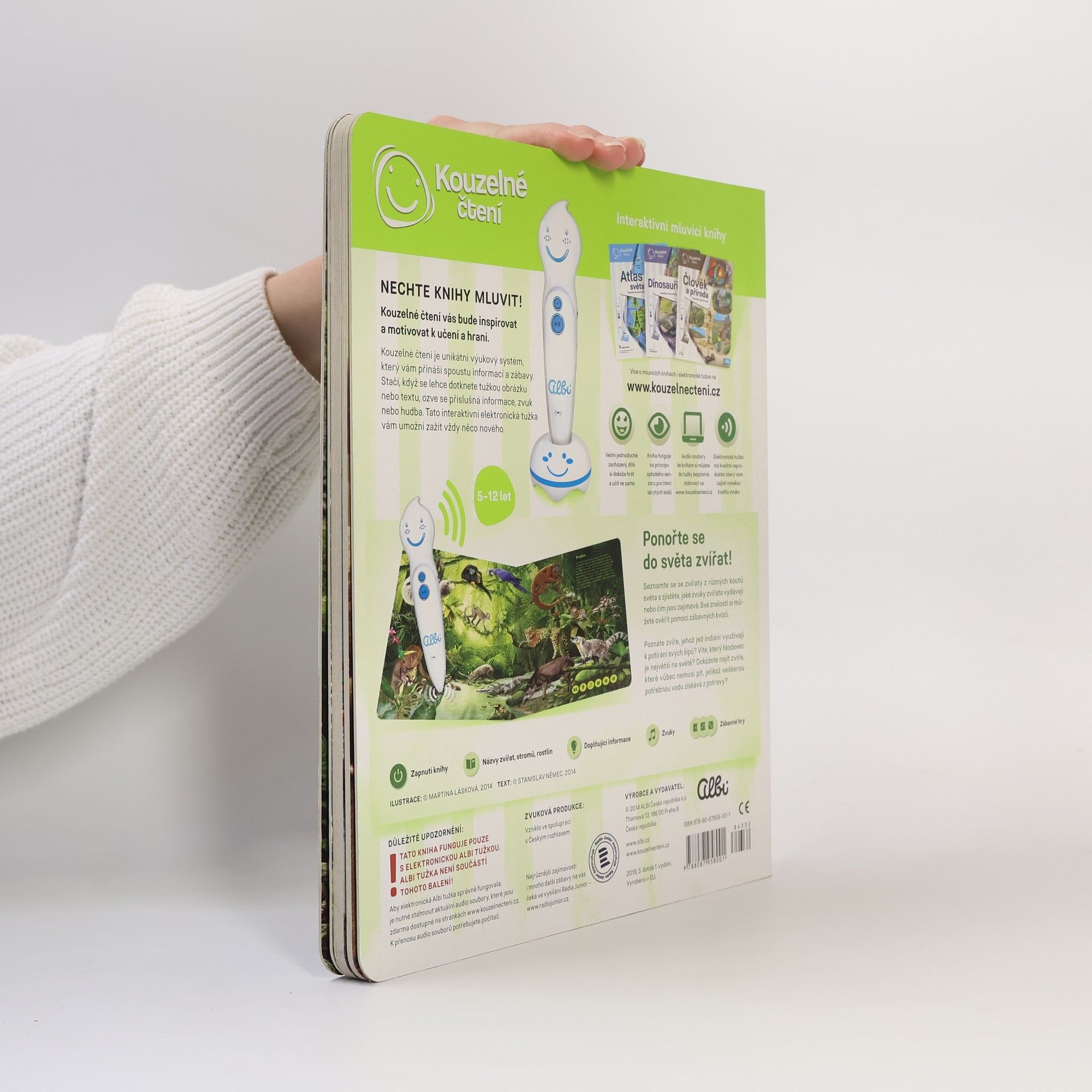 Ponořte se do světa zvířat! Seznamte se se zvířaty ze všech koutů světa a zjistěte, jaké zvuky vydávají, čím se živí nebo čím jsou jedinečná. Kniha vás tématicky provede osmi různými prostředími z naší planety, jako je les, savana, poušť, moře a další. Na každé straně se dozvíte, jaká zvířata v daném prostředí žijí, jak se jmenují, jaké zvuky vydávají a čím jsou zajímavá. Své znalosti si pak můžete ověřit pomocí zábavných kvízů, které jsou vždy rozděleny do tří kategorií: najdi zvíře podle názvu, najdi zvíře podle zvuku, najdi zvíře podle zajímavosti. Kniha je namluvena známým českým hercem Otakarem Brouskem ml. Kniha obsahuje přes 900 zvuků a textů. Kniha vznikla ve spolupráci s Českým rozhlasem.
