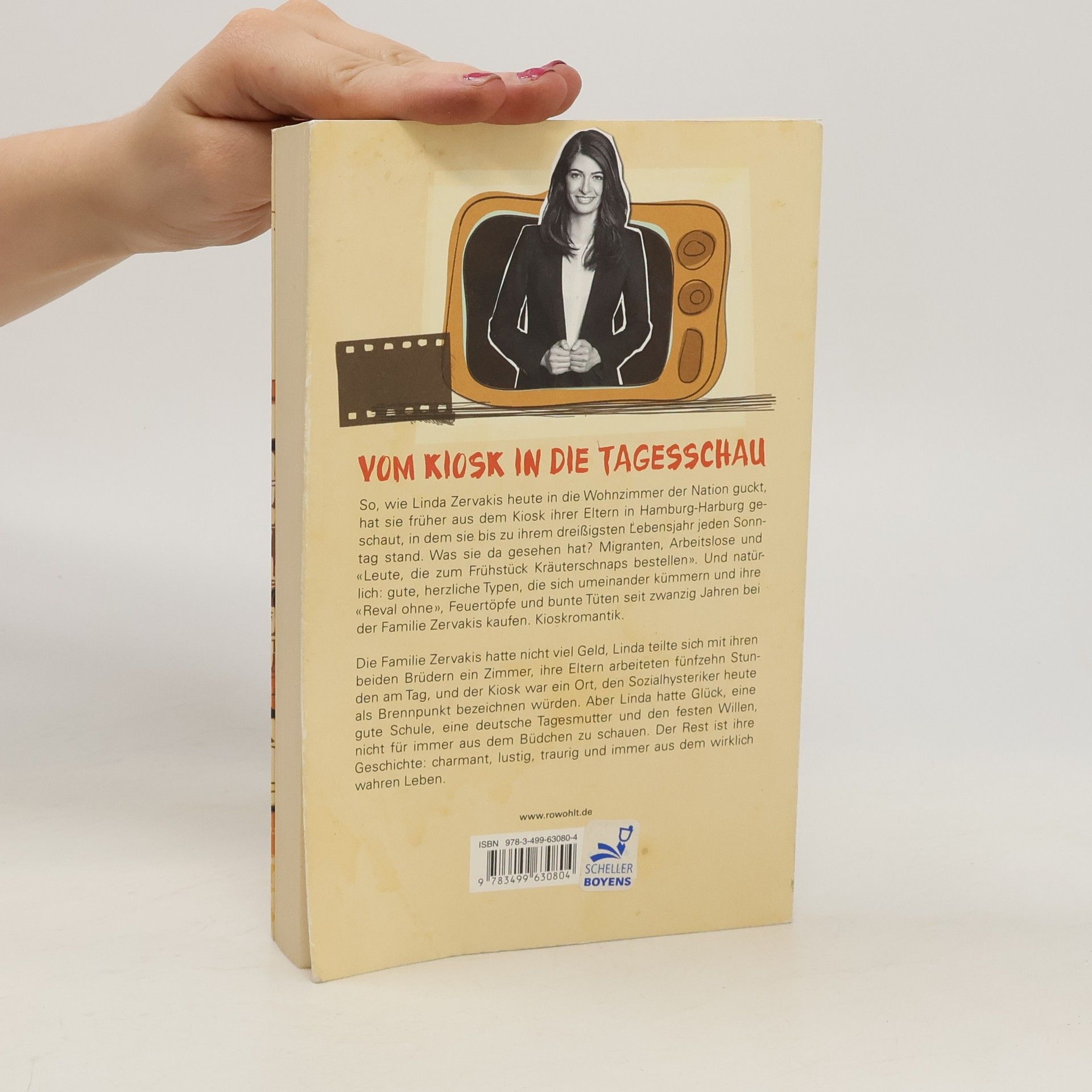 Vom Kiosk in die Tagesschau So, wie Linda Zervakis heute in die Wohnzimmer der Nation guckt, hat sie früher aus dem Kiosk ihrer Eltern in Hamburg-Harburg geschaut, in dem sie bis zu ihrem dreißigsten Lebensjahr jeden Sonntag stand. Was sie da gesehen hat? Migranten, Arbeitslose und «Leute, die zum Frühstück Kräuterschnaps bestellen». Und natürlich: gute, herzliche Typen, die sich umeinander kümmern und ihre Reval ohne, Feuertöpfe und bunte Tüten seit zwanzig Jahren bei der Familie Zervakis kaufen. Kioskromantik. Die Familie Zervakis hatte nicht viel Geld, Linda teilte sich mit ihren beiden Brüdern ein Zimmer, ihre Eltern arbeiteten fünfzehn Stunden am Tag, und der Kiosk war ein Ort, den Sozialhysteriker heute als Brennpunkt bezeichnen würden. Aber Linda hatte Glück, eine gute Schule, eine deutsche Tagesmutter und den festen Willen, nicht für immer aus dem Büdchen zu schauen. Der Rest ist ihre Geschichte: charmant, lustig, traurig und immer aus dem wirklich wahren Leben.