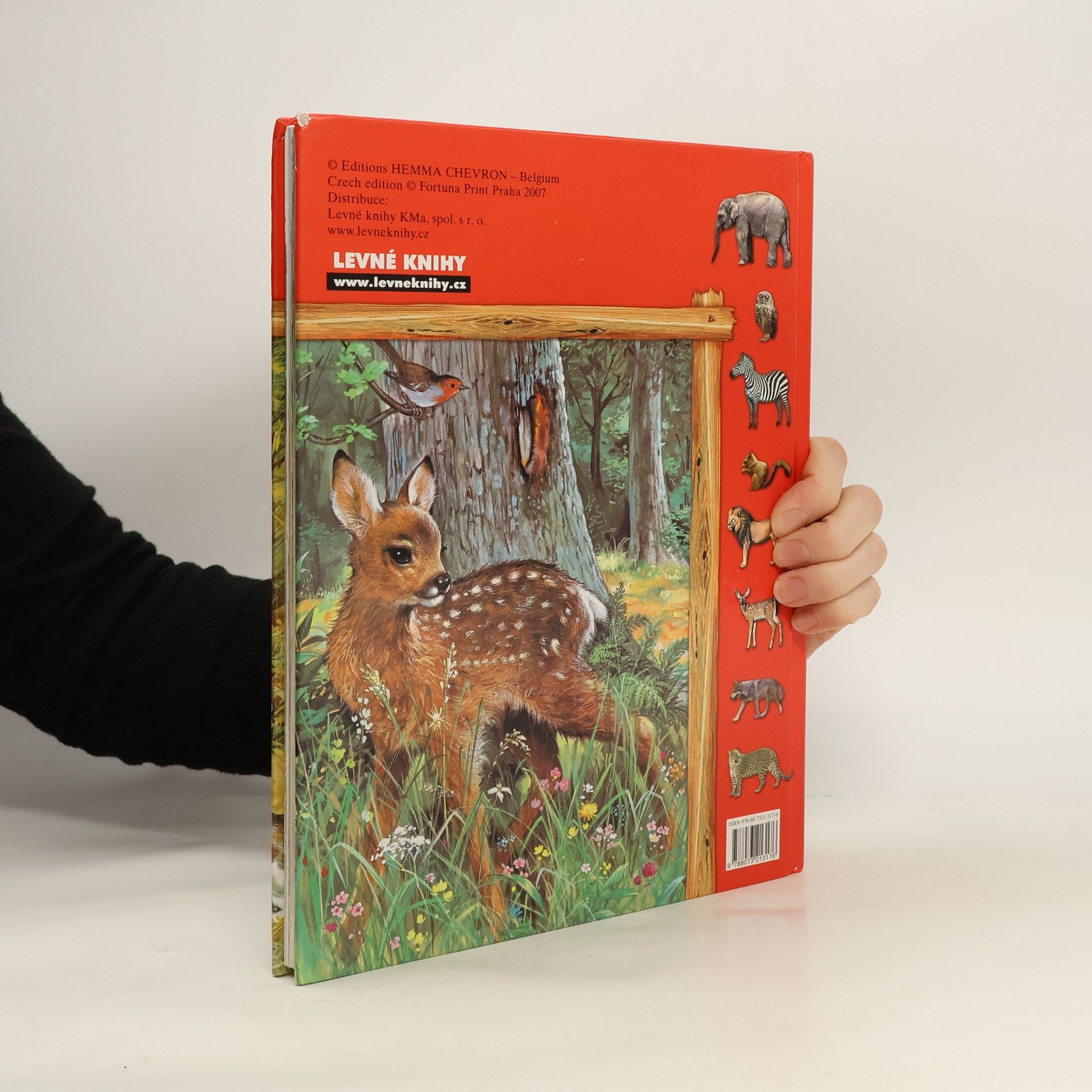 Krátké texty a veliké realistické ilustrace představí dětem zvířata: na statku, na venkově, lesní, africká, v horách, u vody a v lese. Převzato z vydání Emma Chevron Belgium.