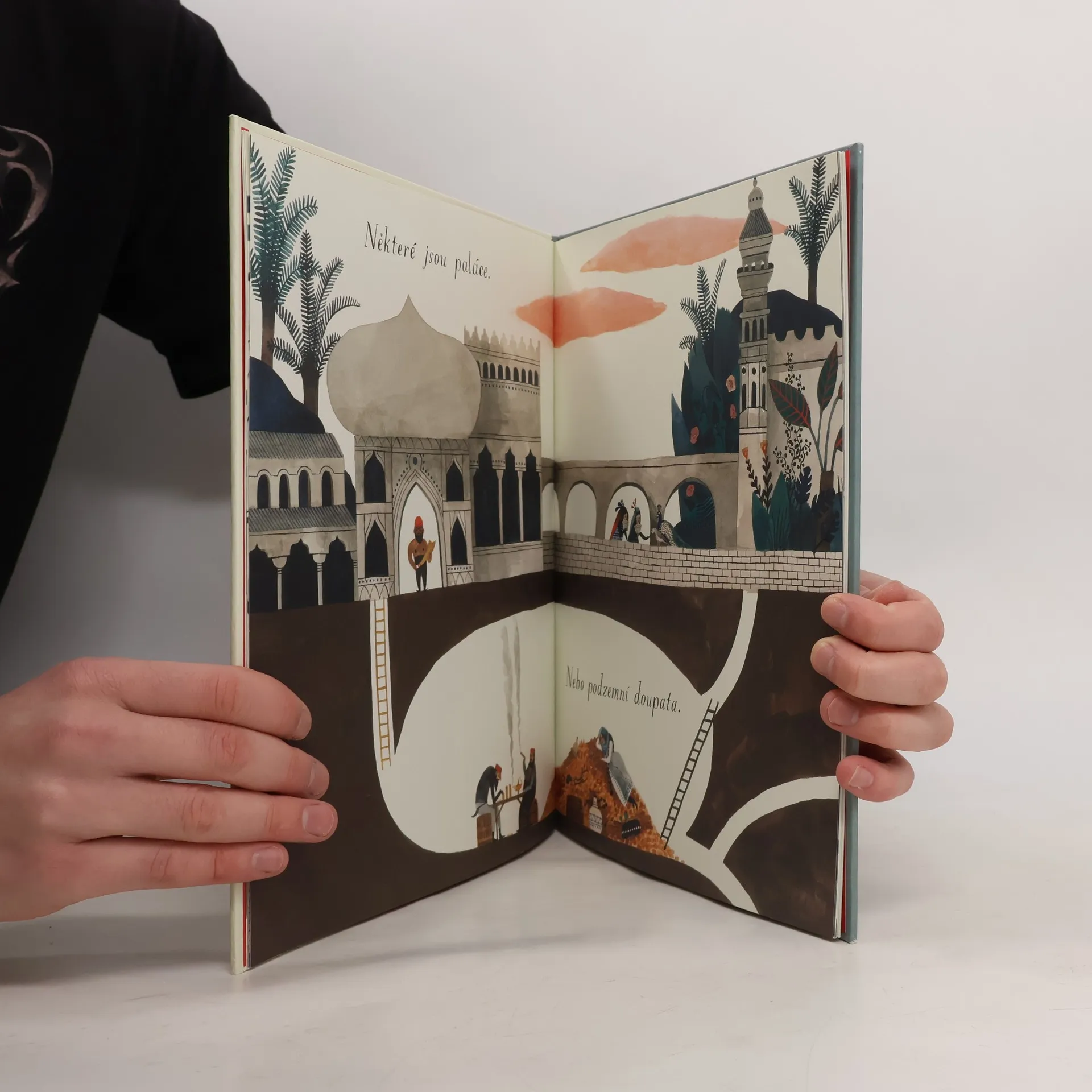 Vynikající malířka a ilustrátorka Carson Ellisová přichází se svou první autorskou knihou, ve které s humorem i nadsázkou představuje rozmanité podoby domova. Domov může být dům na venkově, byt ve městě nebo dokonce bota. Domov lze najít na cestě, pod vodou, v bájných světech i v autorčině ateliéru. Autorský debut oceňované ilustrátorky je laskavým pohledem na místa, která lze (někdy s notnou dávkou fantazie) označit jako domov, a vybízí tak k zamyšlení nad tím, co pro nás vlastně domov znamená. Svou bohatou vizuální stránkou čtenáře láká, aby se ke knize opakovaně vracel. Ilustrace ukrývají spoustu drobných detailů, které při každém dalším čtení nabídnou nové významy. Průvodkyní celou knihou je holubice z titulní strany. Silueta v okně prvního domova se při bližším pohledu proměňuje v čepici dívky na poslední dvoustraně. V závěru se tak ukazuje, jak bydlí sama autorka, a předměty, které čtenář mohl objevit na předchozích stranách (korouhvička, loď v lahvi, globus, černobílá látka, klobouk s krempou) nacházejí své místo u malířky doma. Právě tyto předměty nabízejí prostor k zastavení, zamyšlení i opakovanému čtení. Všímavý čtenář může neustále objevovat nové a nové detaily.