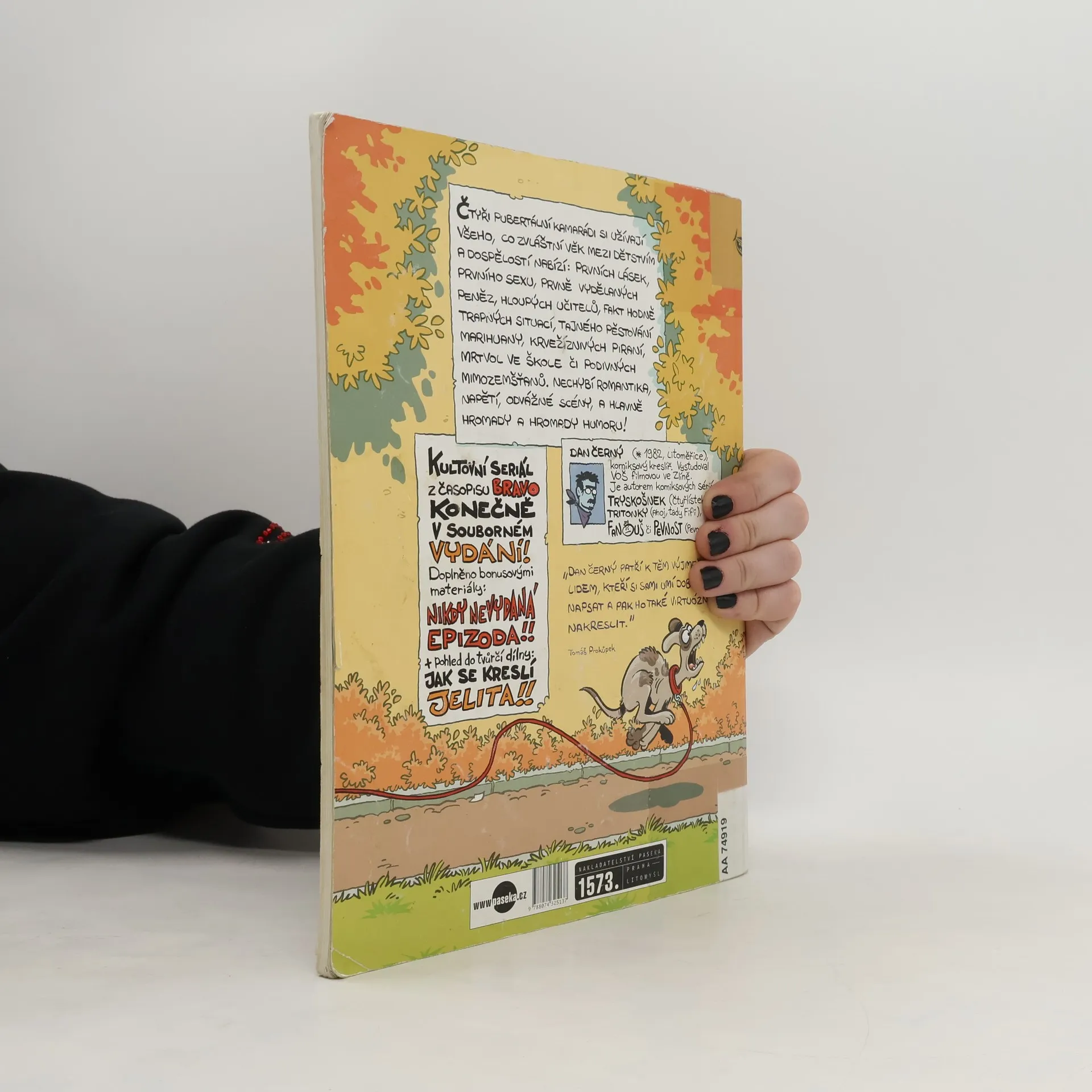 Čtyři pubertální kamarádi si užívají všeho, co zvláštní věk mezi dětstvím a dospělostí nabízí: prvních lásek, prvního sexu, prvně vydělaných peněz, hloupých učitelů, fakt hodně trapných situací, tajného pěstování marihuany, krvežíznivých piraní, mrtvol ve škole či podivných mimozemšťanů. Nechybí romantika, napětí, odvážné scény, a hlavně hromady a hromady humoru. Kultovní komiks z časopisu Bravo konečně v souborném vydání! Doplněno bonusovými materiály v podobě nikdy nevydané epizody nebo unikátního pohledu do tvůrčí dílny Jak se kreslí Jelita. "Dan Černý patří k těm výjimečným lidem, kteří si sami umí dobrý příběh napsat a pak ho také virtuózně kresebně zpracovat." Tomáš Prokůpek