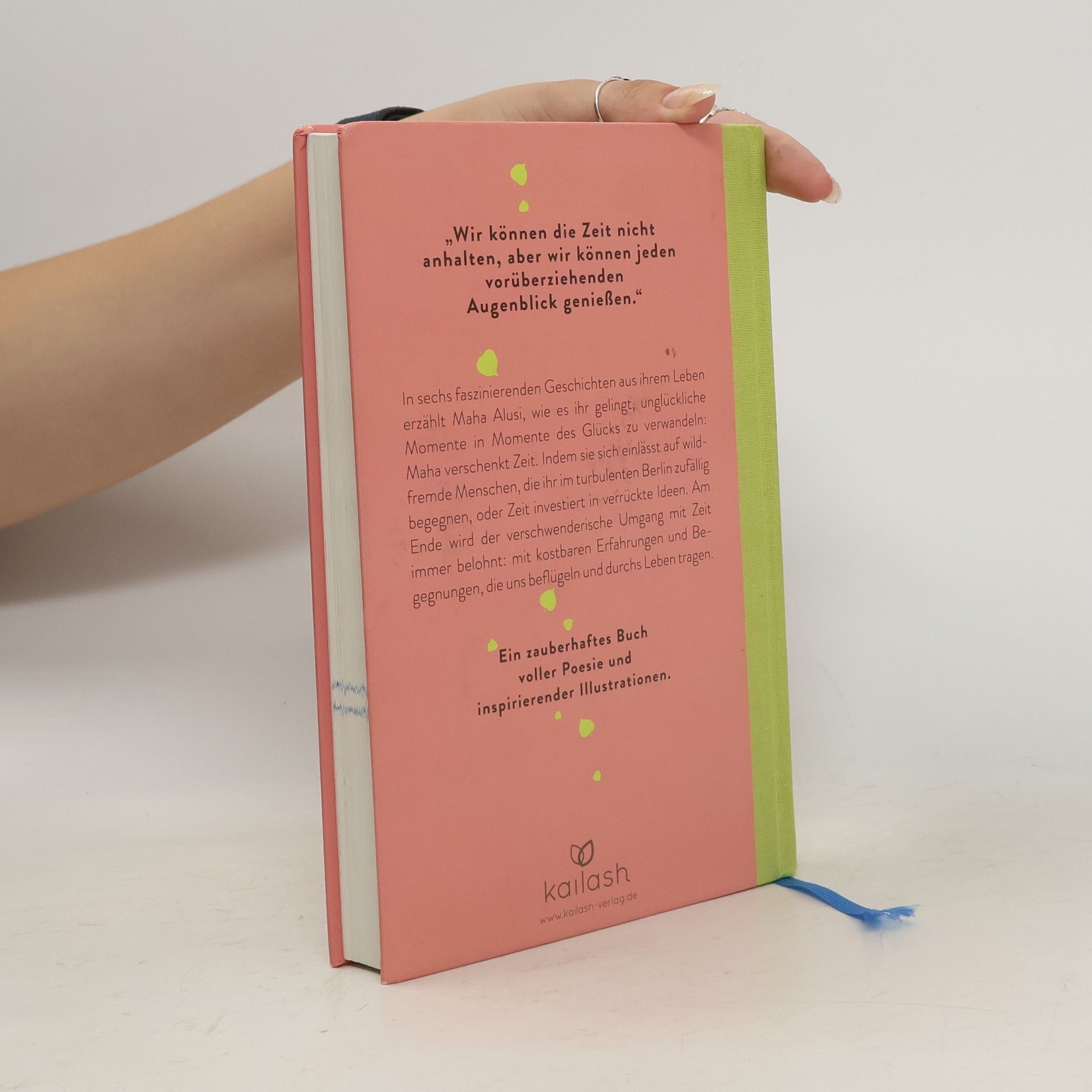 Für Maha Alusi ist jeder Augenblick besonders wertvoll. In sechs außergewöhnlich berührenden Geschichten aus ihrem Leben erzählt sie, wie es ihr immer wieder gelingt, unglückliche Momente in Augenblicke des Glücks zu verwandeln: Maha verschenkt Zeit. Indem sie sich einlässt auf wildfremde Menschen, die ihr im turbulenten Berlin begegnen, oder Zeit investiert in wahnwitzige Ideen. Am Ende wird der verschwenderische Umgang mit Zeit immer belohnt: mit kostbaren Erfahrungen, die einen beflügeln und durchs Leben tragen.