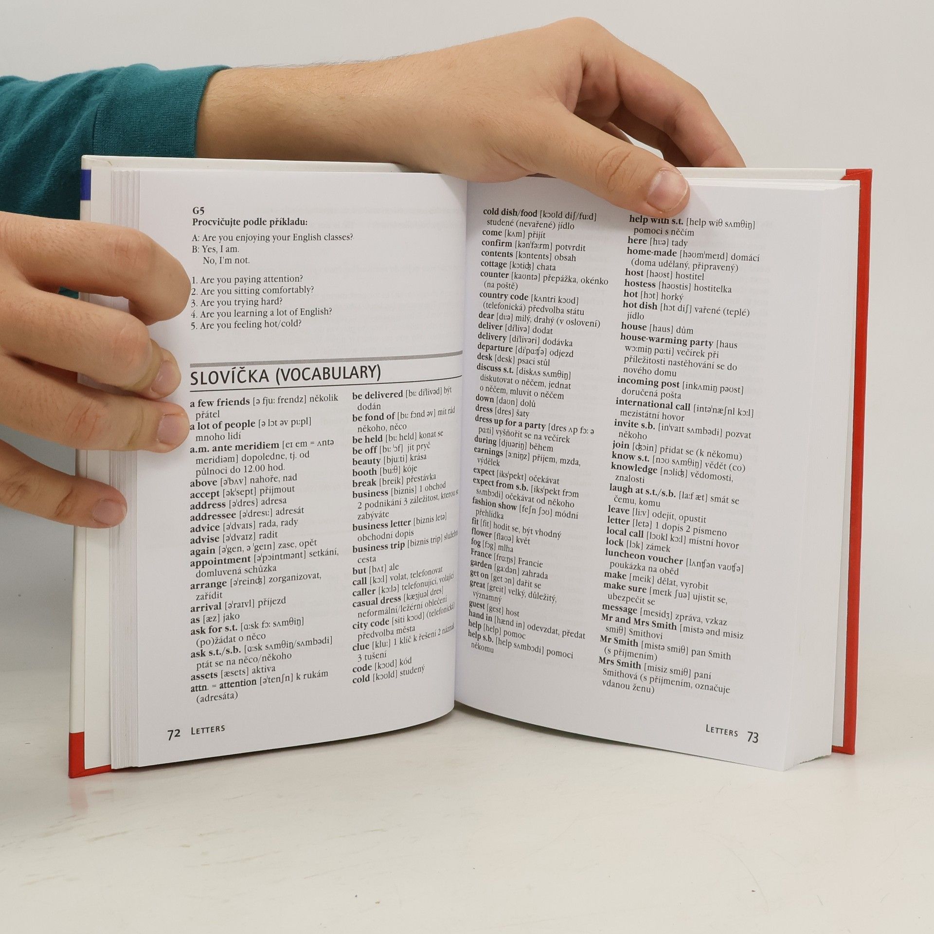 Moderně koncipovaná učebnice, se kterou zvládnete hovořit o běžných tématech každodenního života. Výběr témat a slovní zásoby vychází z bohatých pedagogických zkušeností autorek a upozorňuje na úskalí, se kterými se setkali studenti jejich kurzu a tak jsou dialogy v učebnici živým obrazem reálných situací, do kterých se můžete dostat i vy. V této prakticky zaměřené učebnici najdete ukázky jak napsat dopis, objednávku, fakturu, jak si objednat pobyt v hotelu nebo porozumět oznámením v letadle.