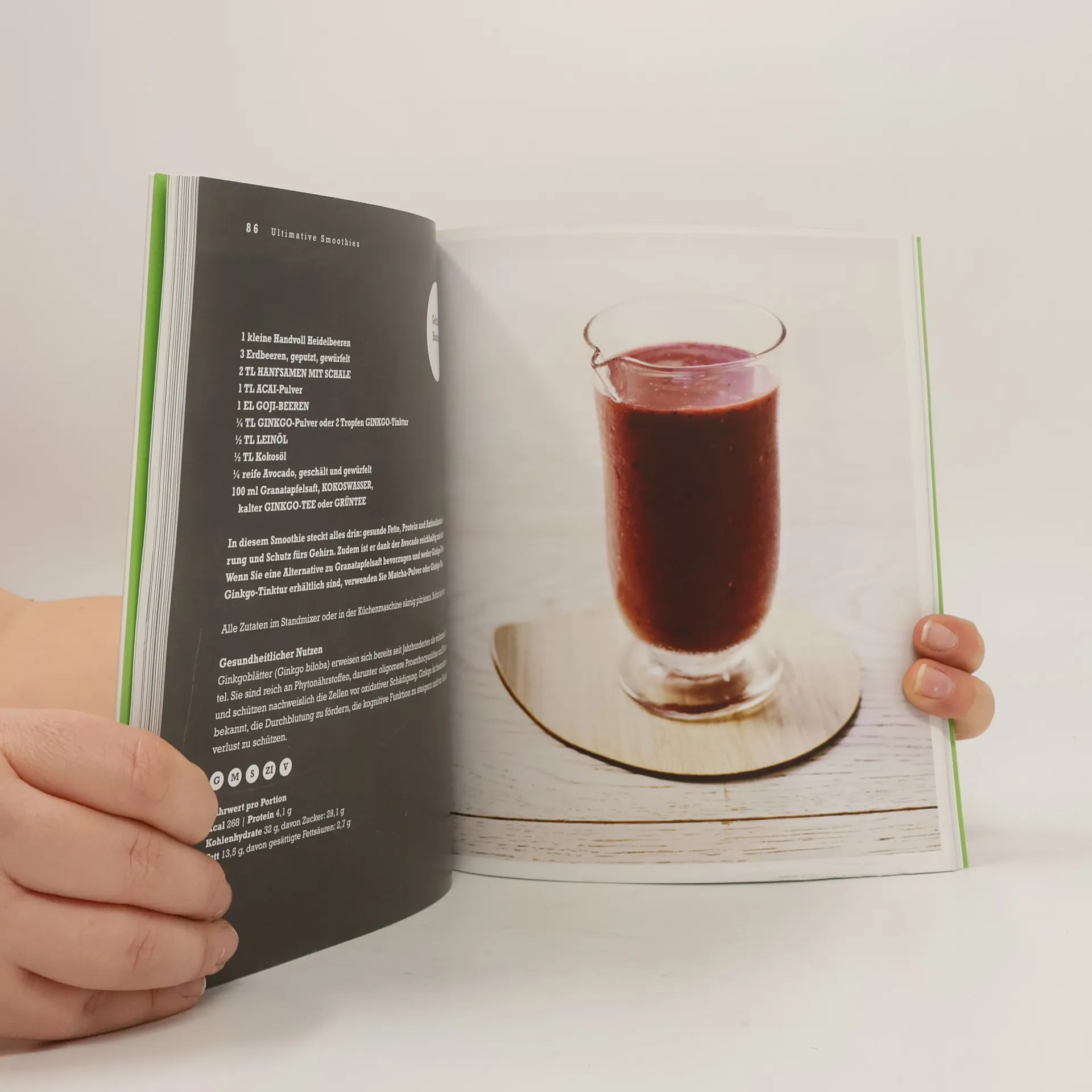 Wie man mit Smoothies mehr Energie erhält, seine Gesundheit verbessert, an Gewicht verliert und sich rundum wohlfühlt, erfährt man in diesem Buch. Neben einer kurzen Erklärung der wichtigsten Superfoods, ergänzenden Zusätzen und Tipps zur Herstellung gibt es einen Plan für eine Detox-Kur fürs Wochenende. Der große Rezeptteil ist in folgende Kapitel eingeteilt: Frucht, Gemüse, Ultimative Smoothies und Cremige Smoothies.