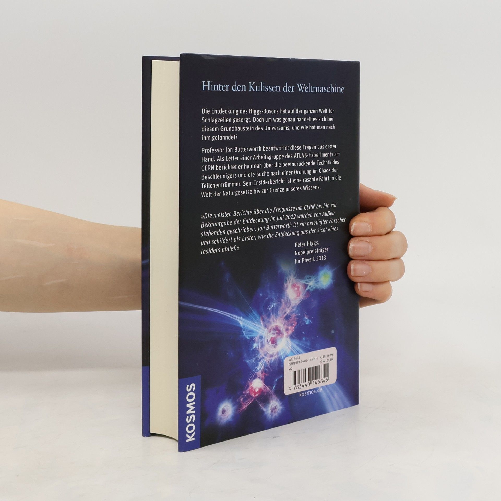 Die Entdeckung des Higgs-Bosons hat rund um die Welt für Schlagzeilen gesorgt. Doch um was genau handelt es sich bei diesem „Gottesteilchen“, und wie hat man nach ihm gefahndet? Jon Butterworth kann diese Fragen aus erster Hand beantworten. Er ist einer der führenden Physiker am CERN und berichtet hautnah über die beeindruckende Technik des Beschleunigers und die Suche nach einer Ordnung im Chaos der Teilchentrümmer. Für den Autor war die Jagd nach dem Higgs das größte Abenteuer seines Lebens. Sein Insiderbericht ist eine rasante Fahrt in die Welt der Naturgesetze bis zur Grenze unseres Wissens.