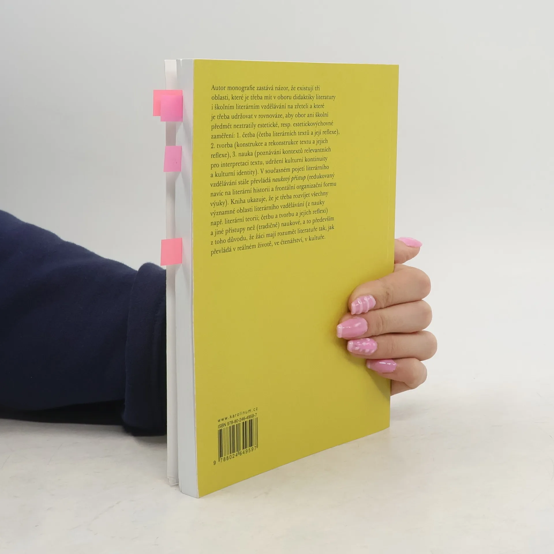 Autor monografie zastává názor, že existují tři oblasti, které je třeba mít v oboru didaktiky literatury i školním literárním vzdělávání na zřeteli a které je třeba udržovat v rovnováze, aby obor ani školní předmět neztratily estetické, resp. estetickovýchovné zaměření: 1. četba (četba literárních textů a její reflexe), 2. tvorba (konstrukce a rekonstrukce textu a jejich reflexe), 3. nauka (poznávání kontextů relevantních pro interpretaci textu, udržení kulturní kontinuity a kulturní identity). V současném pojetí literárního vzdělávání stále převládá naukový přístup (redukovaný navíc na literární historii a frontální organizační formu výuky). Kniha ukazuje, že je třeba rozvíjet všechny významné oblasti literárního vzdělávání (z nauky např. literární teorii; četbu a tvorbu a jejich reflexi) a jiné přístupy než (tradičně) naukové, a to především z toho důvodu, že žáci mají rozumět literatuře tak, jak převládá v reálném životě, ve čtenářství, v kultuře.