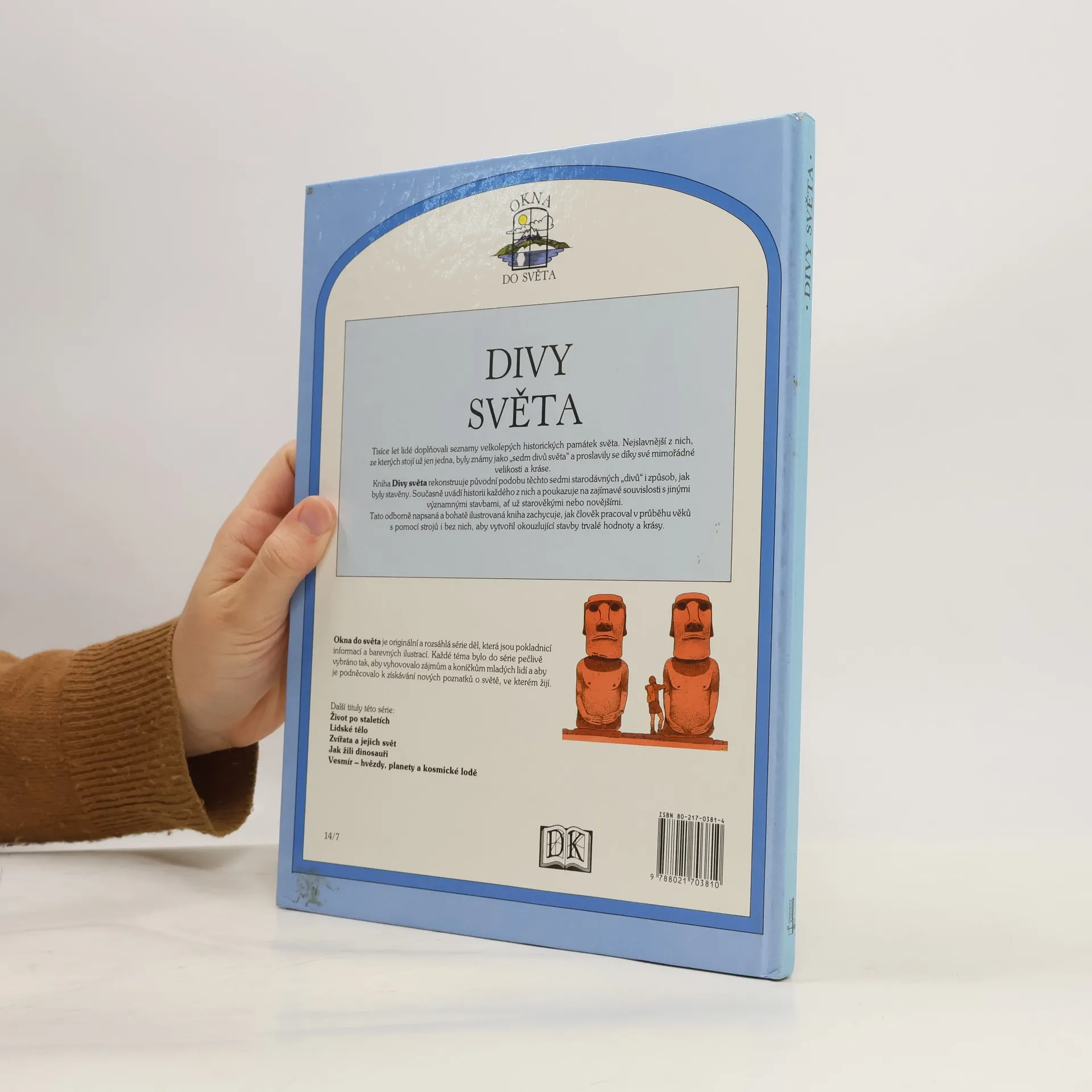Kniha Divy světa rekonstruuje původní podobu sedmi starodávných divů i způsob, jak byly stavěny. Současně uvádí historii každého z nich a poukazuje na zajímavé souvislosti s jinými významnými stavbami, ať už starověkými nebo novějšími. Tato odborně napsaná a bohatě ilustrovaná kniha zachycuje, jak člověk pracoval v průběhu věků s pomocí strojů i bez nich, aby vytvořil okouzlující stavby trvalé hodnoty a krásy.