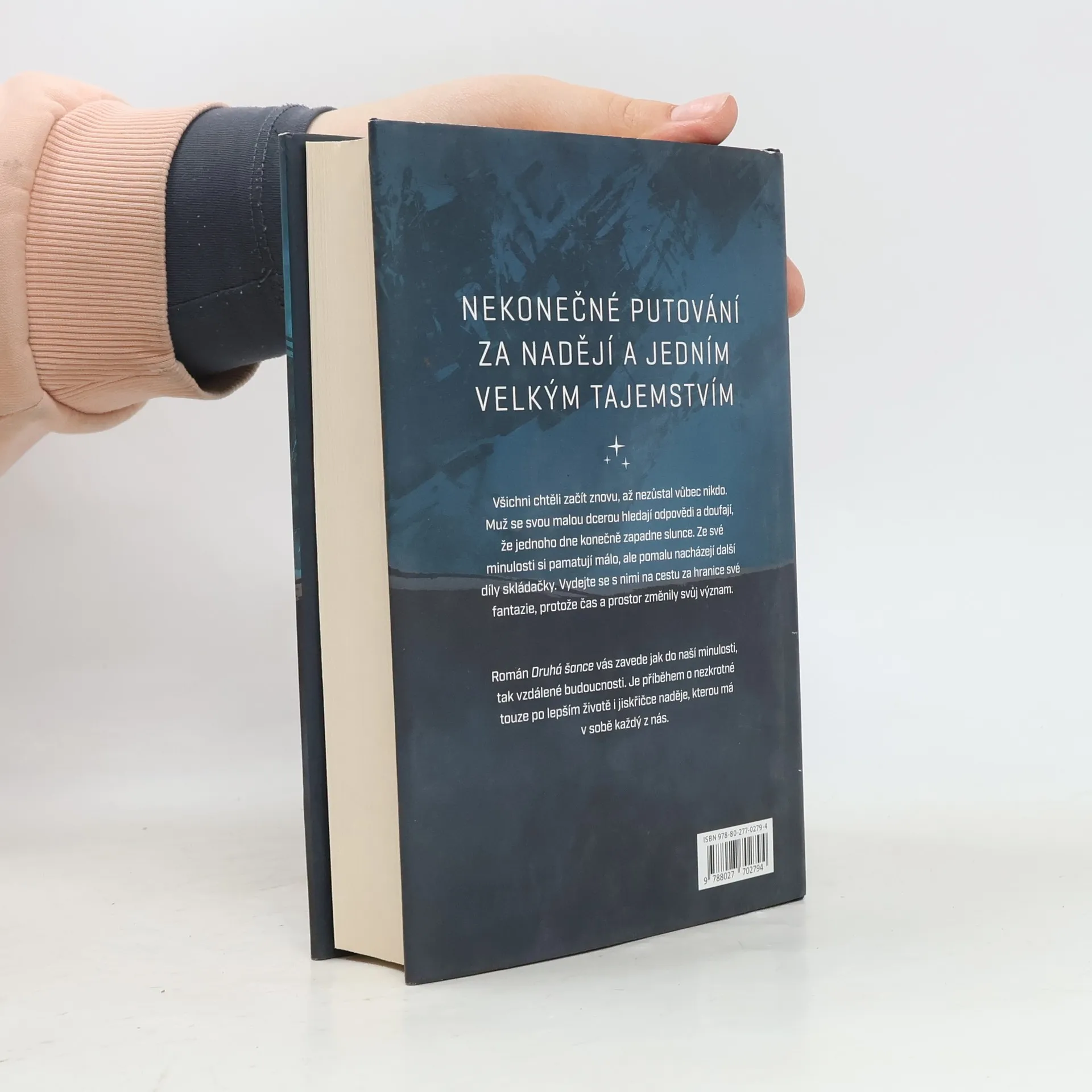 Nekonečné putování za nadějí a jedním velkým tajemstvím. Všichni chtěli začít znovu, až nezůstal vůbec nikdo. Muž se svou malou dcerou hledají odpovědi a doufají, že jednoho dne konečně zapadne slunce. Ze své minulosti si pamatují málo, ale pomalu nacházejí další díly skládačky. Vydejte se s nimi na cestu za hranice vaší fantazie, protože čas a prostor změnily svůj význam. Román Druhá šance vás zavede jak do naší minulosti, tak vzdálené budoucnosti. Je příběhem o nezkrotné touze po lepším životě i jiskřičce naděje, kterou má v sobě každý z nás.