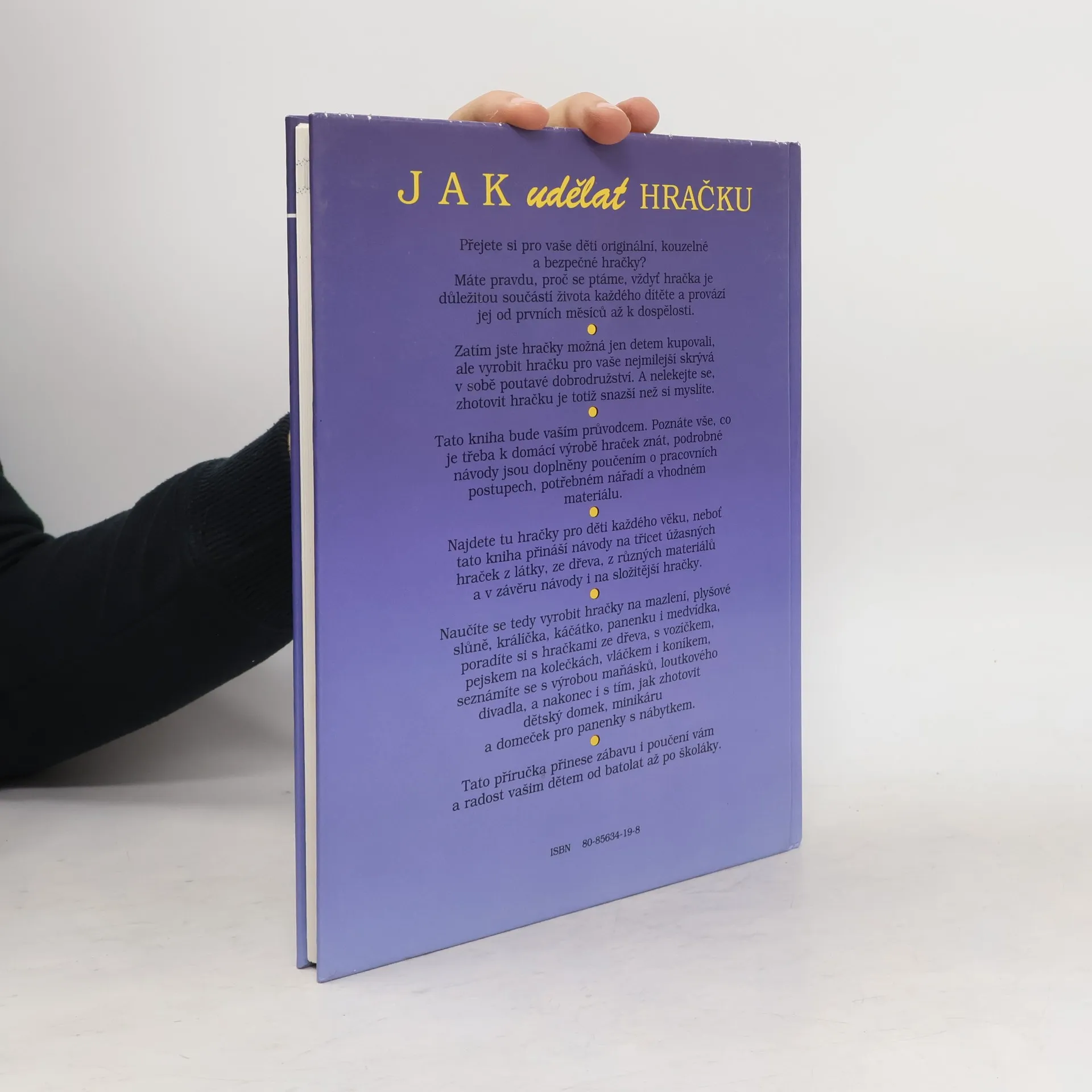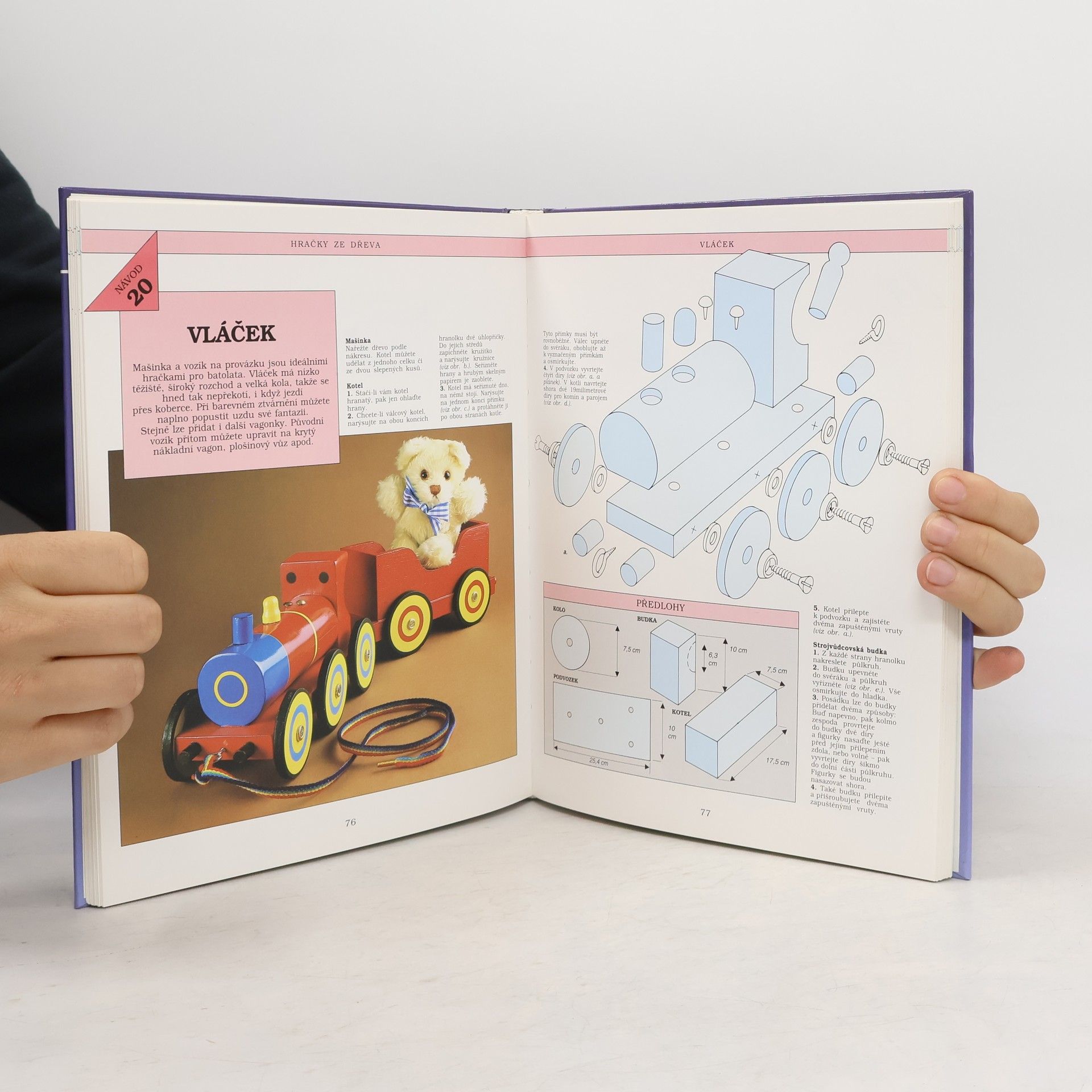 Kniha obsahuje 32 návodů na výrobu jednoduchých i složitějších hraček ze dřeva, textilu i jiných materiálů. Součástí výrobních postupů jsou podrobné nákresy a návody, spousta barevných i černobílých fotografií.