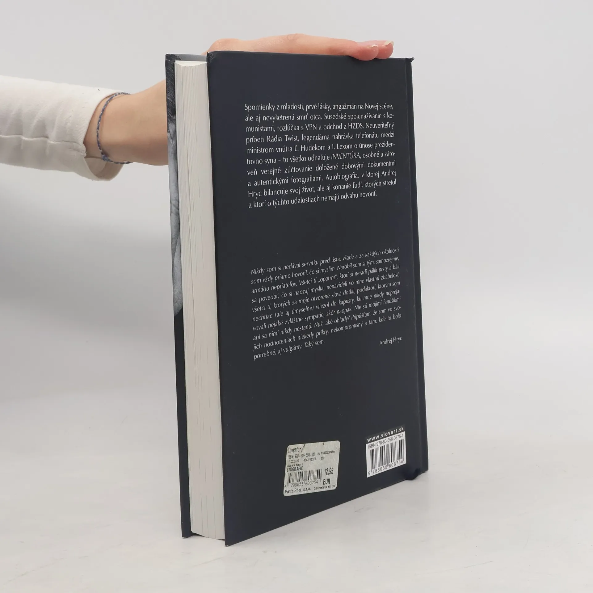 Až 740 mien Andrejovi Hrycovi stálo za to, aby im venoval miesto vo svojej pravdivej a pre niekoho aj riadne štipľavej autobiografii nazvanej Inventúra. Autor v úvode knihy hovorí: „Je veľa ľudí, ktorých v tejto knihe spomeniem, no napriek tomu, že keď ich občas stretávam na ulici alebo pri rôznych spoločenských príležitostiach, nestoja mi ani za ten pohľad. Z rôznych príčin nimi pohŕdam, vlastne by mi nemali stáť ani za zmienku, možno by som sa mohol a aj mal povzniesť nad ich úbohú existenciu, ale ako inak si s nimi vyrovnať účty? ... Ja chcem hovoriť.“ Spomienky z mladosti, prvé lásky, angažmán na Novej scéne, ale aj nevyšetrená smrť otca. Susedské spolunažívanie s komunistami, rozlúčka s VPN a odchod z HZDS. Neuveriteľný príbeh Rádia Twist, legendárna nahrávka telefonátu medzi ministrom vnútra Ľ. Hudekom a I. Lexom o únose prezidentovho syna – to všetko odhaľuje Inventúra, osobné a zároveň verejné zúčtovanie doložené dobovými dokumentmi a autentickými fotografiami. Knihu písal Andy Hryc dva roky a z pôvodne útlej knižočky je dielo s 57 kapitolami.