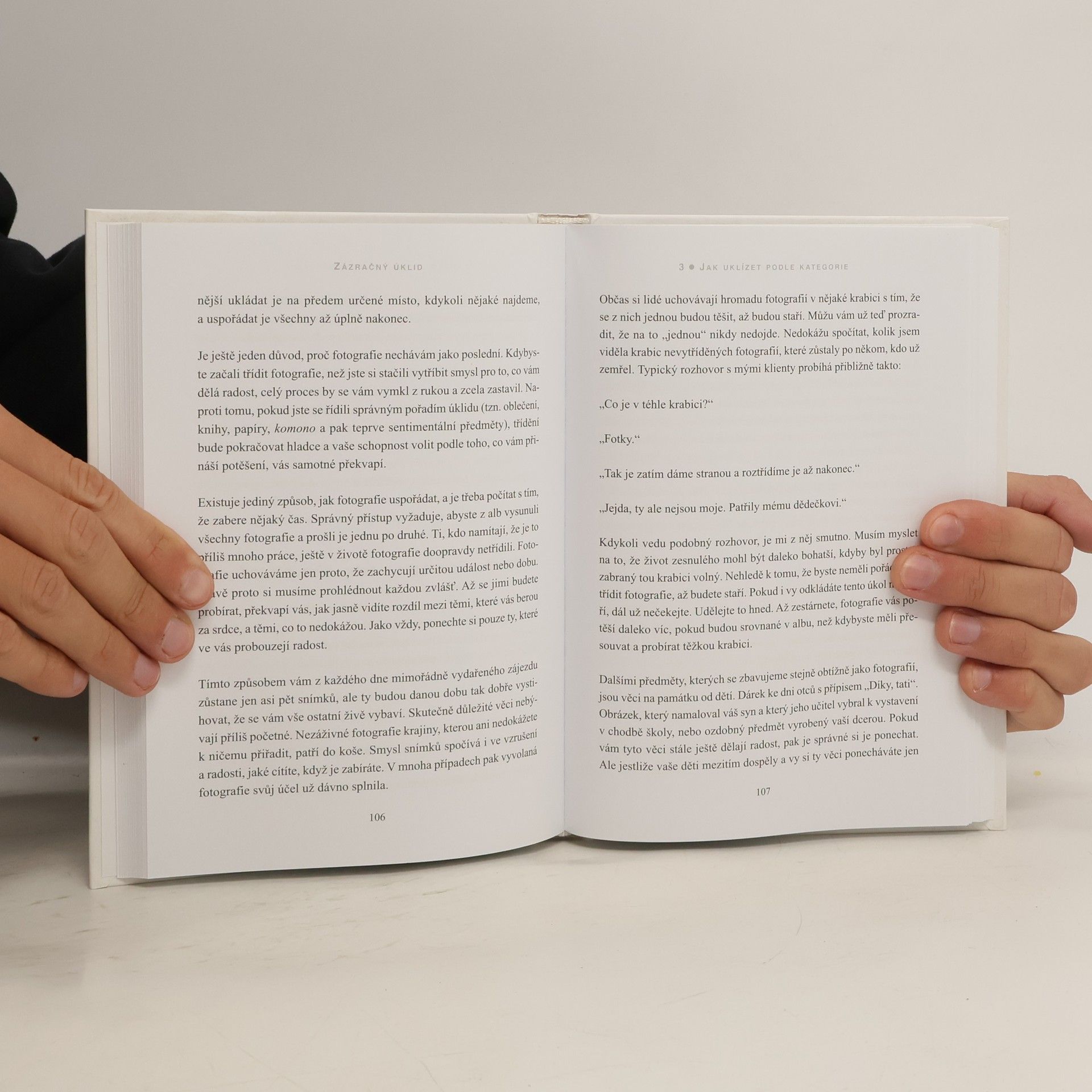 Poznejte originální umění, díky němuž se spolehlivě zbavíte nepořádku a náležitě si uspořádáte věci. Tato přesvědčivá knížka se právem stala ohromným bestsellerem po celém světě a vyšvihla se na první místo žebříčku New York Times. Proměňte svůj domov pomocí autorčiny inspirativní metody v trvale uklizené prostředí: klíčem je vypořádat se s domácností ve správném pořadí, ponechat si jen to, co opravdu milujete, a udělat vše rychle. Změníte tak svůj život – získáte větší sebejistotu, budete úspěšnější a možná i konečně zatočíte s přebytečnými kily. A především načerpáte energii k tomu, abyste žili podle svých představ.