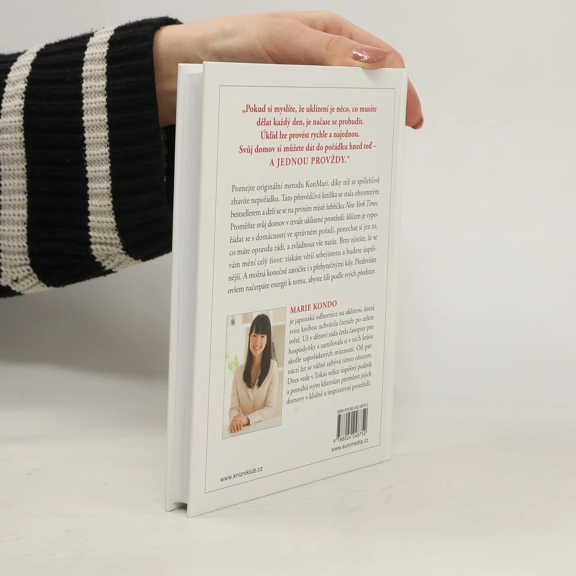 Poznejte originální umění, díky němuž se spolehlivě zbavíte nepořádku a náležitě si uspořádáte věci. Tato přesvědčivá knížka se právem stala ohromným bestsellerem po celém světě a vyšvihla se na první místo žebříčku New York Times. Proměňte svůj domov pomocí autorčiny inspirativní metody v trvale uklizené prostředí: klíčem je vypořádat se s domácností ve správném pořadí, ponechat si jen to, co opravdu milujete, a udělat vše rychle. Změníte tak svůj život – získáte větší sebejistotu, budete úspěšnější a možná i konečně zatočíte s přebytečnými kily. A především načerpáte energii k tomu, abyste žili podle svých představ.