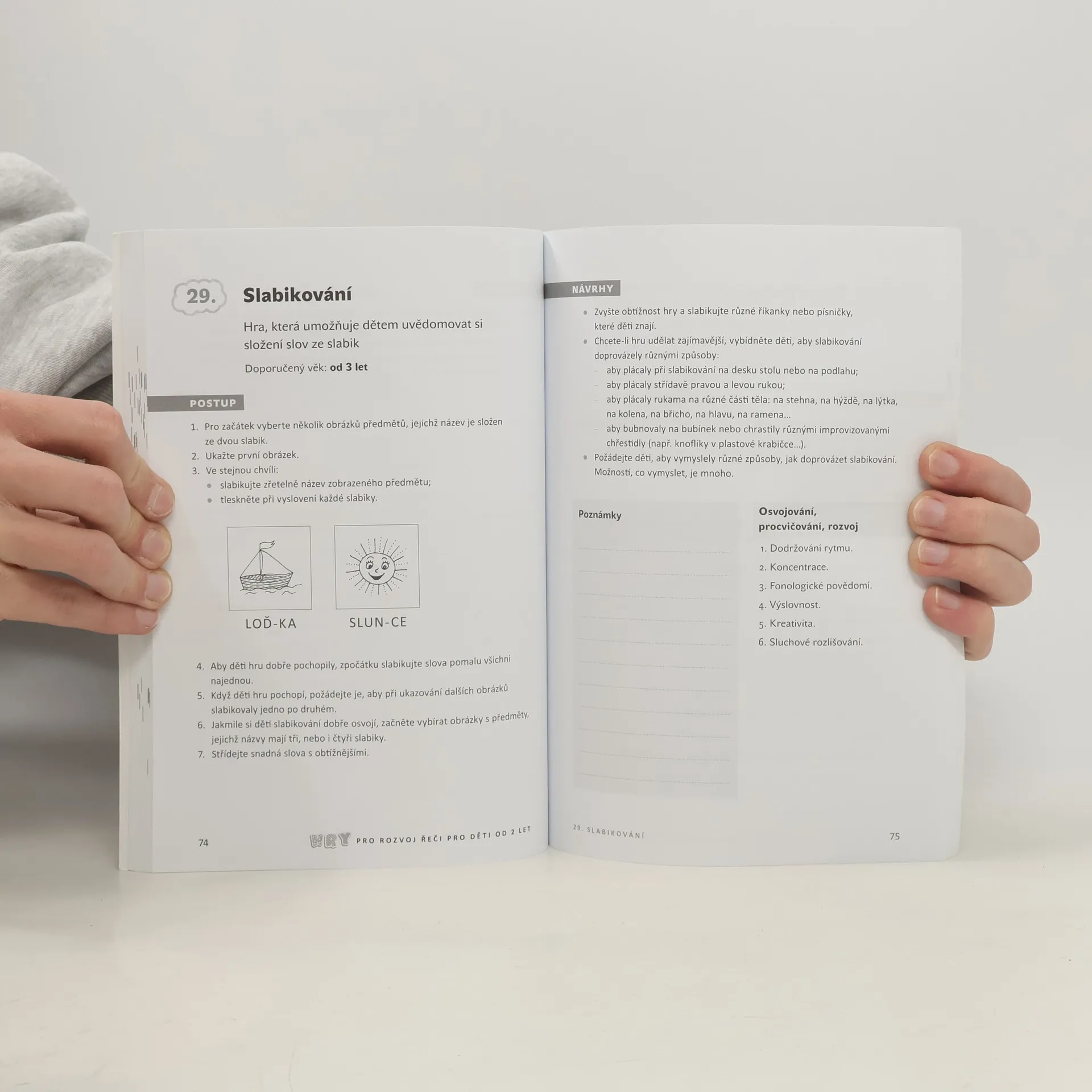 Kniha obsahuje více než 70 her, které rozvíjejí vyjadřovací schopnosti malých dětí při integraci všech vjemů. Pro rozvoj řeči u dětí od dvou do pěti let ji mohou využít logopedické preventistky a učitelky v mateřské škole i rodiče. U každé aktivity jsou jasně popsány jednotlivé kroky, doporučení pro práci se staršími dětmi, vyznačeny jsou schopnosti, které se při dané aktivitě rozvíjejí, ponechán je i prostor pro vlastní poznámky.