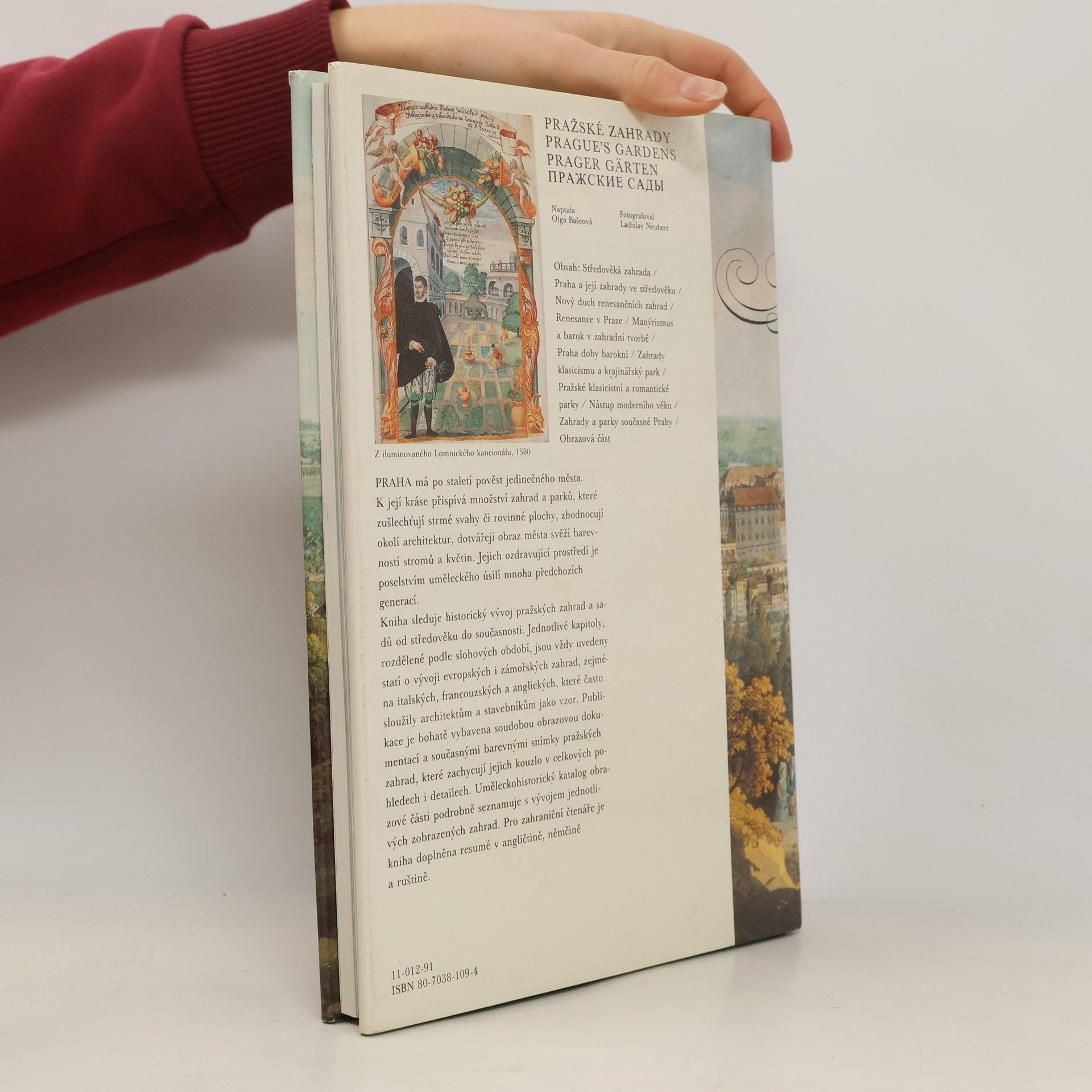 Kniha přibližuje historii pražských zahrad, od rané historie osídlení až do současnosti. Z jednotlivých historických období uvádí a popisuje ty nejkrásnější, s autory uměleckých návrhů, majitelů, umístění a současného stavu.