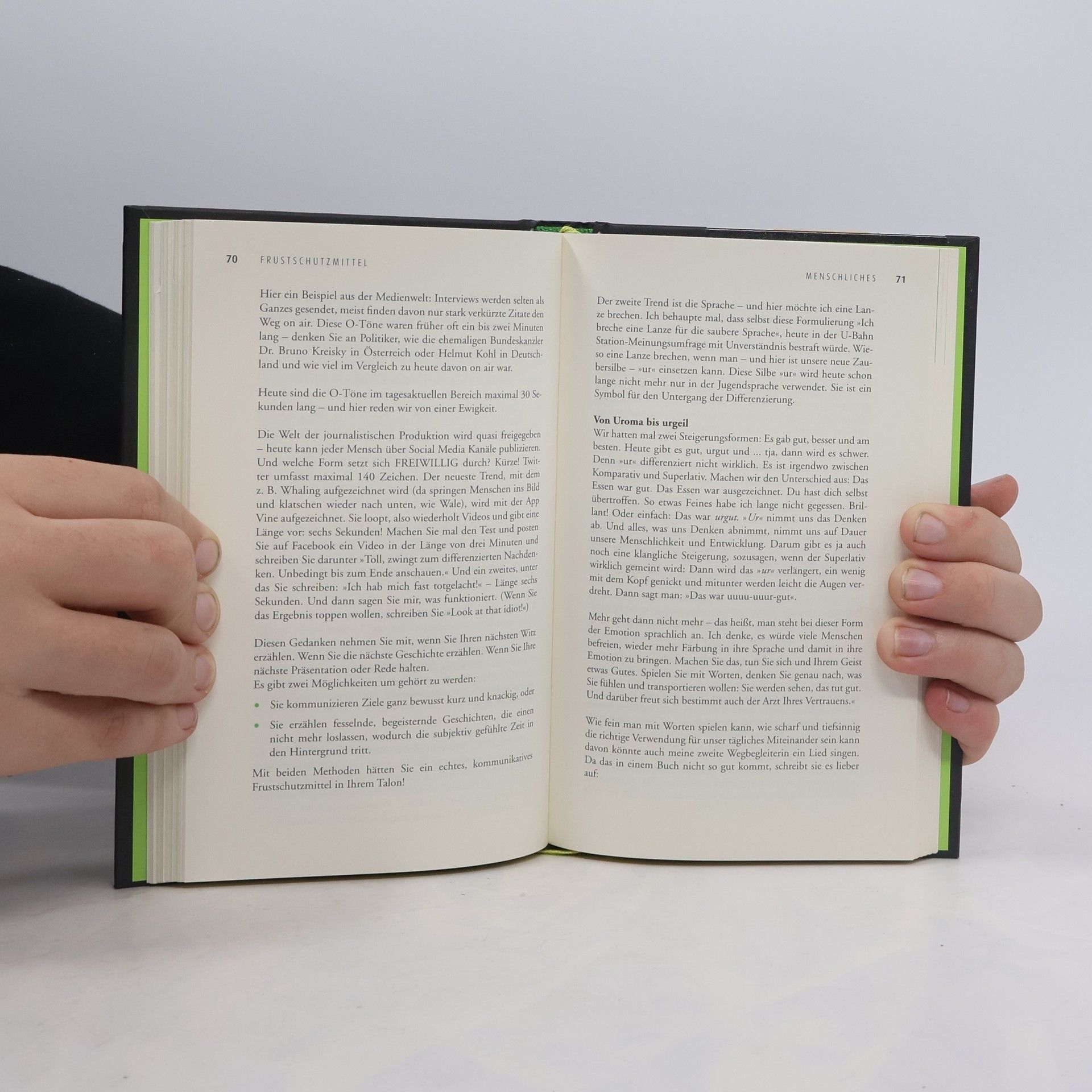 Unsere innere Einstellung bestimmt nicht bloss unser Verhalten, sondern auch die Intensität unserer Energiequellen. Es gibt wohl niemanden auf der Welt, der keine Freude will und braucht. Aber es gibt nur sehr wenige, die das wahre Geheimnis der Freude kennen. Was steckt also hinter diesem Gefühl, das unser Leben lebenswert macht? Wie kann dieser 'Frustschutz' auch im Alltag aktiviert werden? Ein Buch mit vielen positiven Gedanken, über die Freude, das Glück, den Humor, die Leichtigkeit als Energiequellen unseres Lebens, die uns auch Mut machen, alte, ausgetretene Wege zu verlassen und etwas Neues auszuprobieren. Der Arzt und Humorexperte liefert heilsame Impulse für unsere tägliche Kommunikation: Emotionale 'Tupfer', humorvolle 'Salben', aber auch kleine, spitze Nadeln, die den Nerv der Zeit treffen. Ein mitreißendes, charmant-pointiertes Plädoyer für ein besseres Miteinander im Privat – und Berufsleben frei nach dem Motto: 'Nehmen Sie das Leben nicht so ernst, denn Sie kommen eh nicht lebend raus!'
