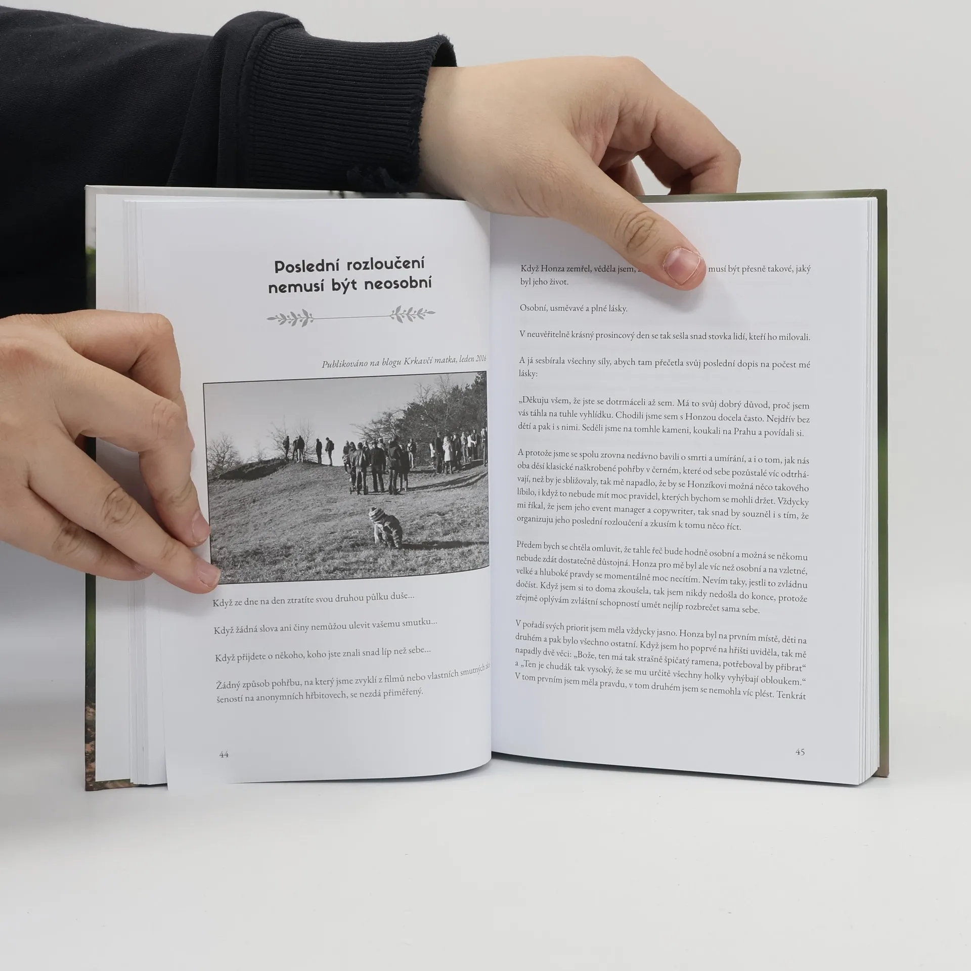 Smrt mi vstoupila bez varování do cesty a můj život převrátila úplně naruby. A ačkoli zvenku mohla má situace vypadat hrůzostrašně, já uvnitř začala kvést. Nevím, jak se to stalo. A už vůbec si na tom nepřičítám nějakou zásluhu. Probudila se ve mně ale taková jistota, že nemůžu na další cestě životem šlápnout vedle, že jsem začala být naprosto imunní vůči všemu, co naše společnost o smrti tvrdí.Že smrt je zlá, konečná, nespravedlivá, černá. Já naopak začala vnímat smrt jako láskyplnou, smířlivou, obohacující, pokojnou. A protože se smrt týká každého jednoho z vás, kteří tyto řádky čtete (pokud tedy v dohledné době nevynaleznou umělá těla, do kterých bychom mohli přenést naše vědomí a stali se tak nesmrtelnými kyborgy), cítím silné nutkání zasít mezi lidi semínka debaty o tom, že smrt je ve své přirozenosti nádherná.Chtěla bych svou zkušeností a prožitky začít smrt zbavovat všech černot, které jsme na ni v naší společnosti navěšeli. Chtěla bych ji vytáhnout z kouta, kam jsme ji postavili, aby na nás tiše a hrozivě čekala. Přála bych si, aby se smrt vrátila zpátky do našich životů. Přála bych si, abychom ji pustili beze strachu přes svůj práh a usadili ji na čestnou židli u našeho stolu.Jsem z hloubi duše přesvědčená o tom, že smrt do života patří. Vědomí smrti nám má ukazovat, jaký život máme žít. Smíření se smrtí nám má dodávat jistotu, že kráčíme po správné cestě. Bez smrti není život.