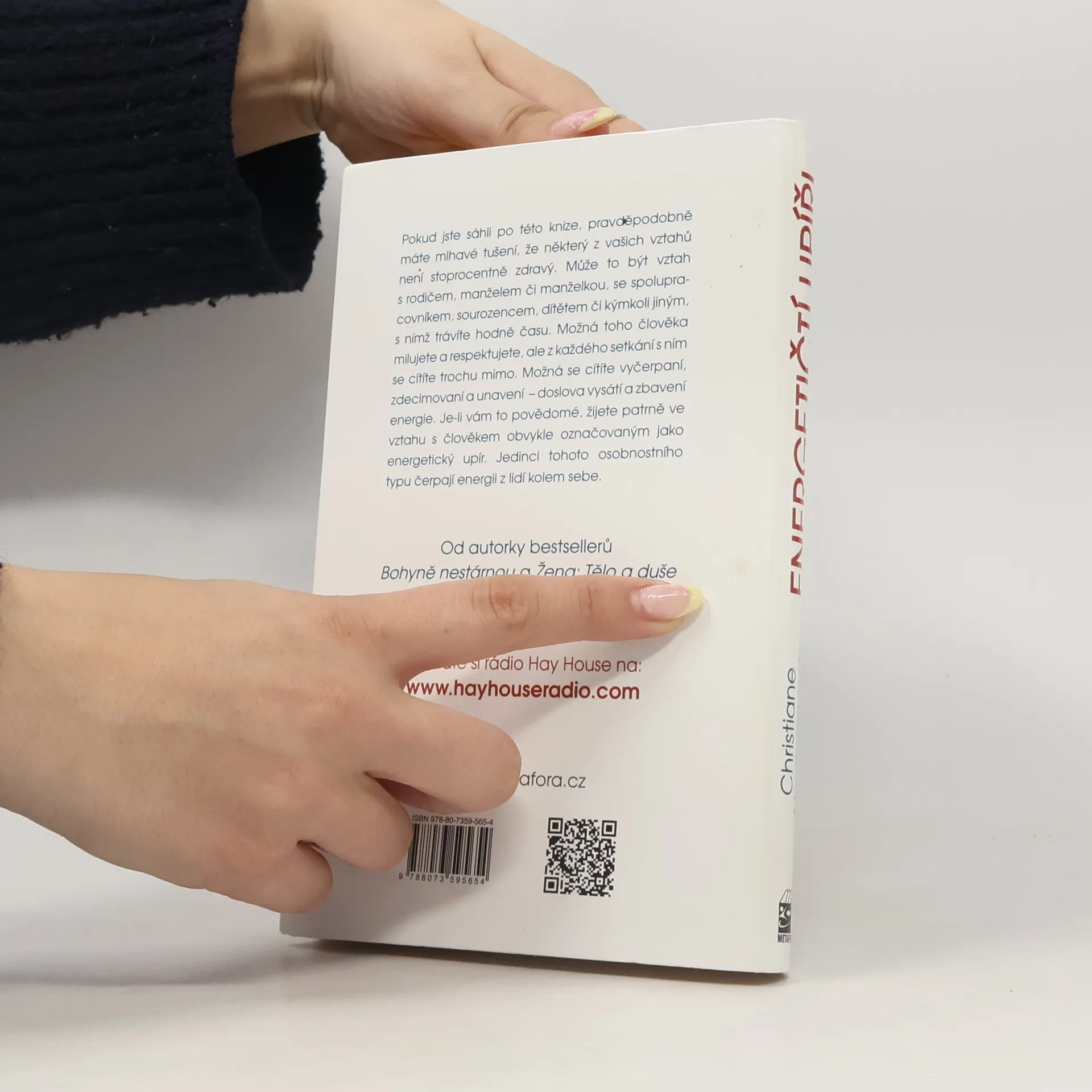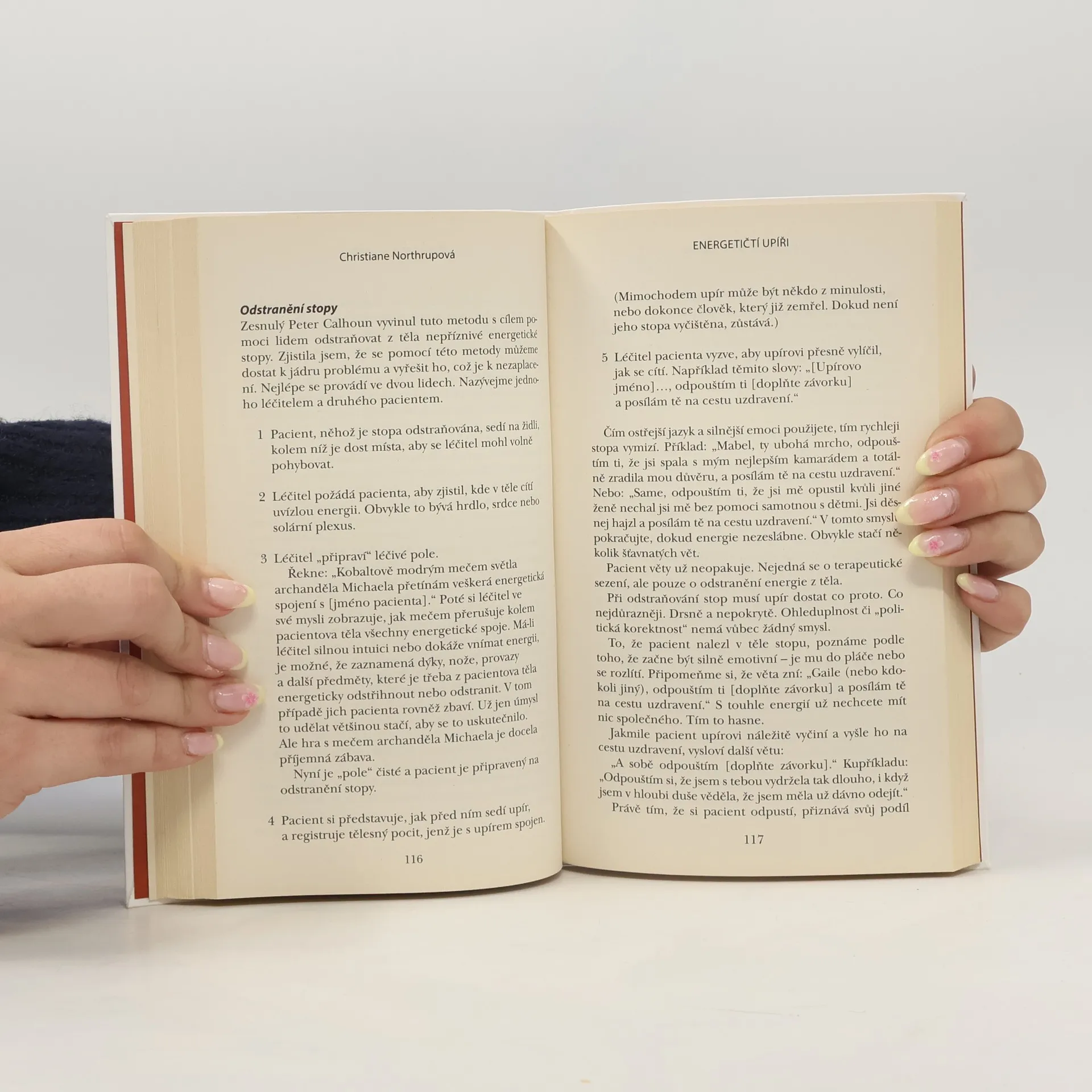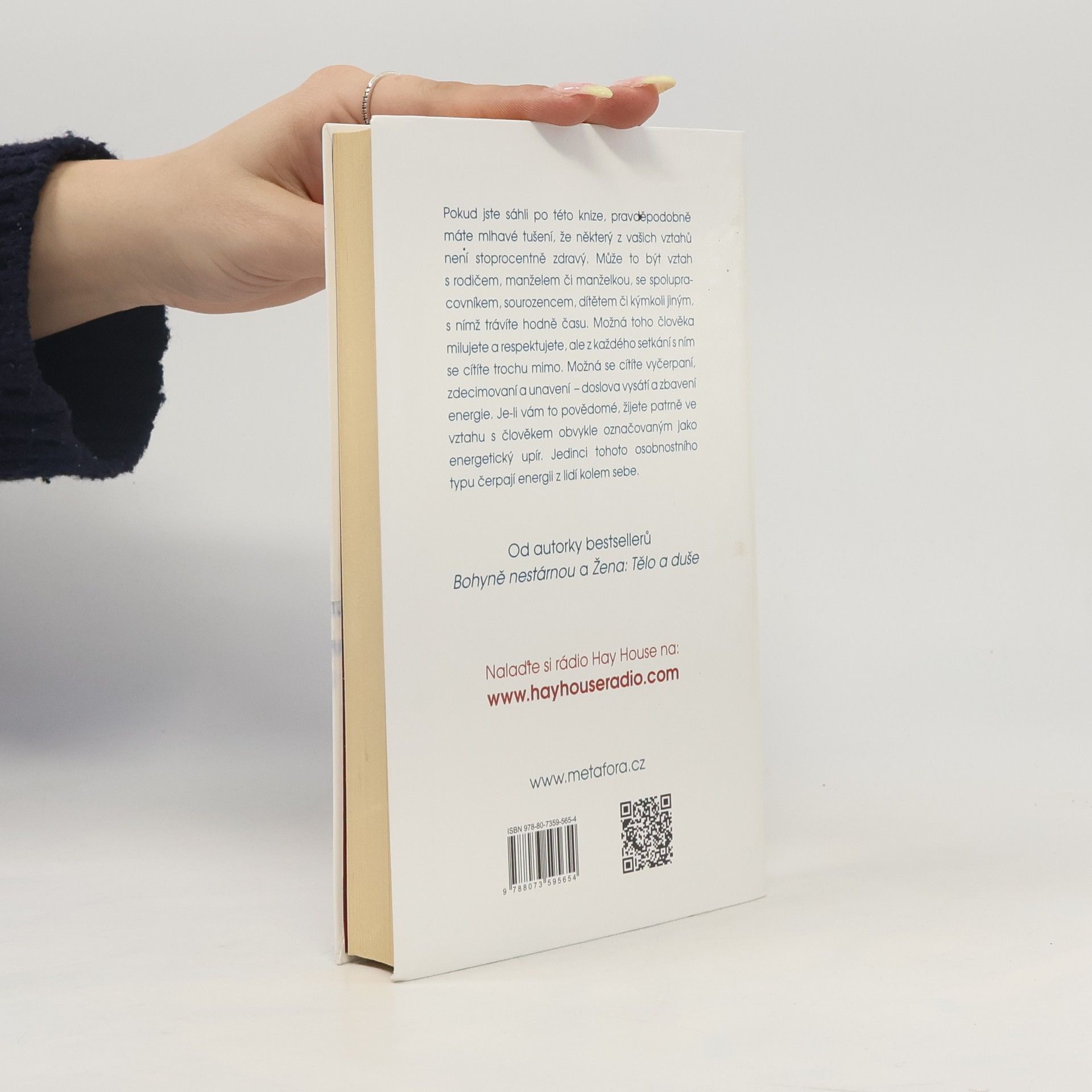 Empatičtí, citliví lidé přirozeně vnímají život soucitně, se zájmem o druhé a jsou nositeli vnitřního světla. Zároveň jsou ale oblíbenou kořistí energetických upírů – lidí, kteří se na jejich energii přiživují, a to na všech úrovních – fyzické, citové i finanční. Známá lékařka Christiane Northrupová představuje fenomén „energetických upírů“ a nabízí způsob, jak tyto negativně působící lidi ve svém okolí odhalit a získat zpět ztracenou energii. Své závěry opírá o nejnovější výsledky vědeckých výzkumů a uvádí příklady z vlastní praxe a života. Northrupová popisuje dynamiku vztahu mezi empatickým člověkem a energetickým parazitem a ukazuje, jak „upíři“ využívají energii druhých k vlastnímu prospěchu. Nabízí praktické techniky, díky nimž se škodlivým vztahům můžete rovnou vyhnout, anebo se uzdravit, pokud už vás zasáhly. Jakmile rozpoznáte vzorce chování typické pro tyto nevyvážené vztahy, budete „upíry“ schopni identifikovat.