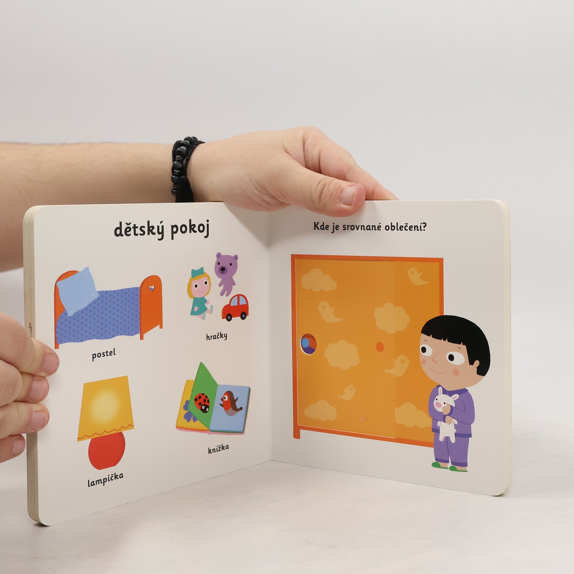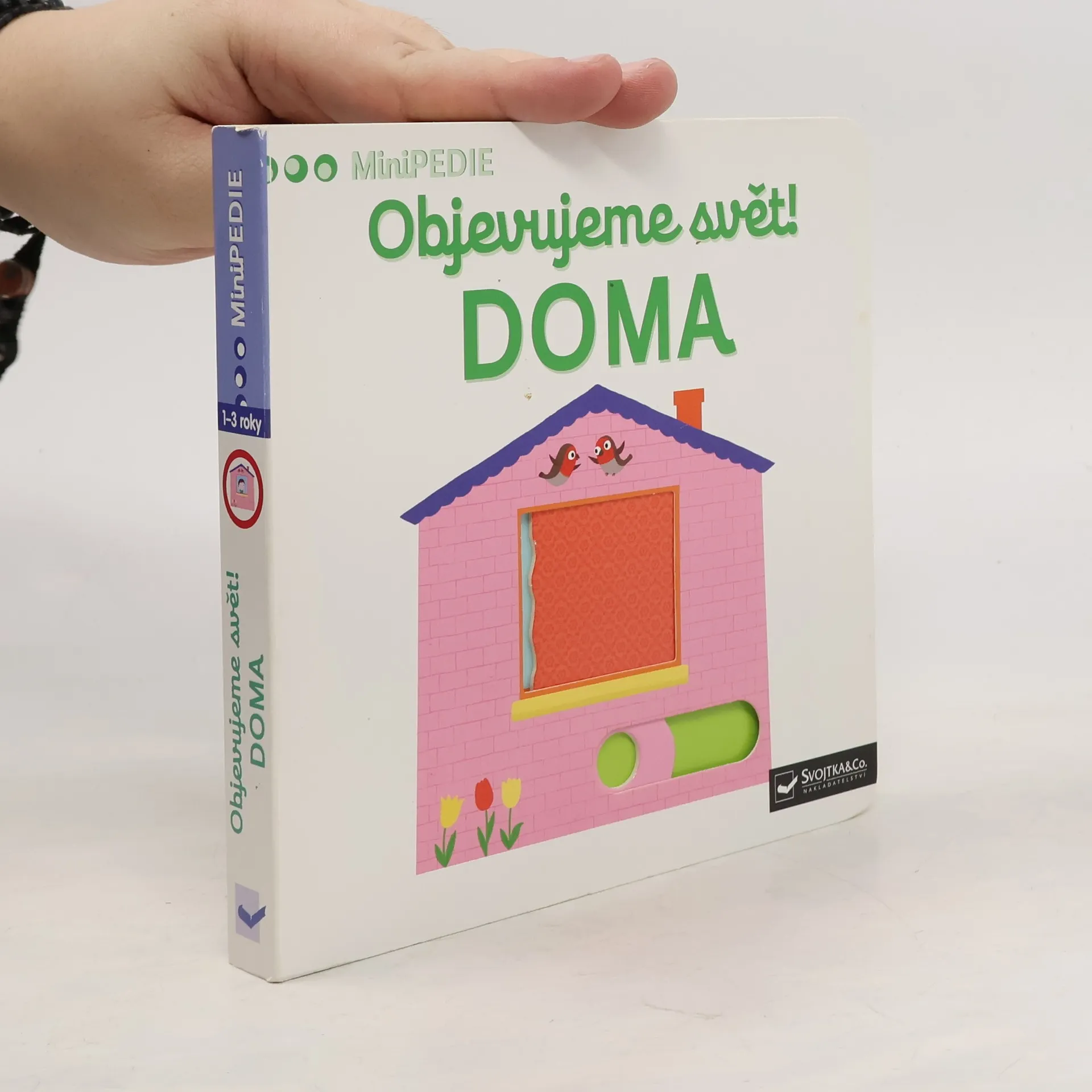 Poznávej prostředí, kde bydlíš, a nauč se názvy pro části domu, nábytek a výbavu! Leporelo pro nejmenší děti s posuvnými prvky a pestrými ilustracemi. Co všechno máme doma? Na co se díváme v obývacím pokoji? V čem si v kuchyni uvaříme? Kde máme srovnané oblečení? Kam se půjdeme před spaním vykoupat? Nauč se pojmenovat všechny části domu, nábytek a výbavu, která se může nacházet doma. Pestrobarevné ilustrace a posuvné prvky v tomto leporelu rozšiřují dětskou slovní zásobu zábavnou formou. Pohyblivé elementy v této knize rozvíjí jemnou motoriku dítěte a přispívají k živosti ilustrací. Knížka s prvky Montessori.