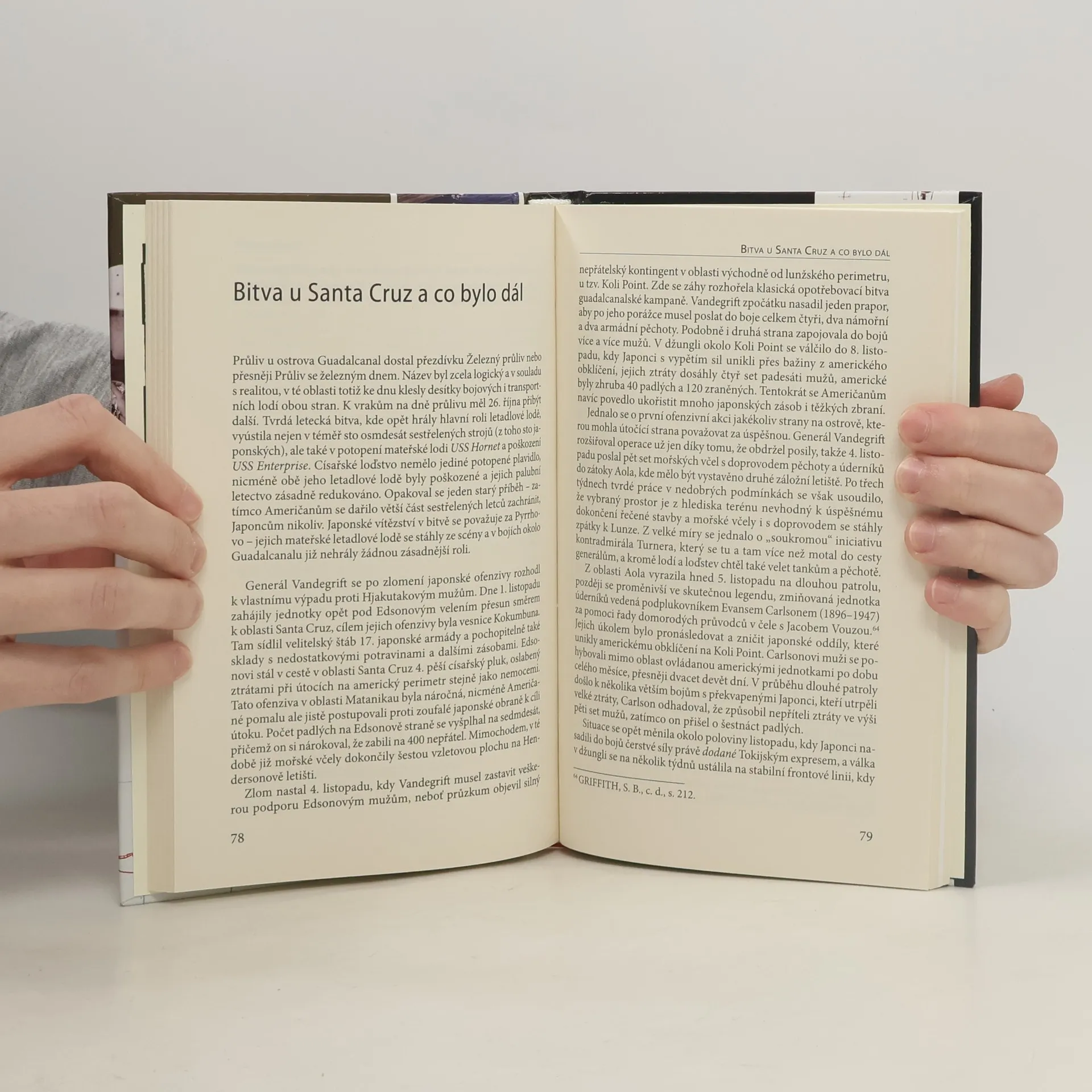 Novou optikou nahlížená jedna z nejslavnějších bitev v Tichomoří za druhé světové války. Nejde o pouhý popis bojových operací, ale také o naznačení tendencí v každodenním životě válčících Američanů, o analýzu dopadu náročných bojových podmínek na psychiku vojáků. Guadalcanal, respektive americké vítězství na Guadalcanalu, znamenal spíše než vítězství strategické výhru psychologickou. Američané zjistili, že se mohou do té doby zdánlivě neporazitelným Japoncům úspěšně postavit, proto tuto komplexní bitvu, která probíhala na zemi, ve vzduchu i na moři, lze skutečně považovat za bod obratu v pacifické válce.