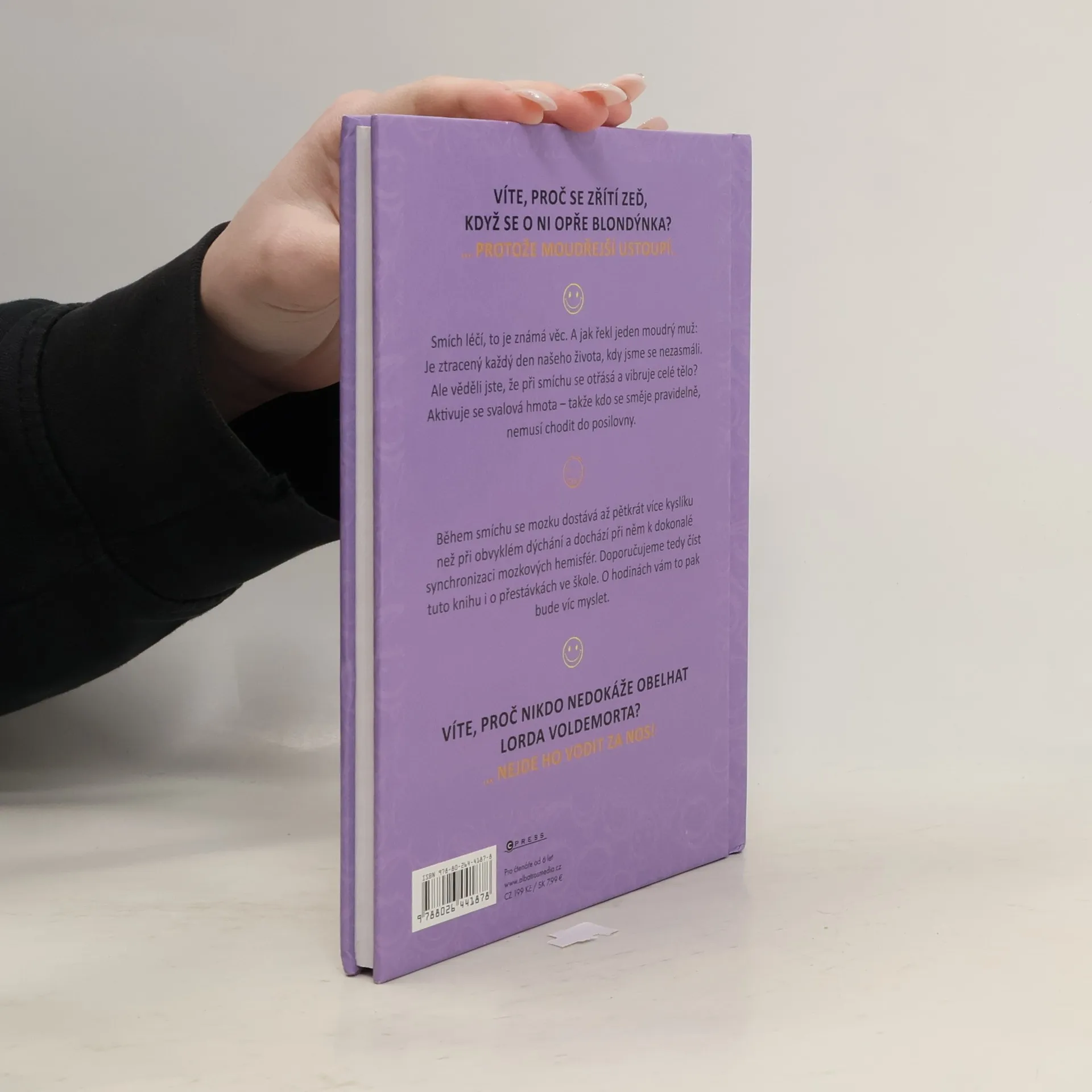 Ilustrovaná kniha plná vtipů udělá radost všem. Ať už se začtete do vtipů o Pepíčkovi, ze školy, o prarodičích, z pohádek nebo dalších, pořádně se zasmějete a budete mít dobrou náladu. Věděli jste, že během smíchu se mozku dostává až 5 x více kyslíku než při obvyklém dýchání a dochází při něm k dokonalé synchronizaci mozkových hemisfér? Doporučujeme tedy číst tuto knihu i o přestávkách ve škole. O hodinách vám to pak bude víc myslet.