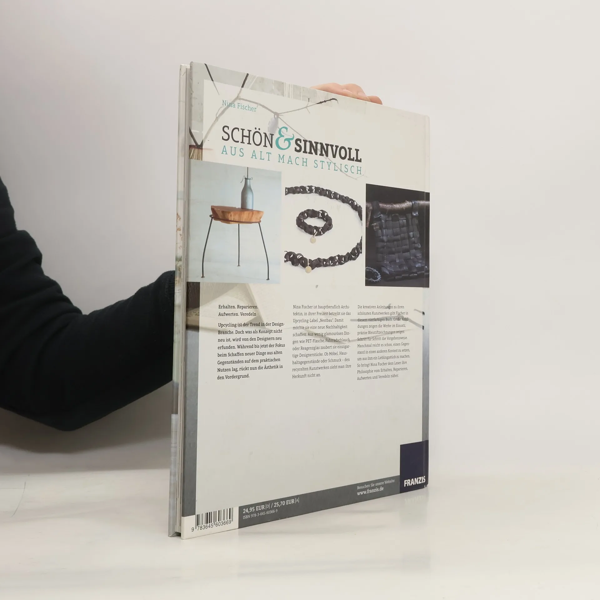 Erhalten. Reparieren. Aufwerten. Veredeln Upcycling ist der Trend in der Design-Branche. Doch was als Konzept nicht neu ist, wird von den Designern neu erfunden. Während bis jetzt der Fokus beim Schaffen neuer Dinge aus alten Gegenständen auf dem praktischen Nutzen lag, rückt nun die Ästhetik in den Vordergrund. Nina Fischer ist hauptberuflich Architektin, in ihrer Freizeit betreibt sie das Upcycling-Label „Nestbau“. Damit möchte sie eine neue Nachhaltigkeit schaffen. Aus wenig glamourösen Dingen wie PET-Flasche, Fahrradschlauch oder Reagenzglas zaubert sie einzigartige Designerstücke. Ob Möbel, Haushaltsgegenstände oder Schmuck – den recycelten Kunstwerken sieht man ihre Herkunft nicht an. Die kreativen Anleitungen zu ihren schönsten Kunstwerken gibt Fischer in diesem vierfarbigen Buch. Große Abbildungen zeigen die Werke im Einsatz, präzise Bleistiftzeichnungen zeigen Schritt für Schritt die Vorgehensweise. Manchmal reicht es schon, einen Gegenstand in einen anderen Kontext zu setzen, um aus ihm ein Lieblingsstück zu machen. So bringt Nina Fischer dem Leser ihre Philosophie vom Erhalten, Reparieren, Aufwerten und Veredeln näher.