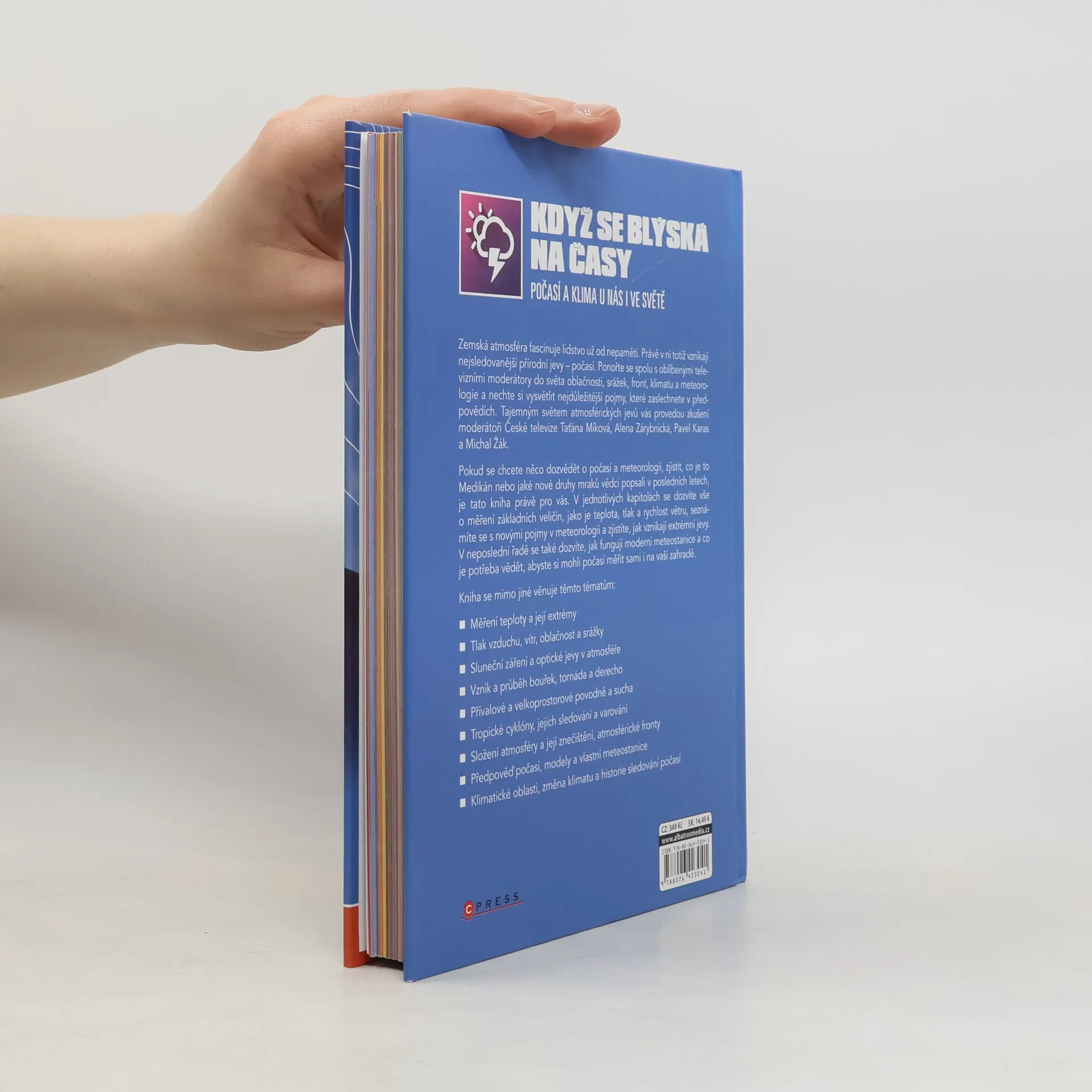 Průvodce světem počasí a klimatických změn od moderátorů České televize Zemská atmosféra fascinuje lidstvo už od nepaměti. Právě v ní totiž vznikají nejsledovanější přírodní jevy – počasí. Ponořte se spolu s oblíbenými televizními moderátory do světa oblačnosti, srážek, front, klimatu a meteorologie a nechte si vysvětlit nejdůležitější pojmy, které zaslechnete v předpovědích. Tajemným světem atmosférických jevů vás provedou zkušení moderátoři České televize Taťána Míková, Alena Zárybnická, Pavel Karas a Michal Žák.