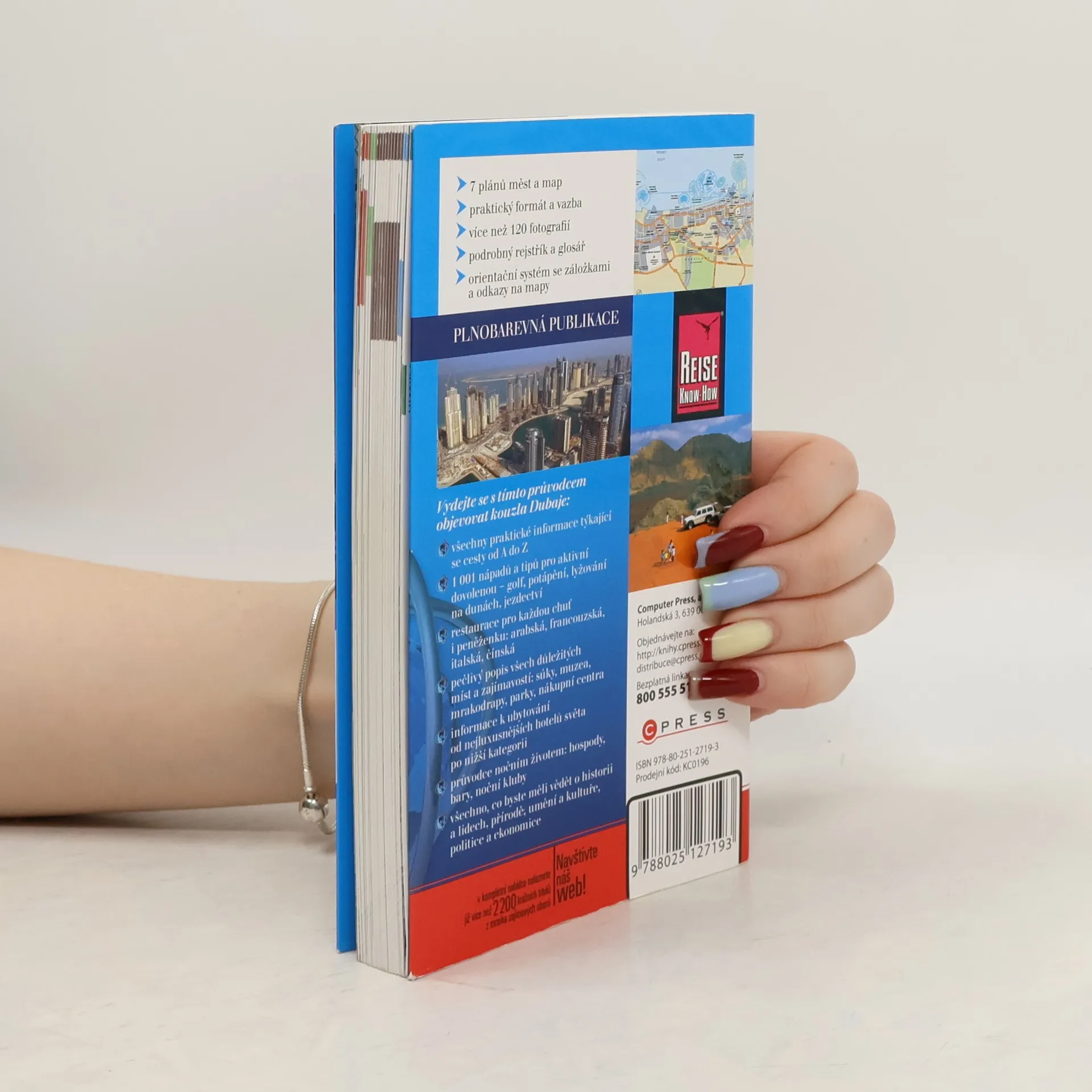 Cestovní průvodci vhodní především pro individuální turistiku vznikající ve spolupráci s nakladatelstvím Reise Know-how, které na trhu působí řadu let a jejichž produkty získaly ocenění pro svou kvalitu. Knihy se vyznačují praktickým formátem, obsahově jsou velice bohaté. Poskytují informace o významných památkách, dopravě, ubytování, stravování, atd. Text je doplněn barevnými fotografiemi a podrobnými mapkami a plánky. 7 plánů měst a map - praktický formát a vazba - více než 120 fotografií - podrobný rejstřík a glosář - orientační systém se záložkami a odkazy na mapy Vydejte se s tímto průvodcem objevovat kouzla Dubaje: všechny praktické informace týkající se cesty od A do Z 1 001 nápadů a tipů pro aktivní dovolenou - golf, potápění, lyžování na dunách, jezdectví restaurace pro každou chuť i peněženku: arabská, francouzská, italská, čínská pečlivý popis všech důležitých míst a zajímavostí: súky, muzea, mrakodrapy, parky, nákupní centra informace k ubytování od nejluxusnějších hotelů světa po nižší kategorii průvodce nočním životem: hospody, bary, noční kluby všechno, co byste měli vědět o historii a lidech, přírodě, umění a kultuře, politice a ekonomice